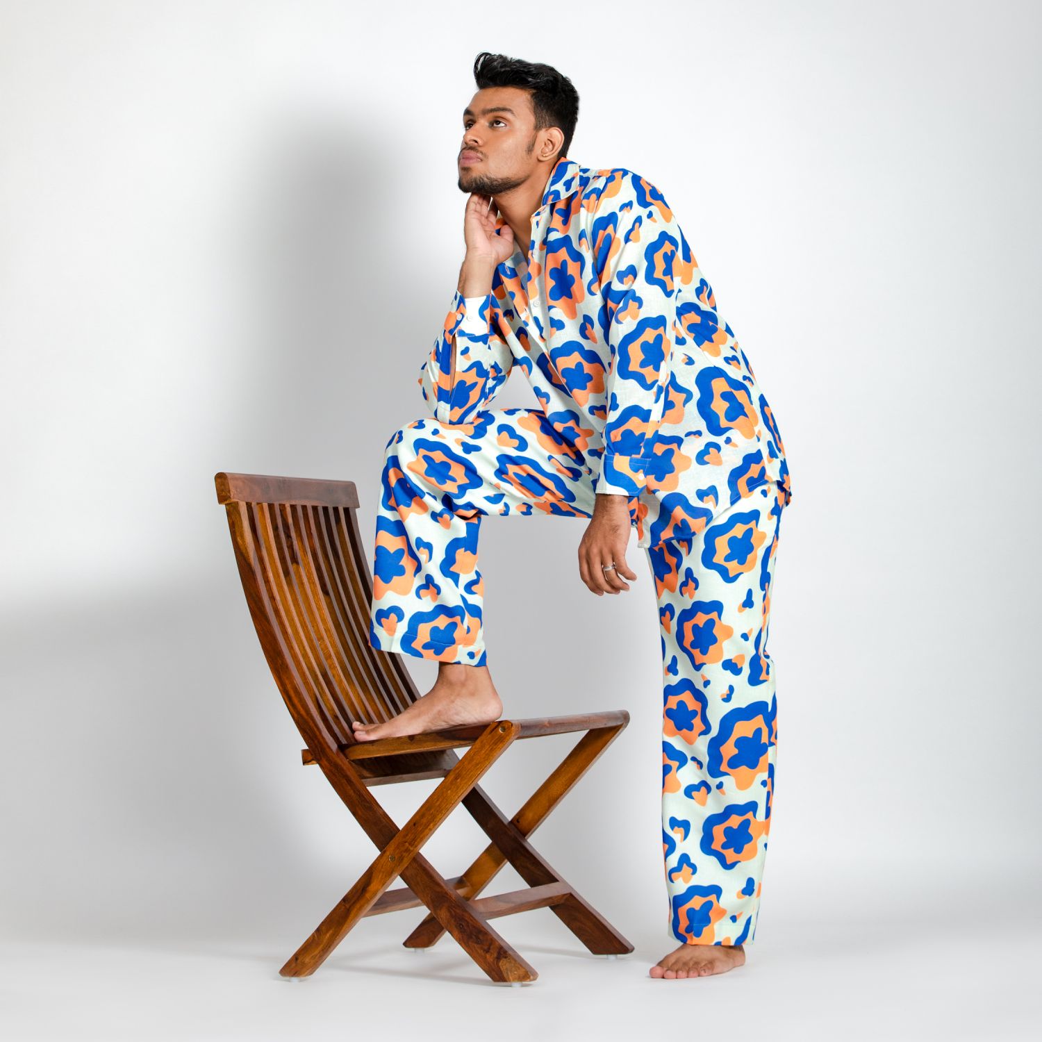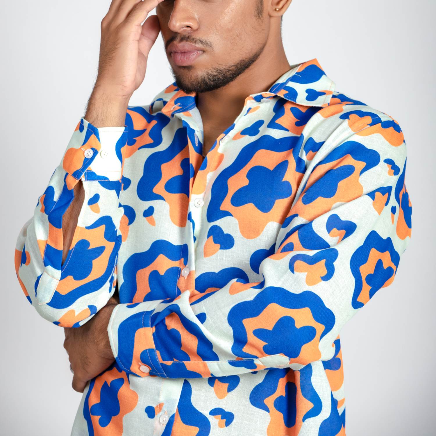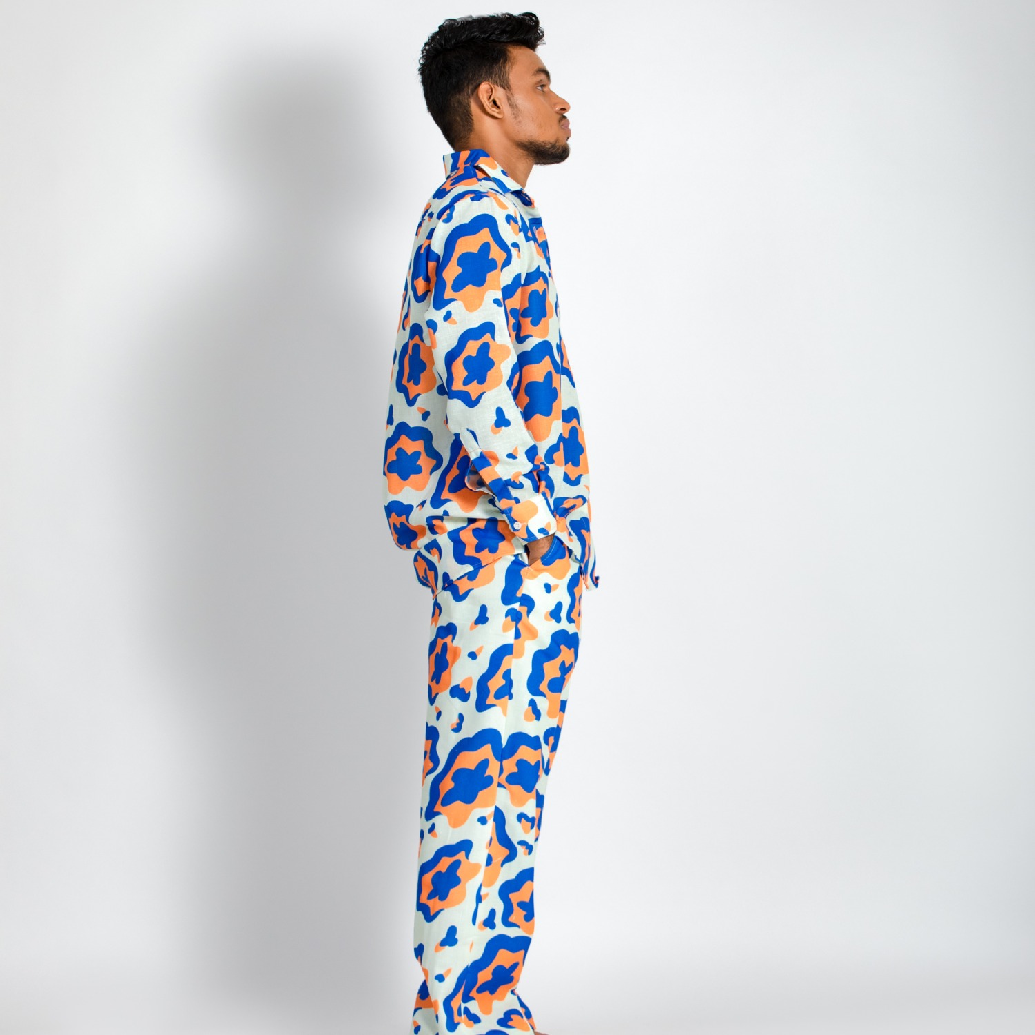 ₹ 3,500 (25% off)This stunning shirt is crafted from luxurious linen fabric. The white base with a blue and yellow floral print creates a striking contrast, making this shirt elegant and eye-catching. This full-sleeve shirt has a relaxed fit, ensuring comfort and ease of movement. Style it with minimal accessories and white sneakers for a dressy day event.