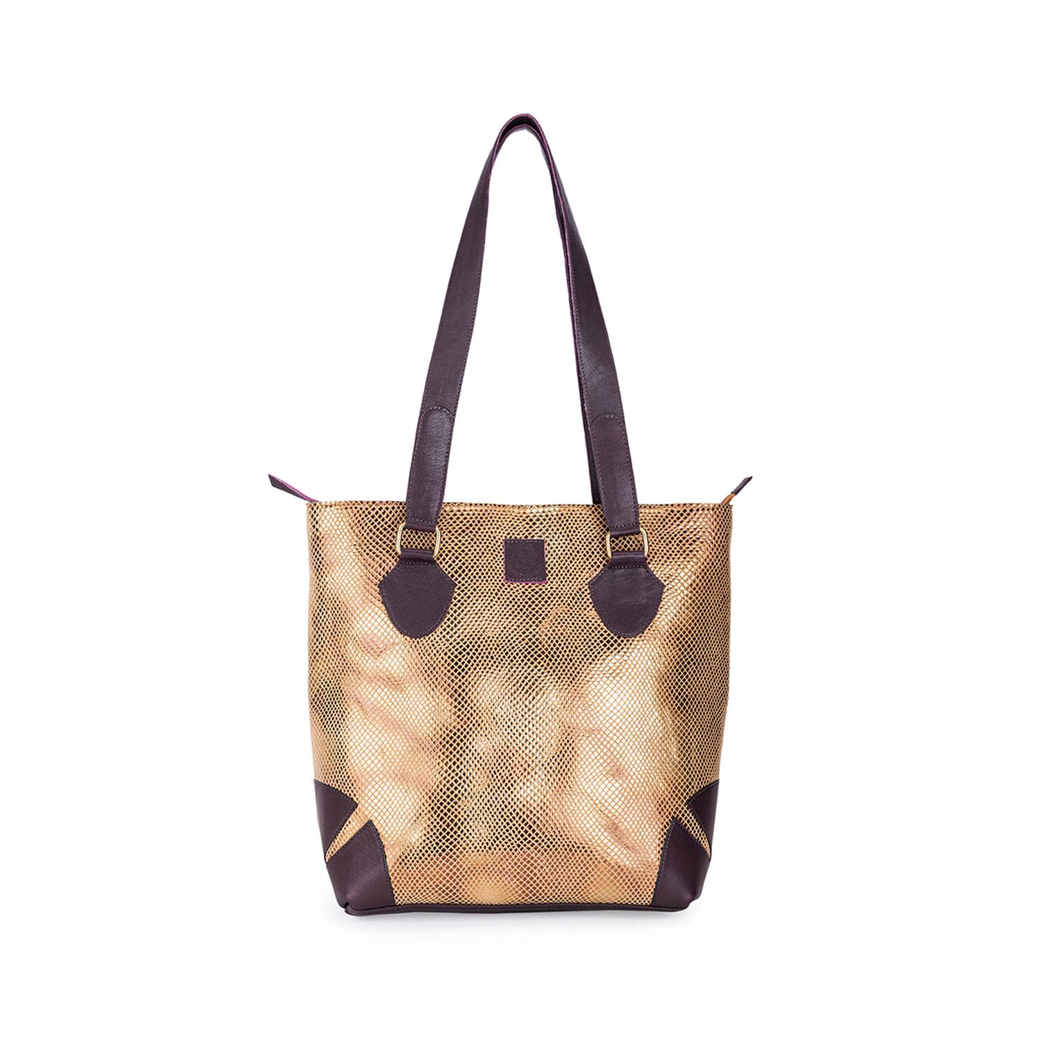 Crafted from high-quality leather material, this bag comes in a textured gold color. This spacious bag features a zipper closure and wine straps, adding a beautiful contrast. Style it with a maxi dress and heels for an evening party.