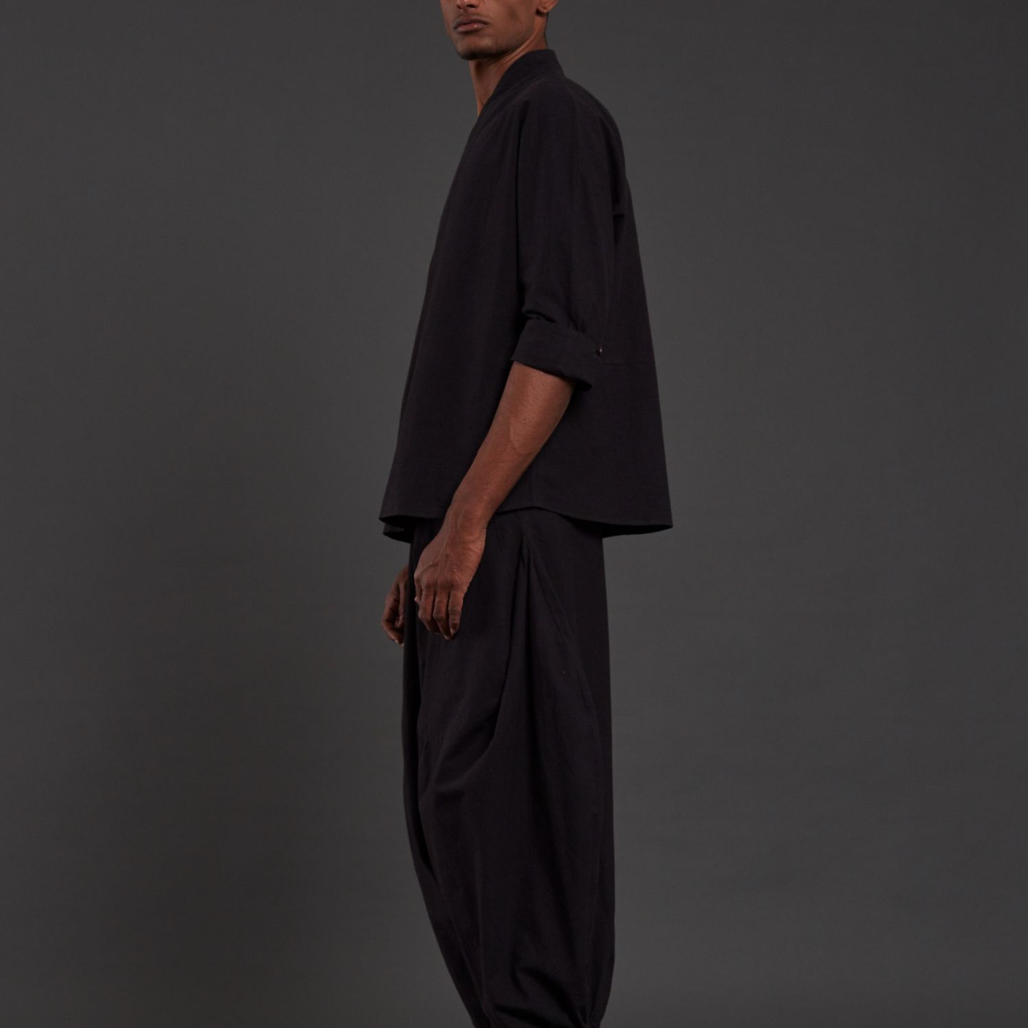 ₹ 17,000 (10% off)Elevate your style with this captivating black two-piece set. The statement baggy pants steal the spotlight with their bold and voluminous design, while the overlap shirt adds a touch of modern sophistication. This ensemble combines fashion and comfort, making it perfect for making a statement at any occasion. Embrace the unique and stylish look with this set, and showcase your individuality with confidence.