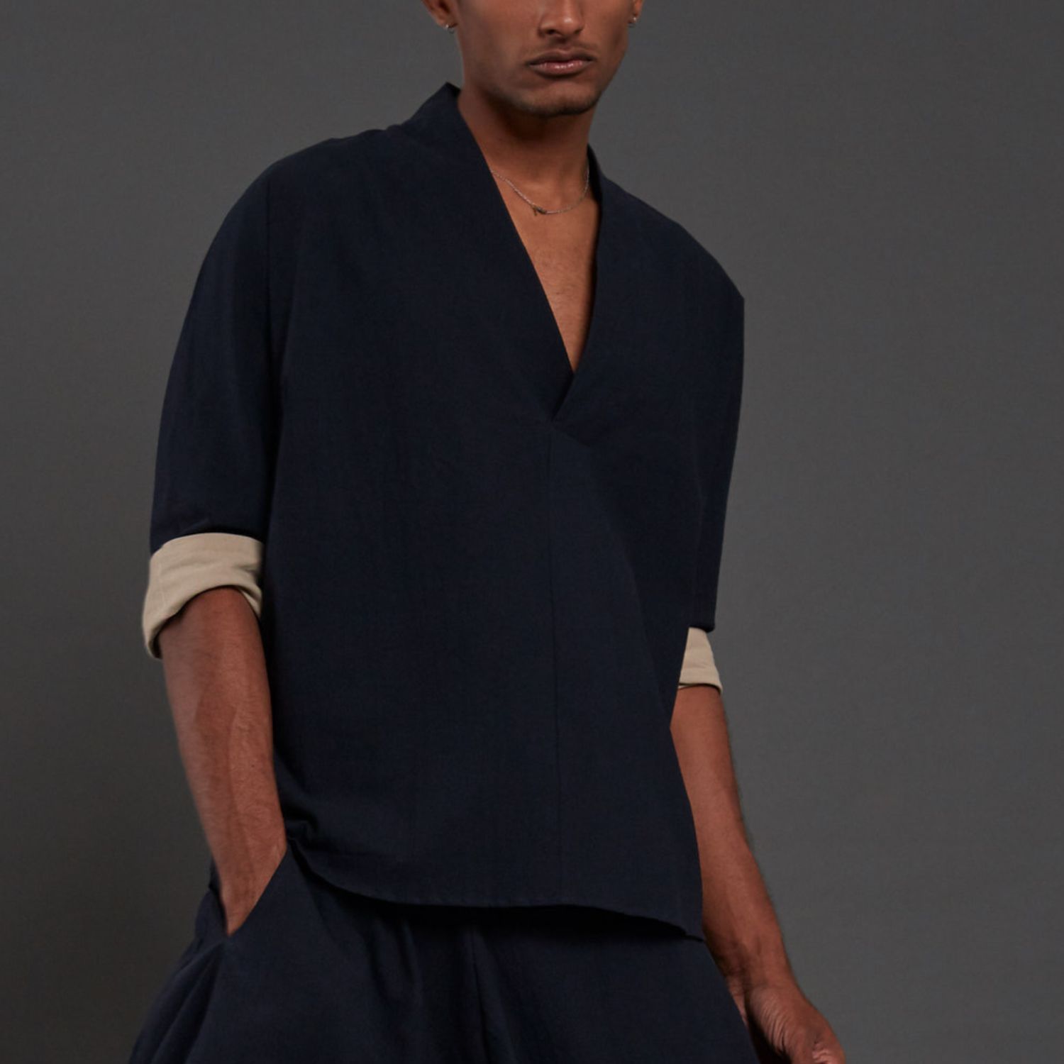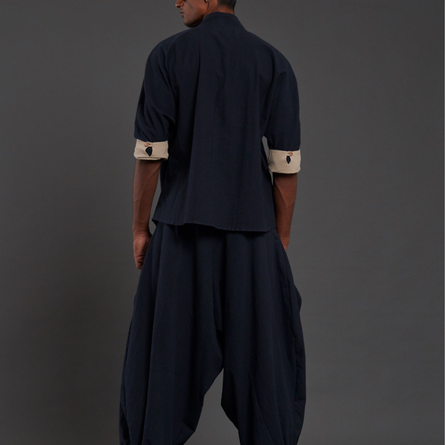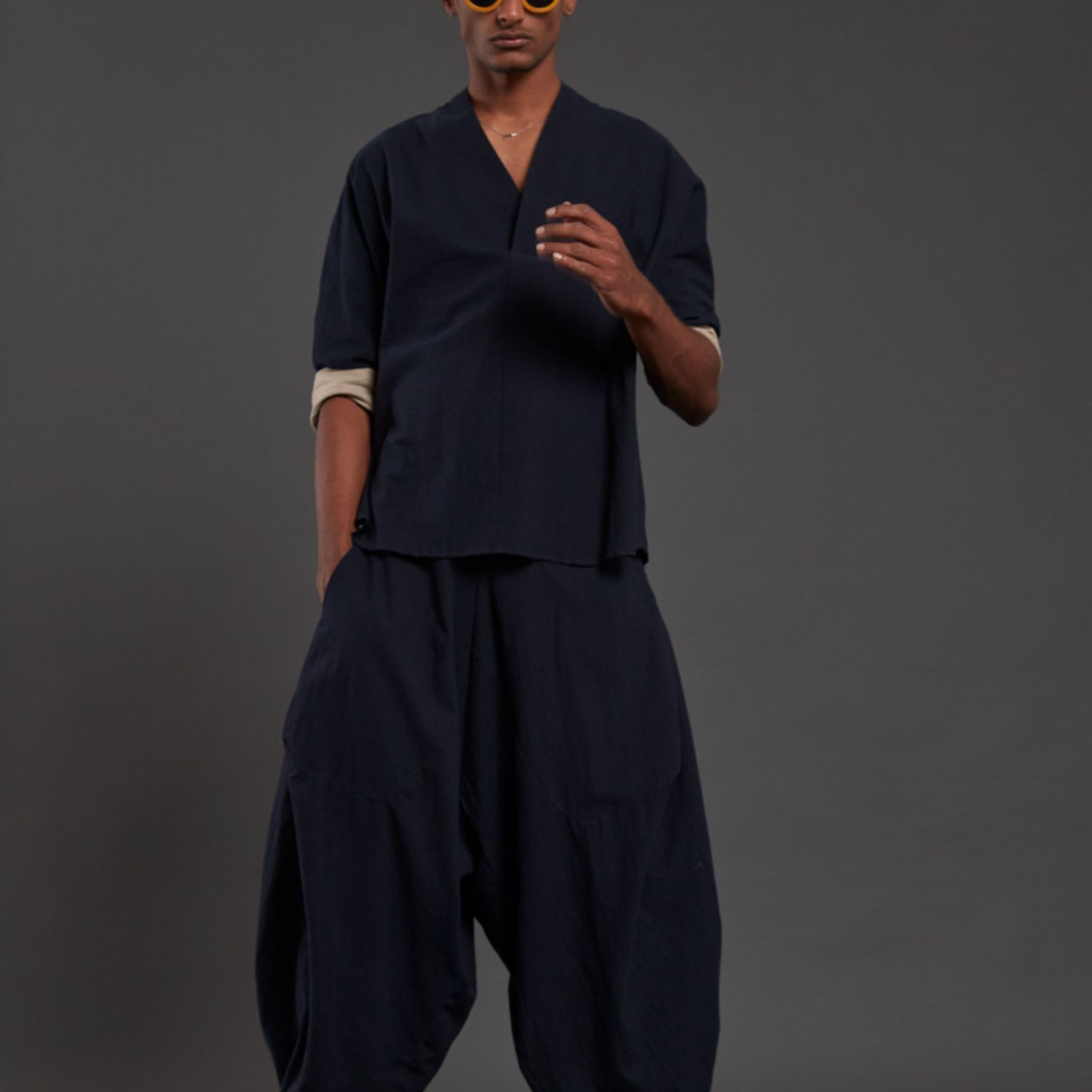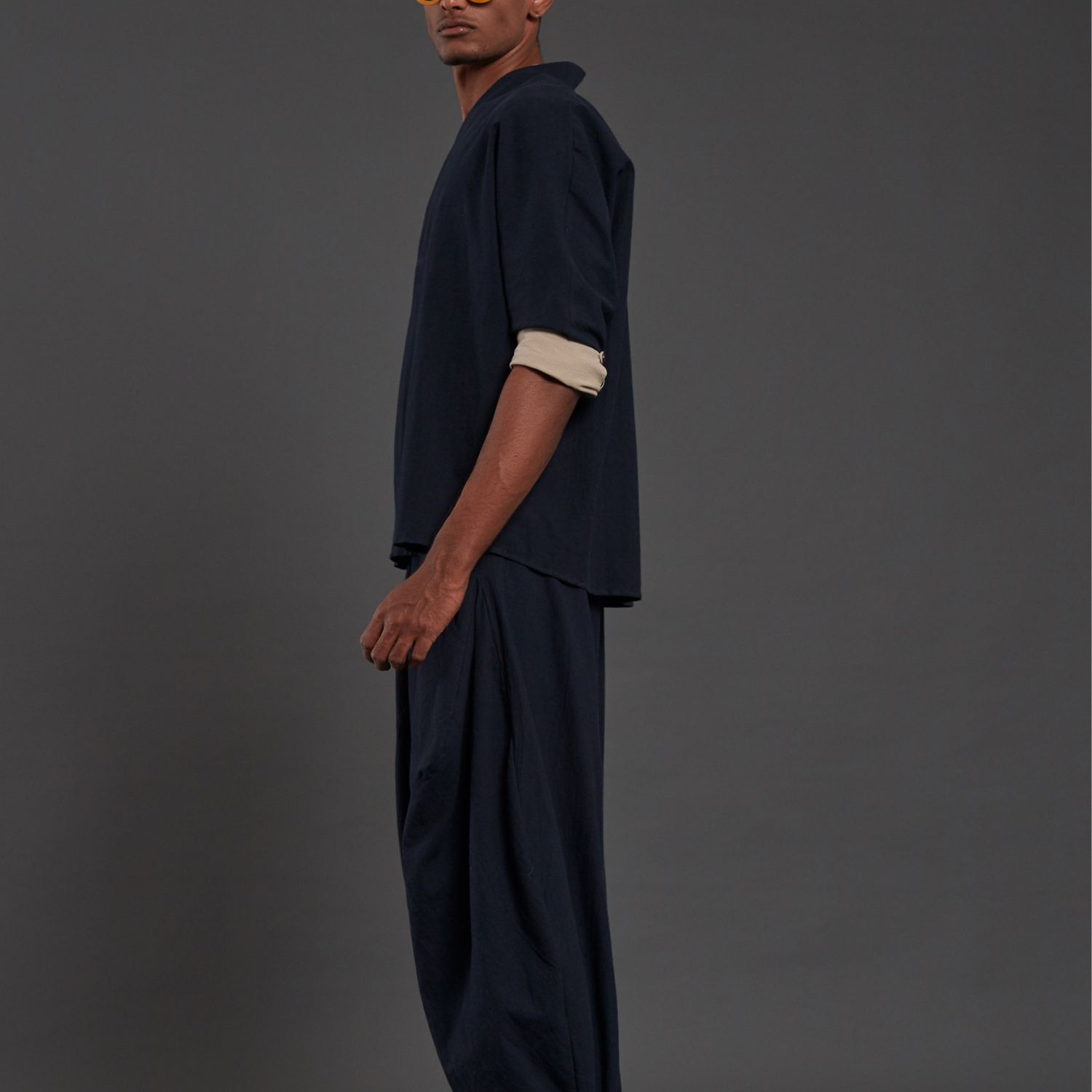 ₹ 17,000 (10% off)Make a bold fashion statement with this striking navy blue two-piece set. The statement baggy pants feature a voluminous and eye-catching design, while the overlap shirt adds a touch of uniqueness. Together, they create a trendy and fashionable ensemble that is sure to turn heads. Embrace the confident and stylish look with this set, perfect for those seeking a standout outfit.