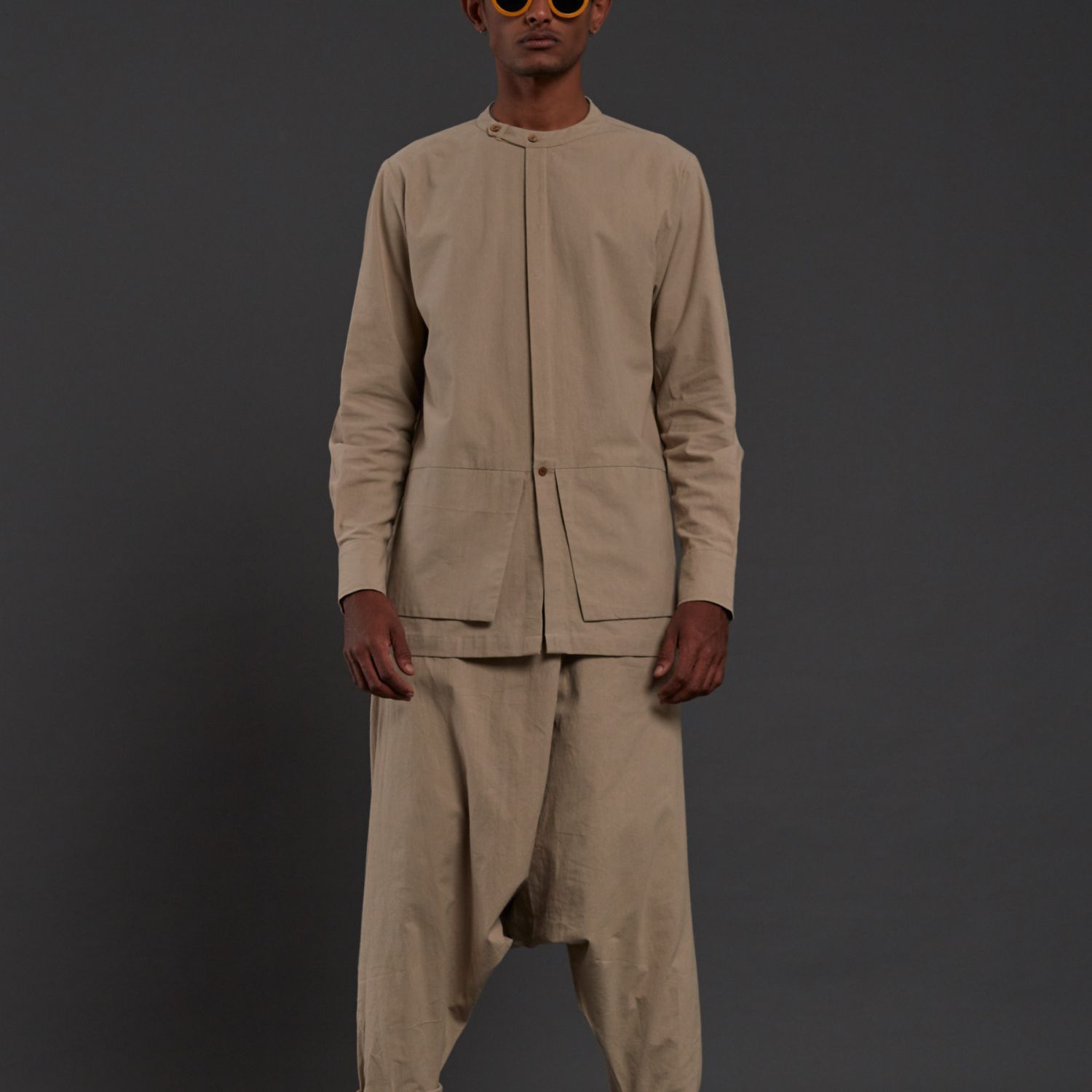 ₹ 16,850 (10% off)Elevate your style with this captivating beige two-piece set. The statement drop-crotch pants make a bold fashion statement with their unique design, while the comfortable fit-pocket shirt offers both style and comfort. This ensemble combines trendiness and practicality, making it perfect for those seeking a fashion-forward yet comfortable outfit. Embrace the distinctive and comfortable look with this set, and showcase your individuality with confidence.