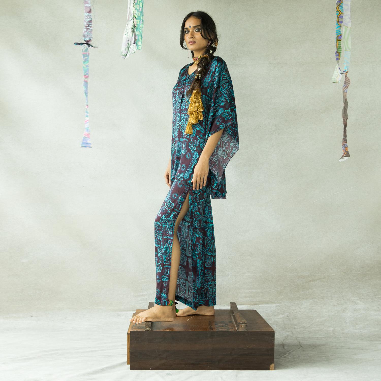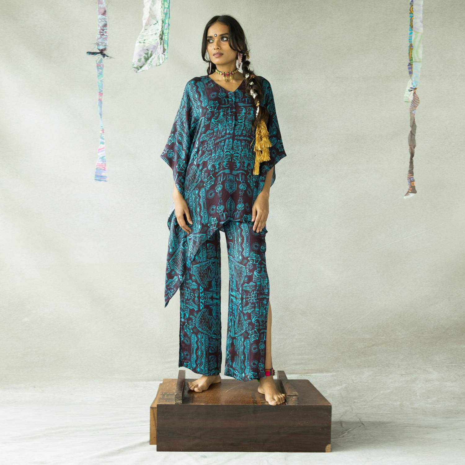 Introducing our bijlee kaftan top, an elegant addition to your wardrobe. With its asymmetric design, front V neck placket, and stylized fabric buttons, this top exudes sophistication and style. Perfect for any occasion, its comfortable fabric ensures a perfect fit every time.