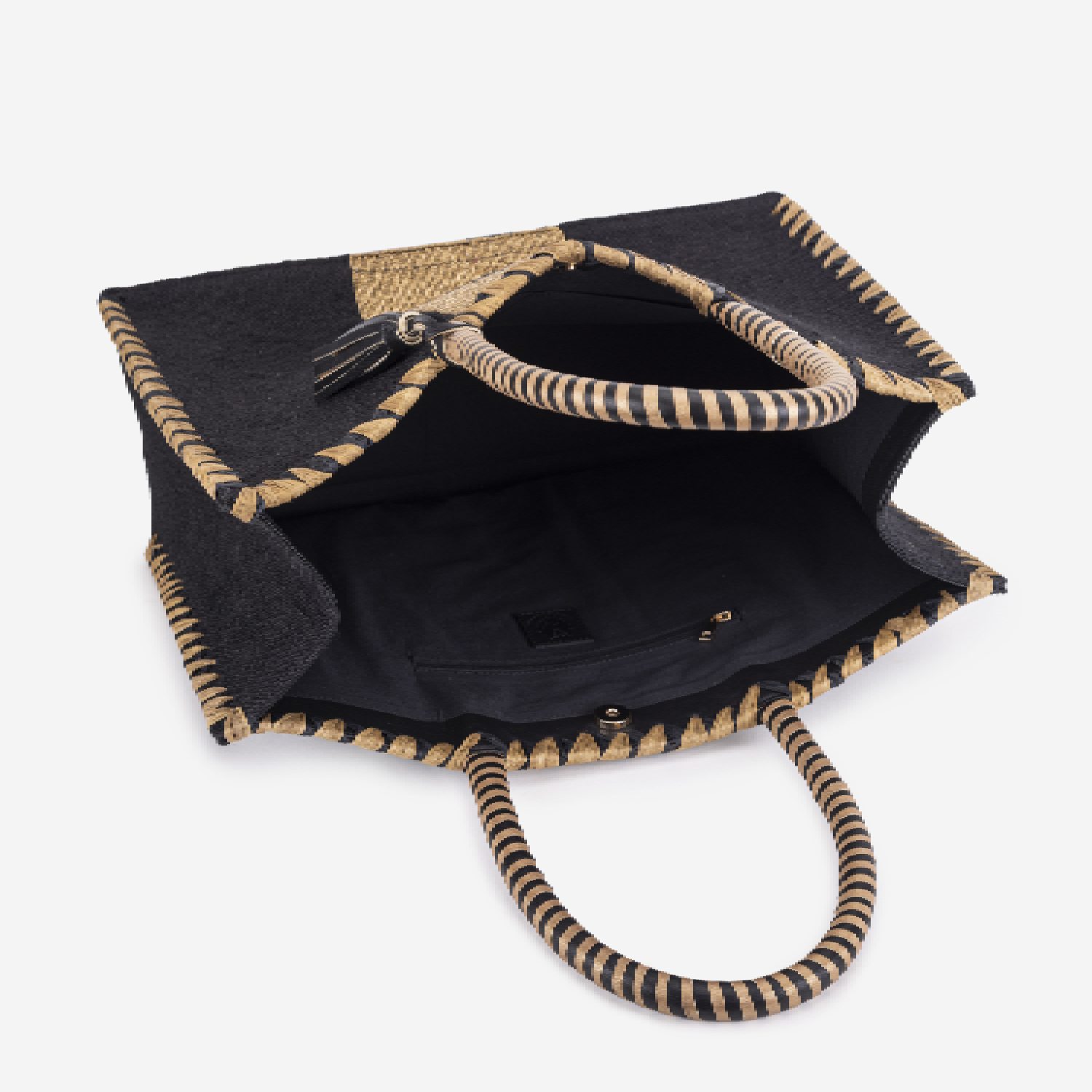 Crafted from a combination of leather and jute, this bag comes in black and gold shades. The bag features a magdot closure, providing secure access to your belongings. Style this shoulder bag with a kurta and jeans for a dressy day out.