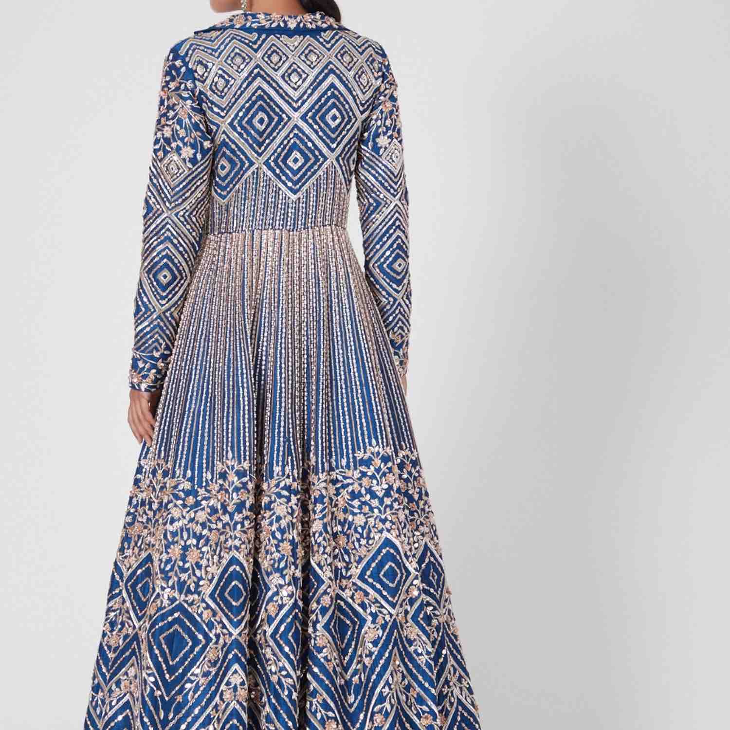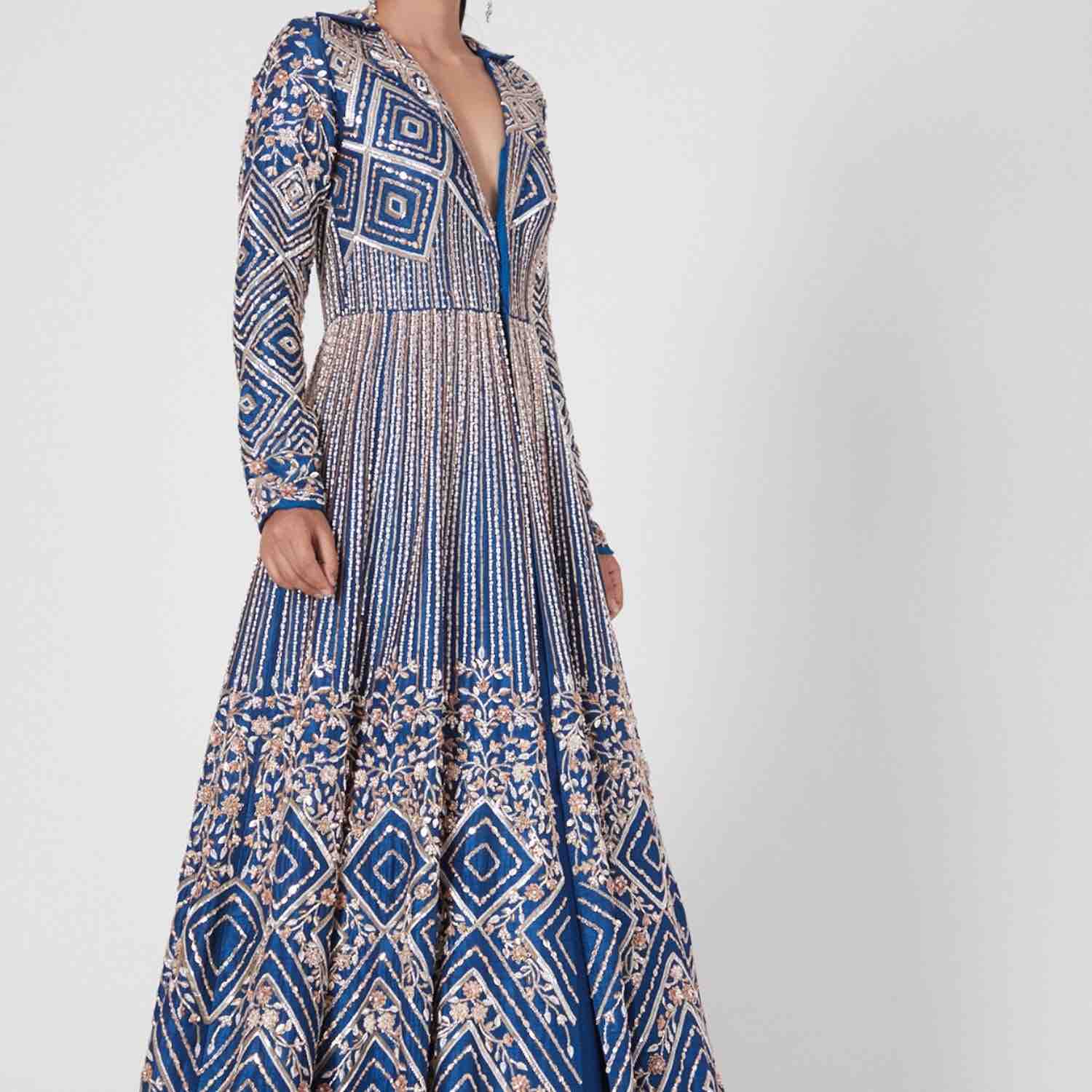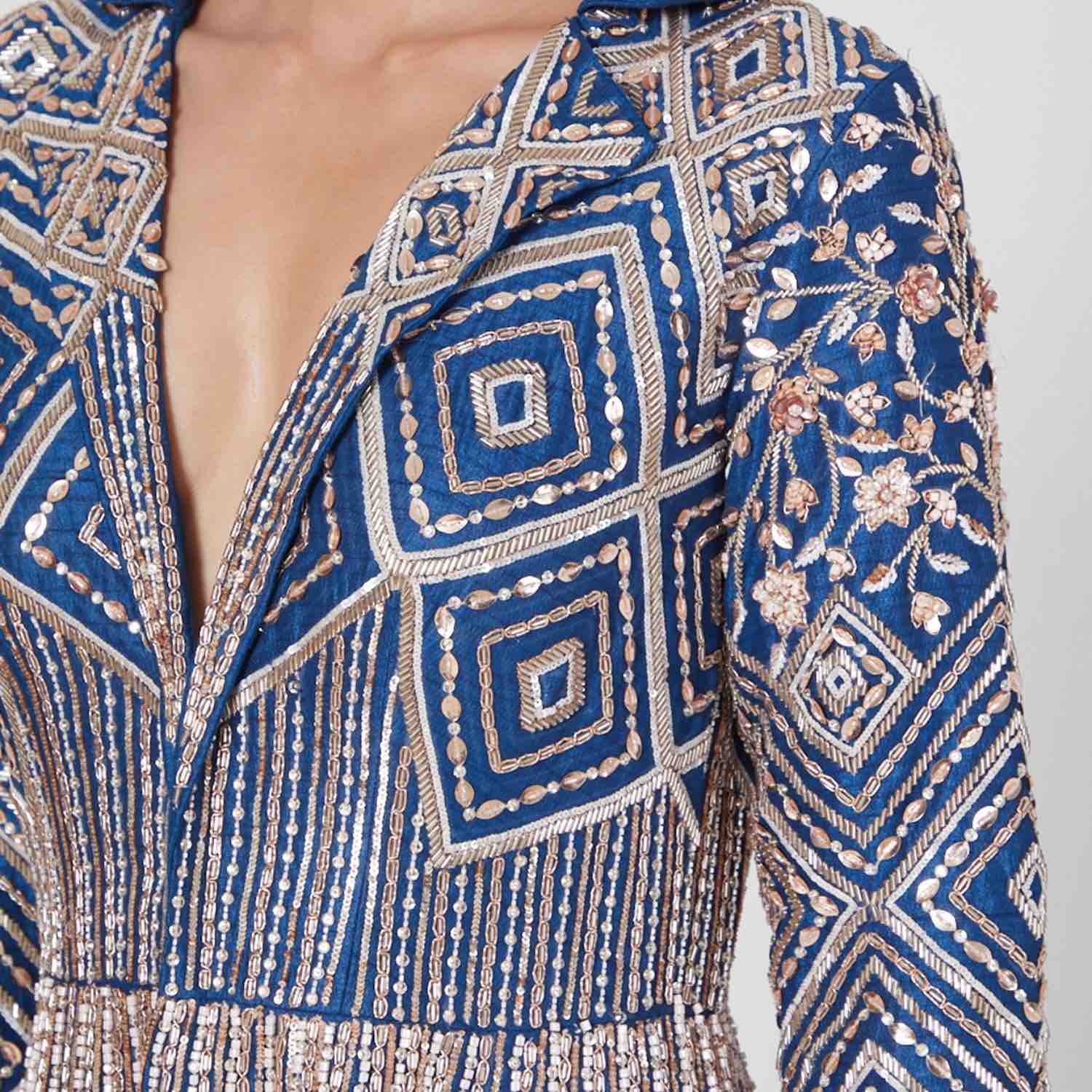 ₹ 1,86,000 (10% off)Introducing this exquisite blue jacket, meticulously crafted from luxurious dupion fabric and adorned with intricate aari embroidery. This statement piece is perfectly paired with a matching lehenga, creating a harmonious and fashionable ensemble. Ideal for special occasions, this combination exudes elegance, style, and a touch of traditional charm.