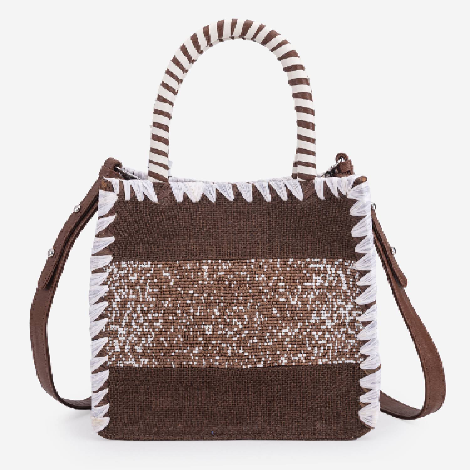 This chic handbag features a square shape and comes in a brown shade for an elegant look. It is crafted from a combination of leather and jute, offering a mix of textures and durability. The handbag is equipped with a magdot closure, ensuring the security of your belongings. It comes with one handle and one strap, allowing you to carry it as a handbag using the handle or wear it as a sling bag with the strap.