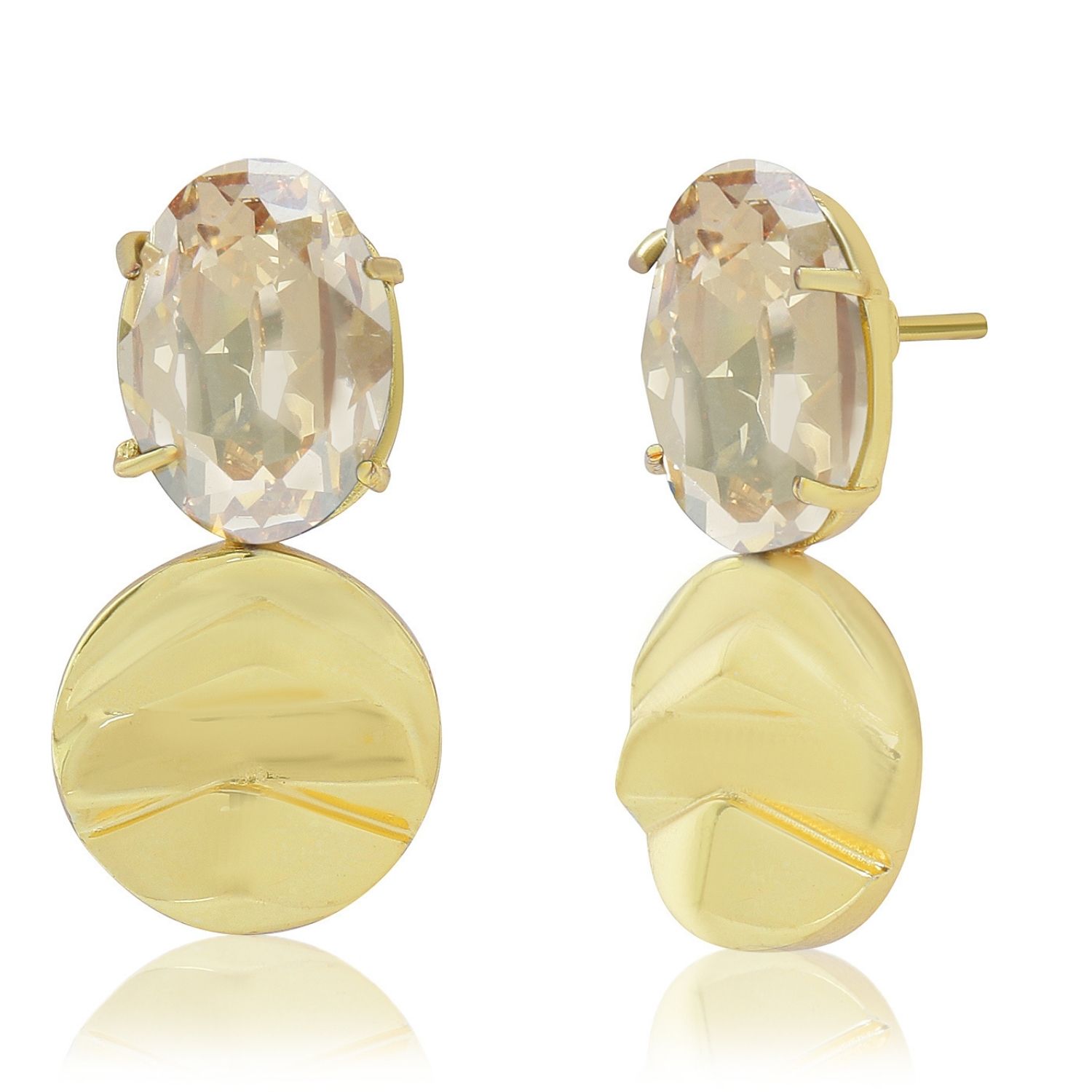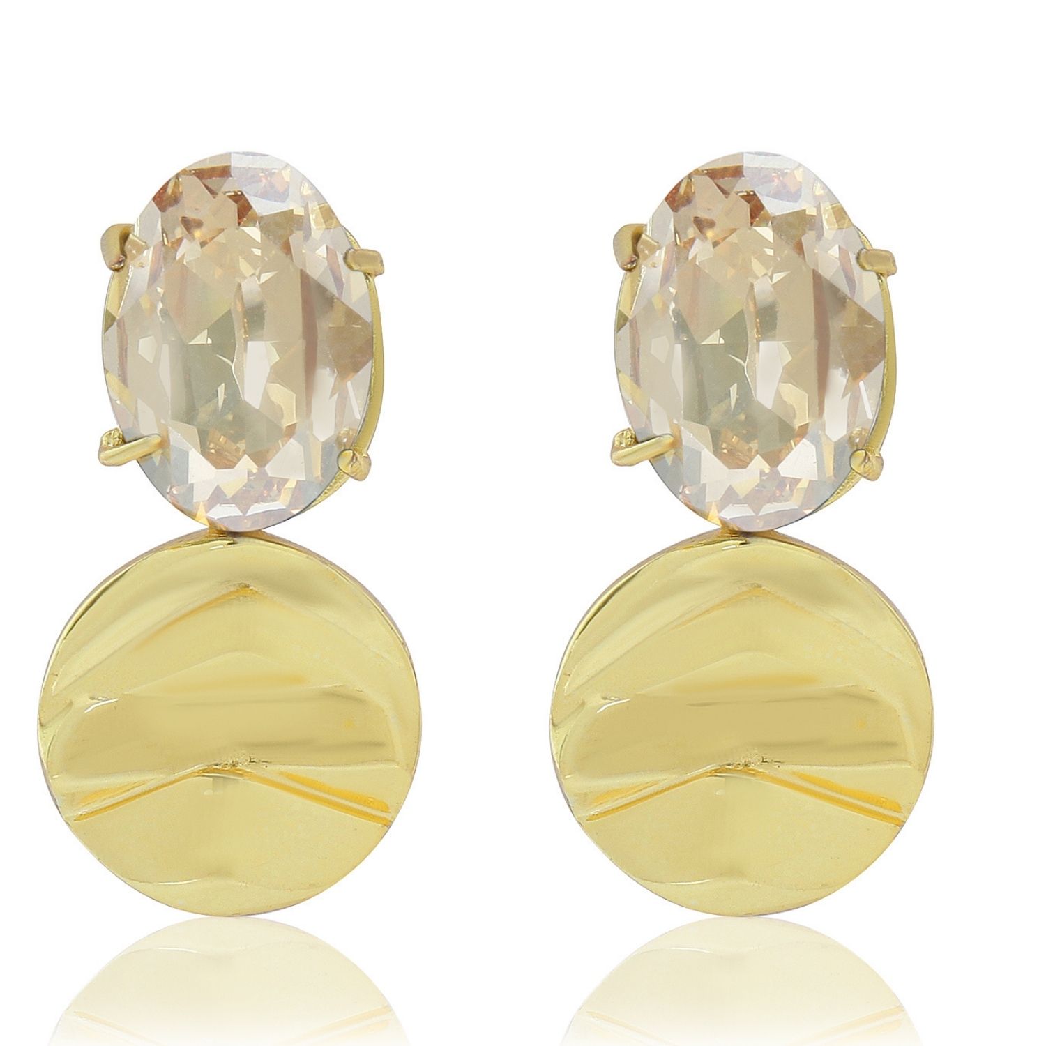 ₹ 2,800 (10% off)These exquisite studs create a beautiful?accessory that will complement any outfit by fusing the classic beauty of crystals with the intricate charm of textured gold. The textured gold gives the studs' overall appearance an air of refinement and luxury. You can wear them with confidence day or night thanks to the push-back?closure's snug fit and secure fit.
