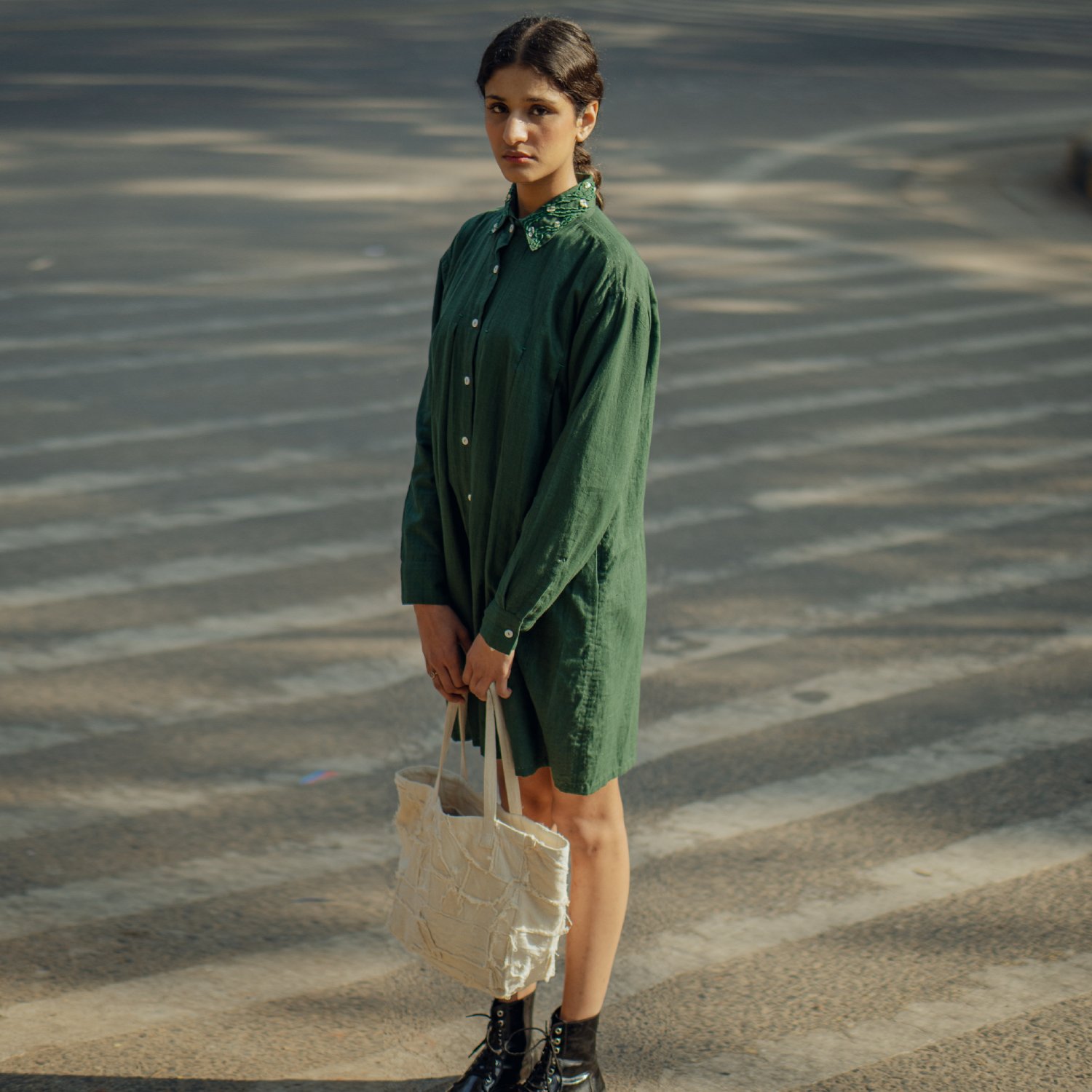 ₹ 3,499 (10% off)This small tote bag is crafted from the finest cotton and features a spacious interior with a pocket on the inside providing discreet space for storing your valuables. It has some inner pockets that offer additional organization and convenience, ensuring you can keep your essentials well-arranged.