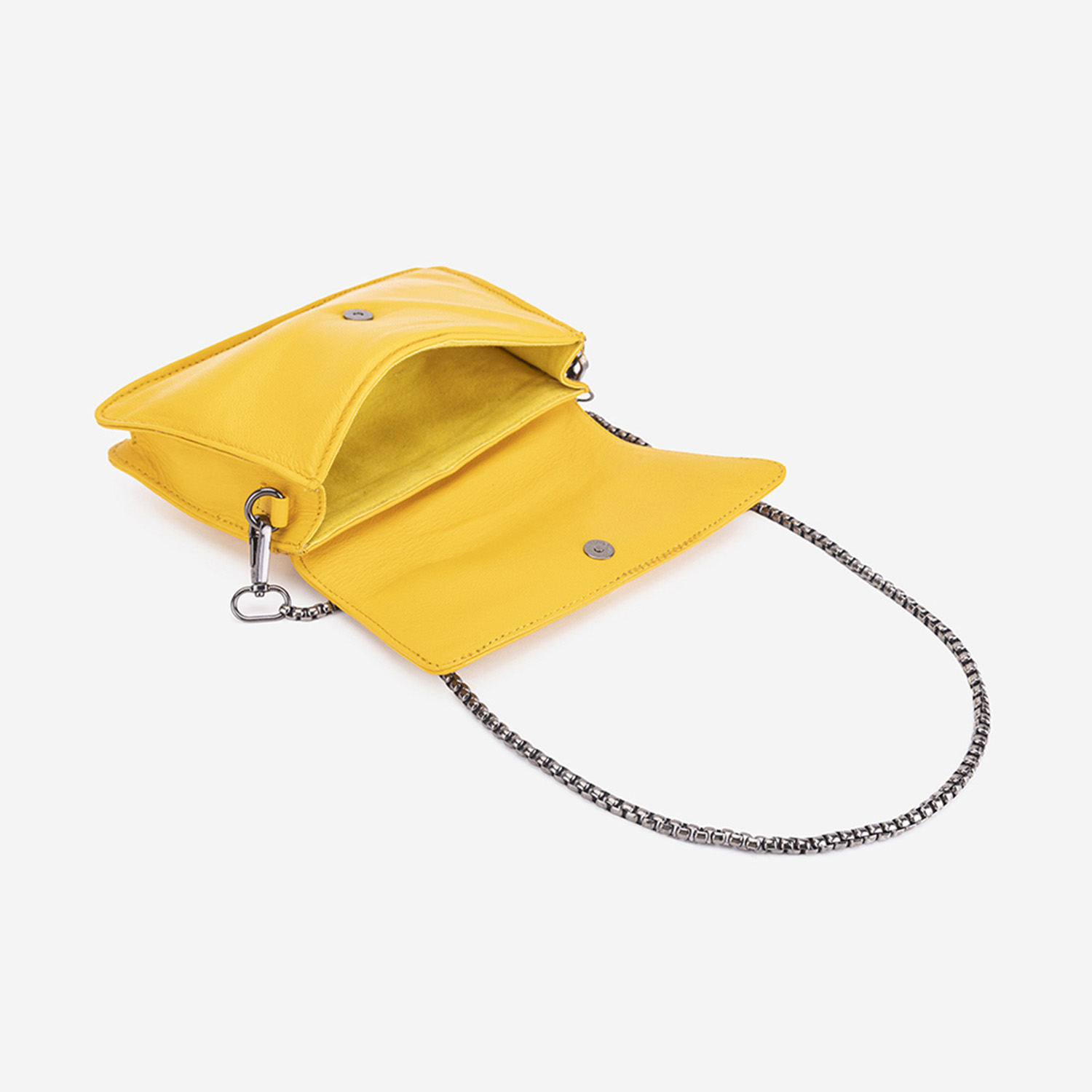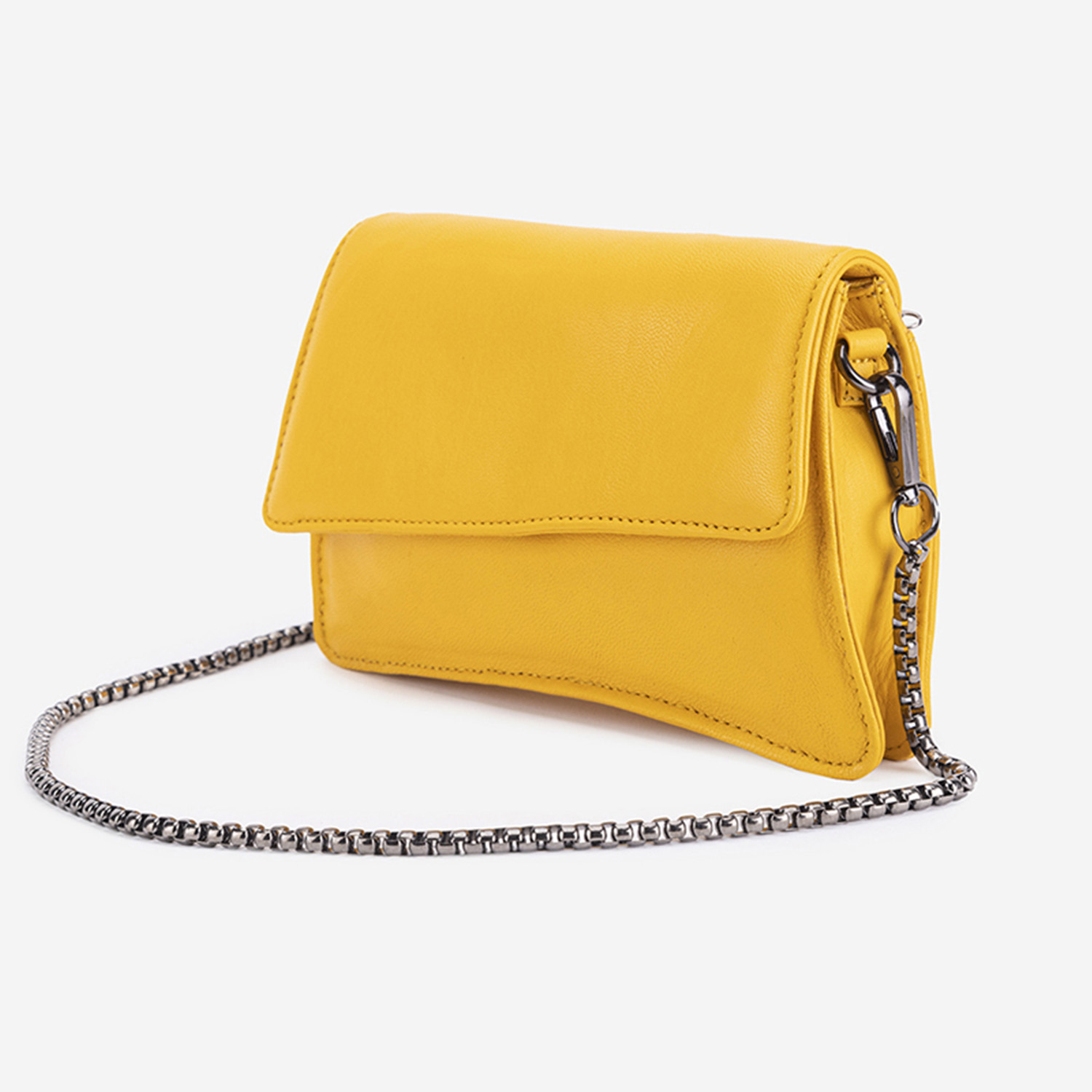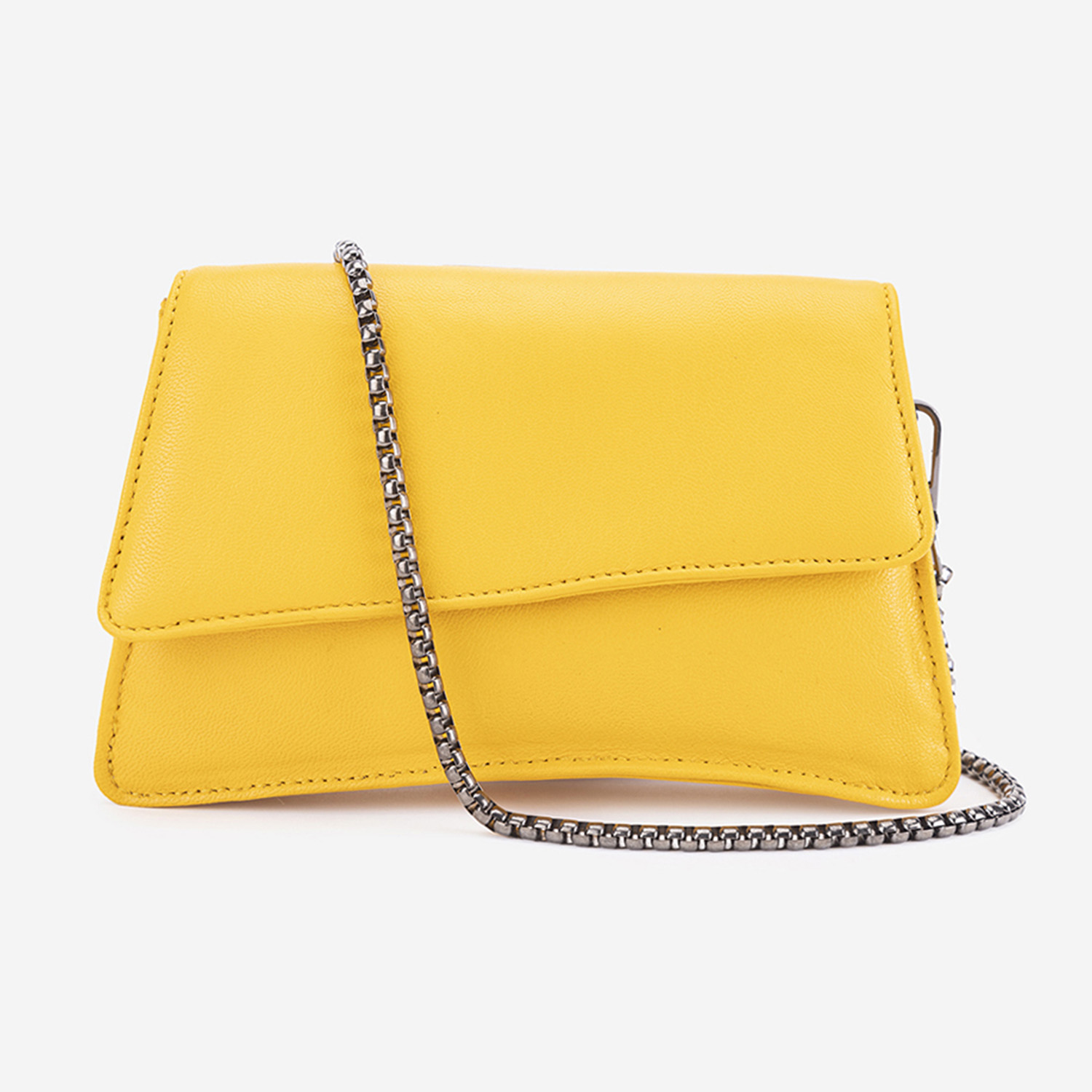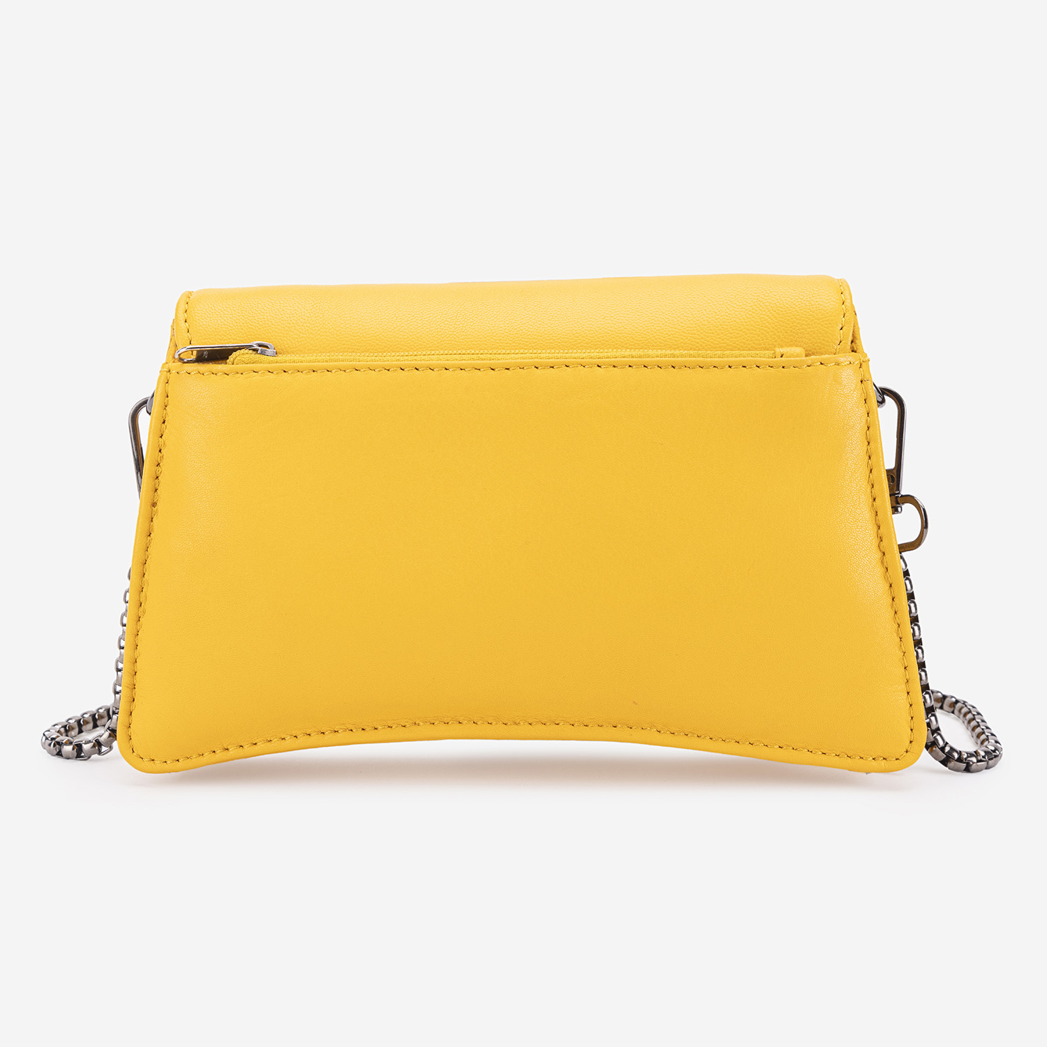 Crafted from high-quality leather, this bag has a bright yellow shade that's perfect for adding a pop of color to your outfit. The flap closure ensures the safety of your belongings, making it convenient to use. Style it with a white sundress and sandals for a summer look.
