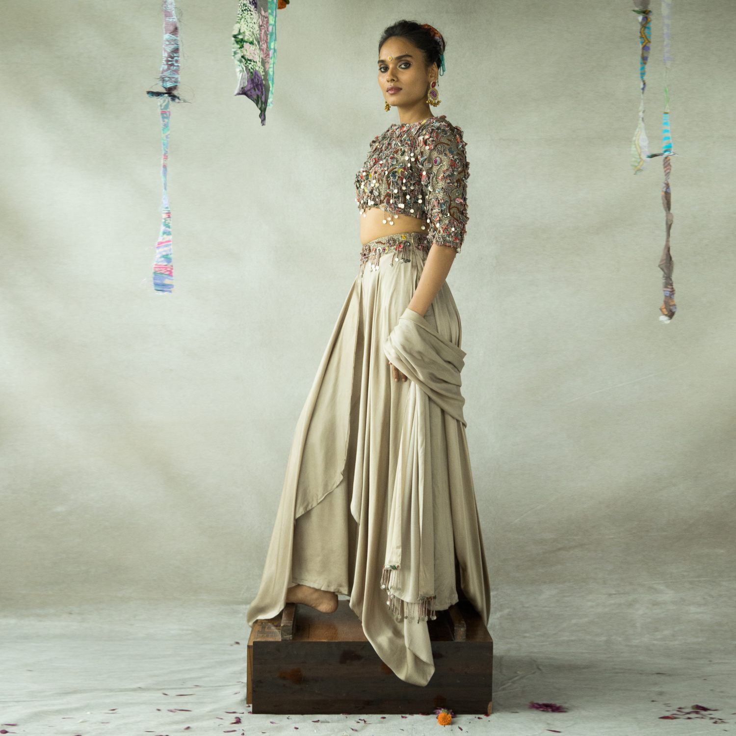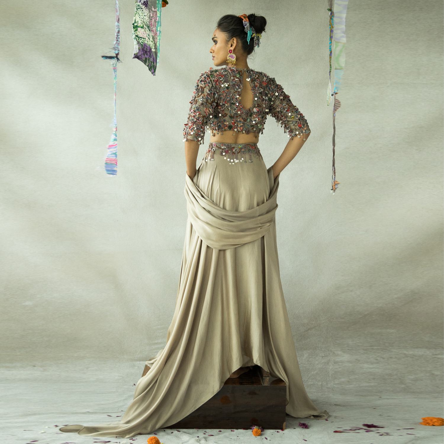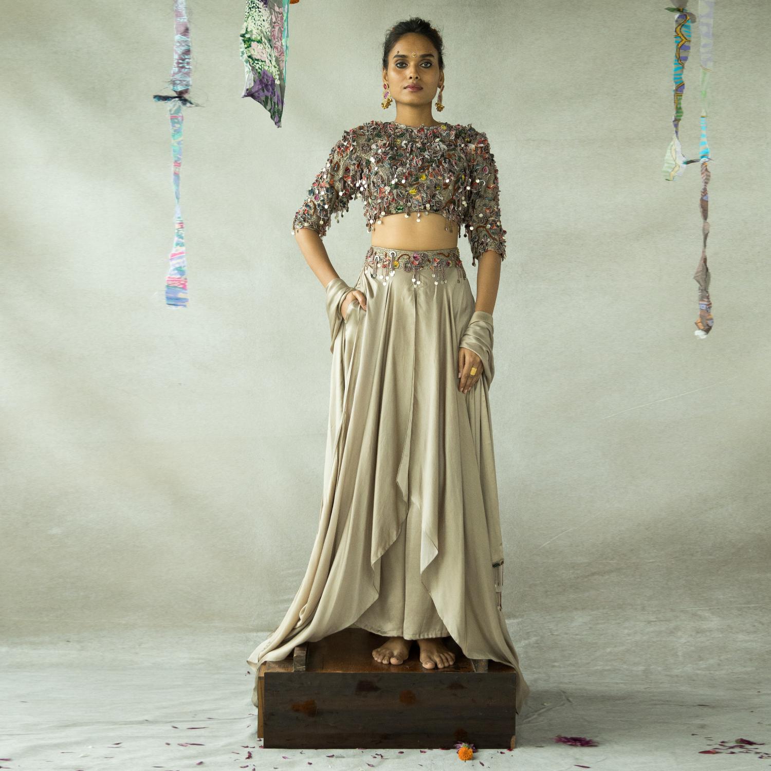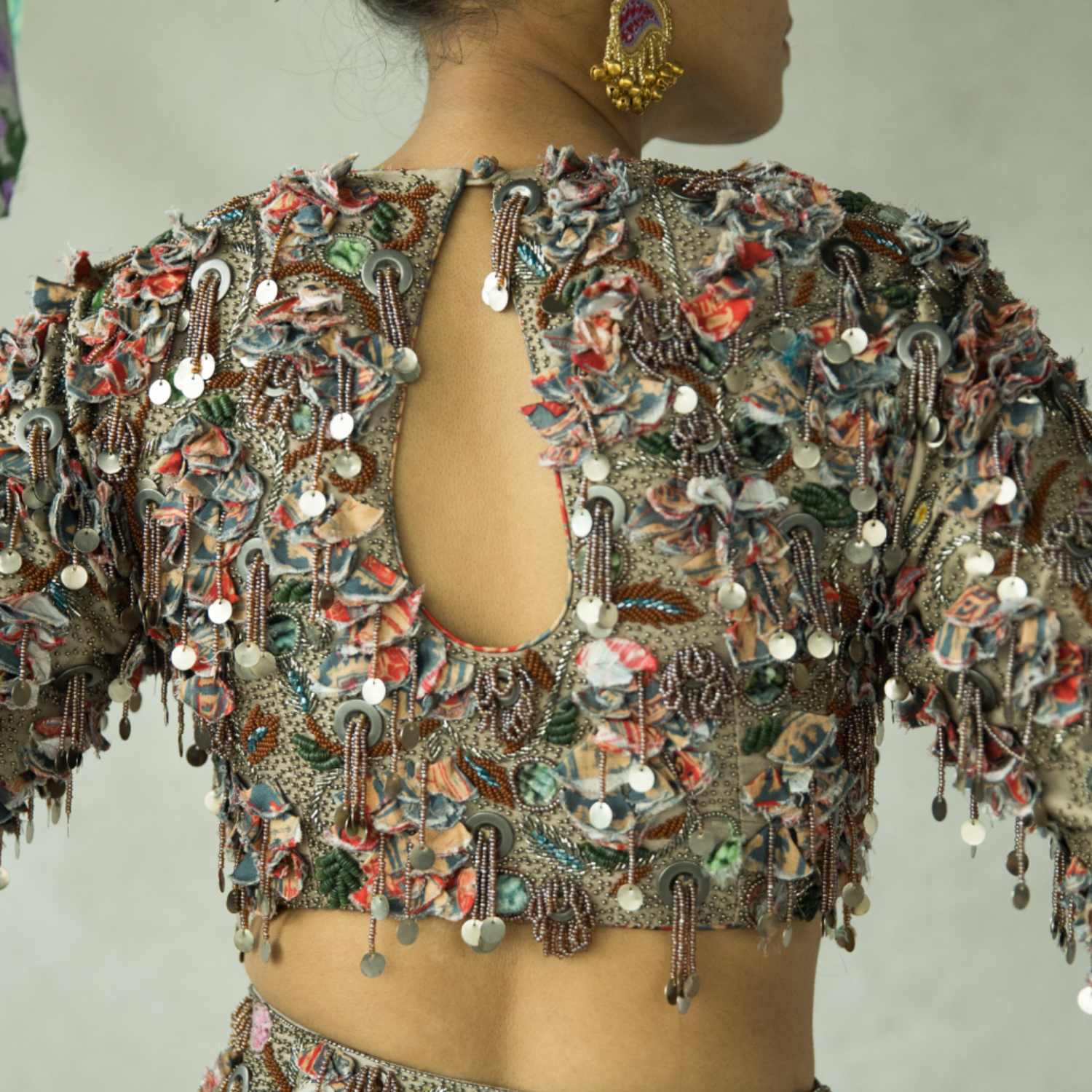Presenting the chamma chamma blouse, a meticulously hand-embroidered piece crafted with perfection. This high-neck blouse features a tasteful keyhole detail at the back, enhancing the elegance of any ensemble. Experience luxury with this exquisite creation.