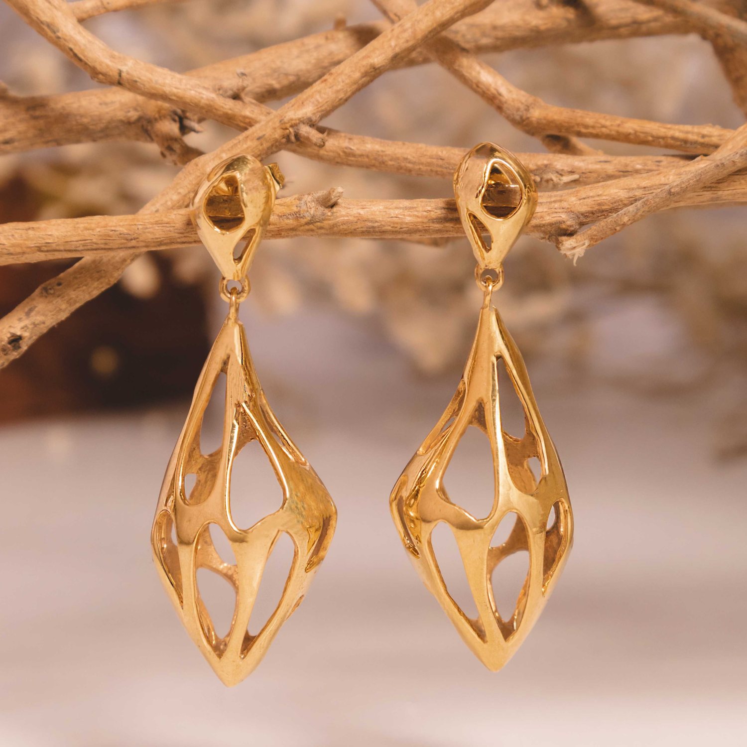 These statement earrings are crafted from brass and finished in a beautiful gold color. They can be a unique and stylish addition to your wardrobe.
