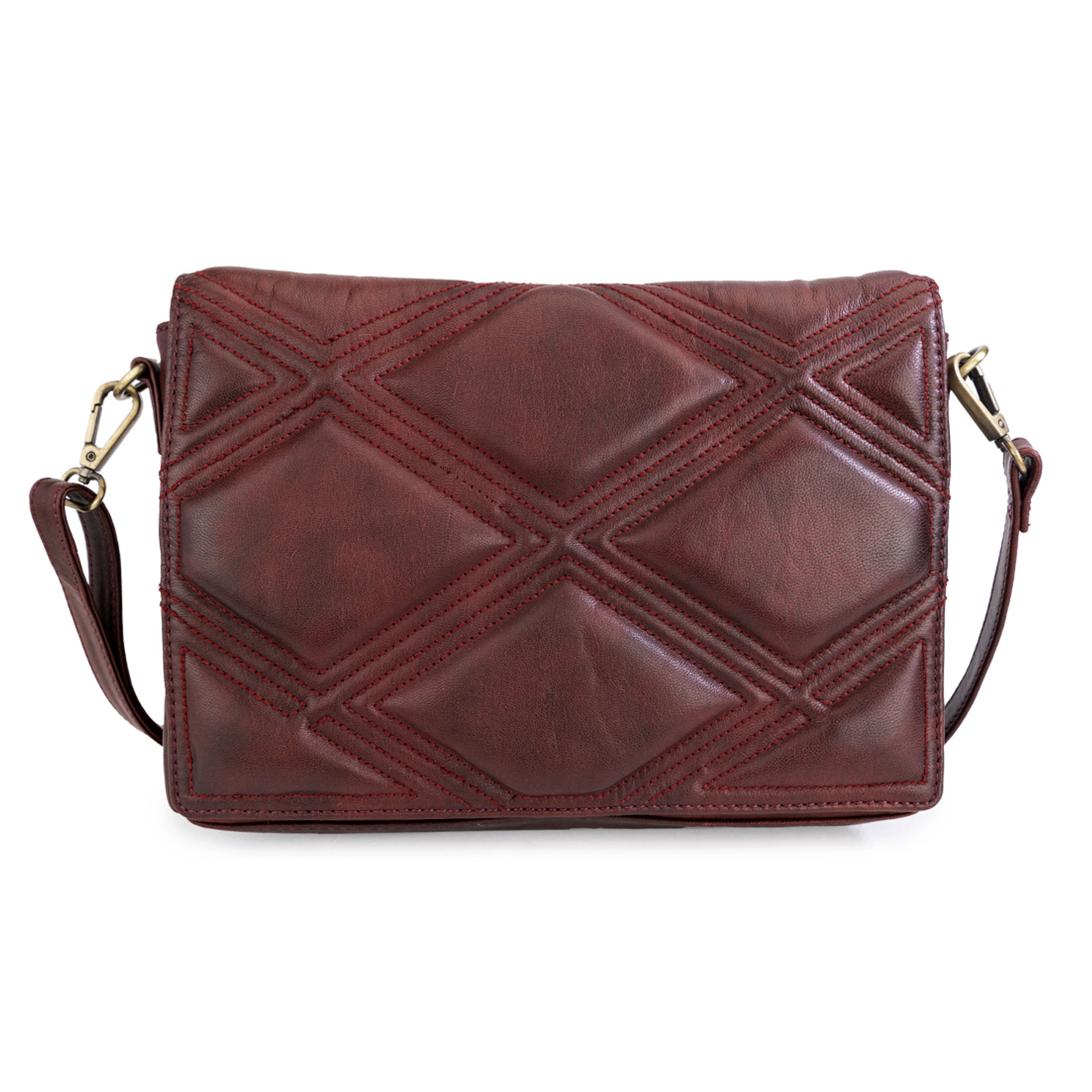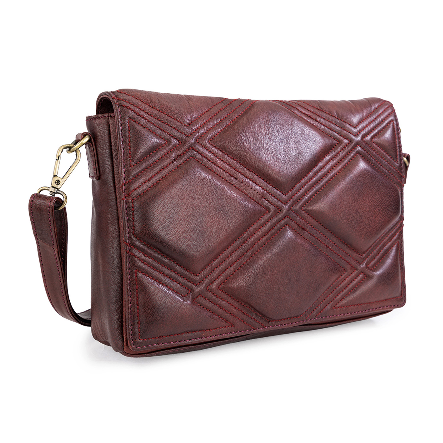This sling bag is crafted from genuine leather and offers a luxurious texture. The bag features a rich maroon color that complements a wide range of outfits. The flap closure ensures elegance while keeping your belongings secure.