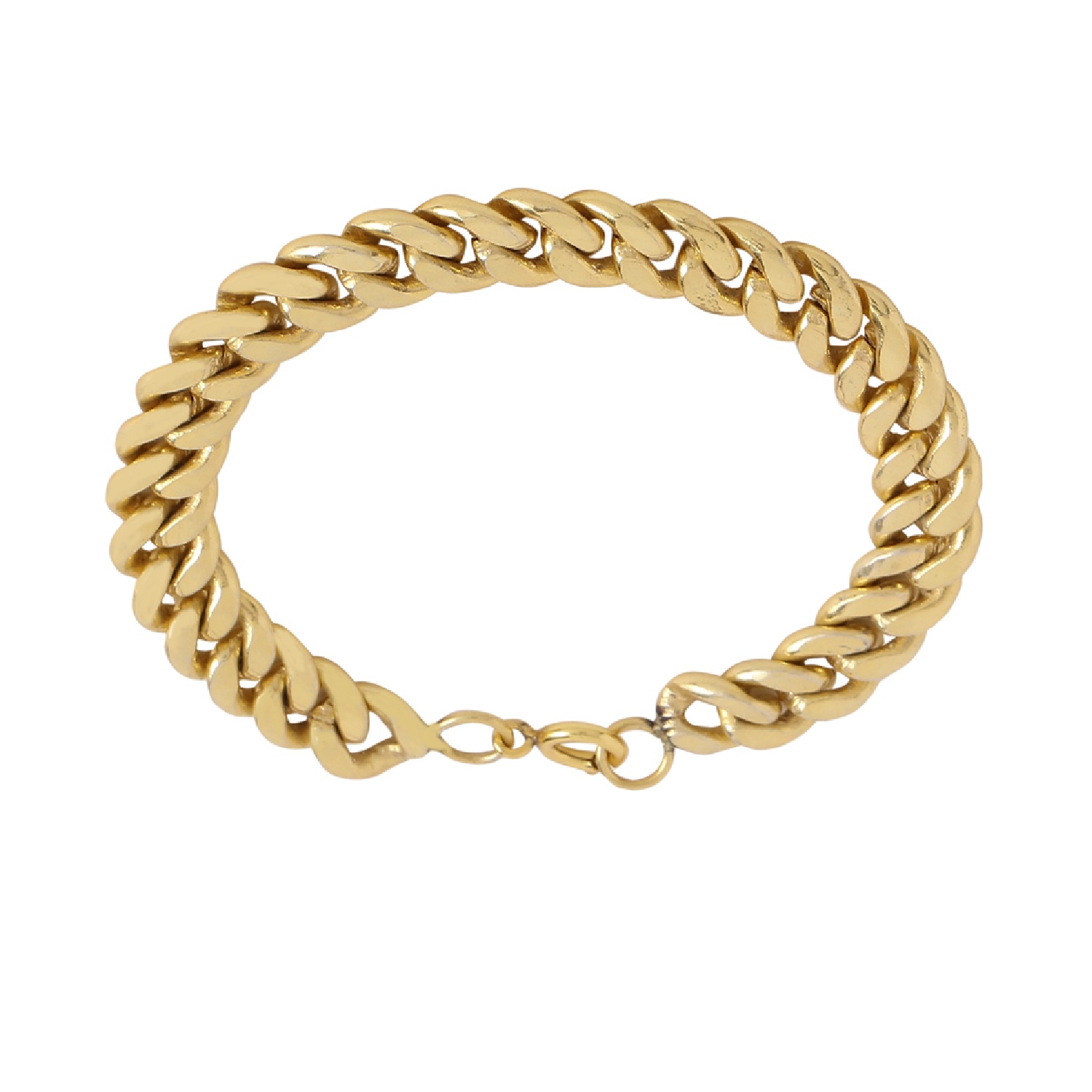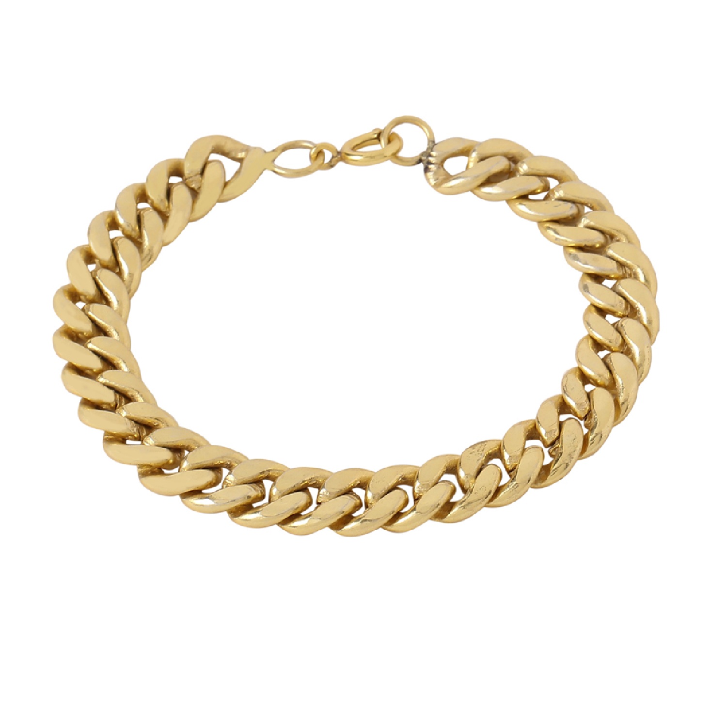 This bold and shimmery piece is designed to add glamour to your look. This eye-catching bracelet is handcrafted with attention to detail, ensuring its quality and uniqueness. It is made from brass, providing durability and a matte golden finish. It features a lobster clasp closure for easy and secure wearing.