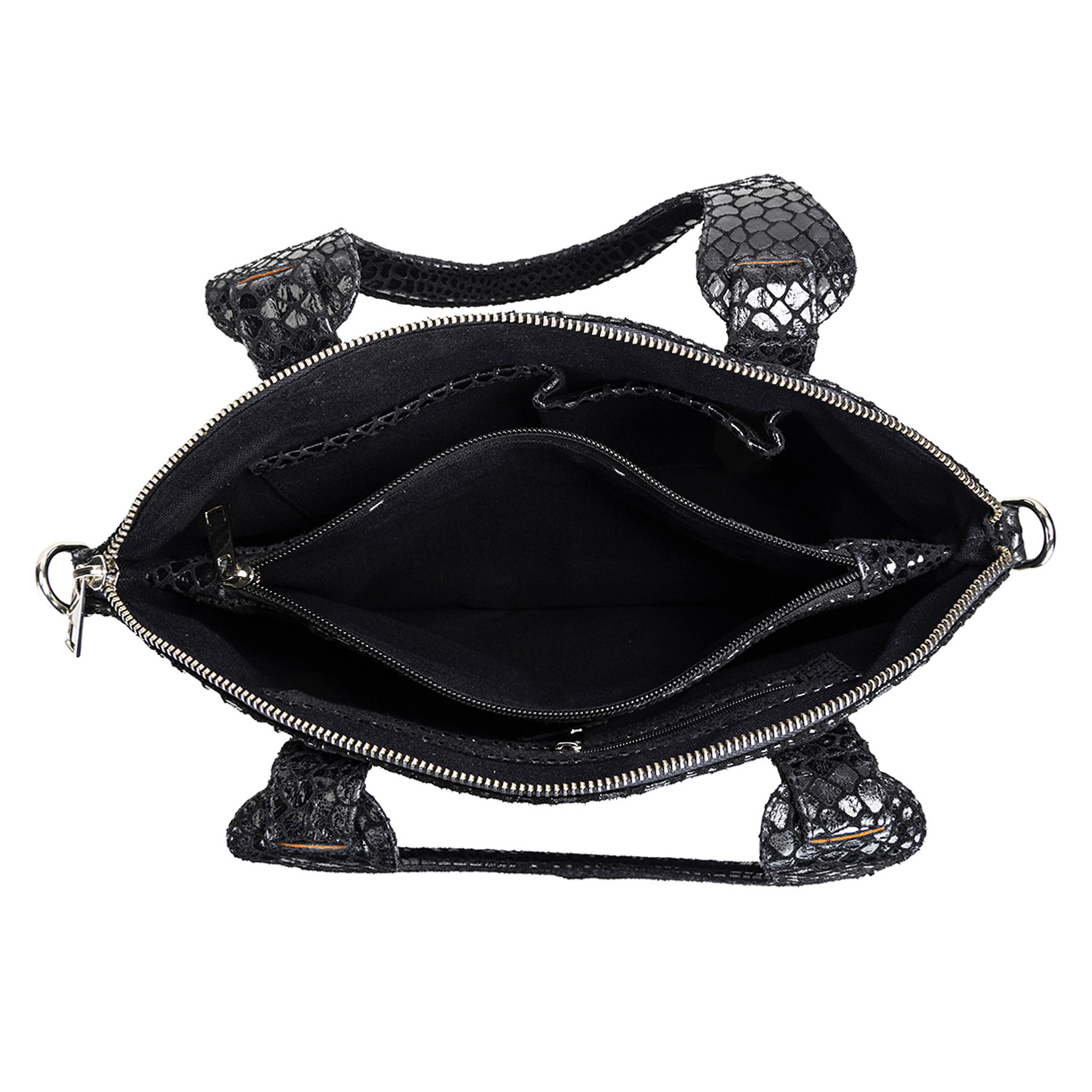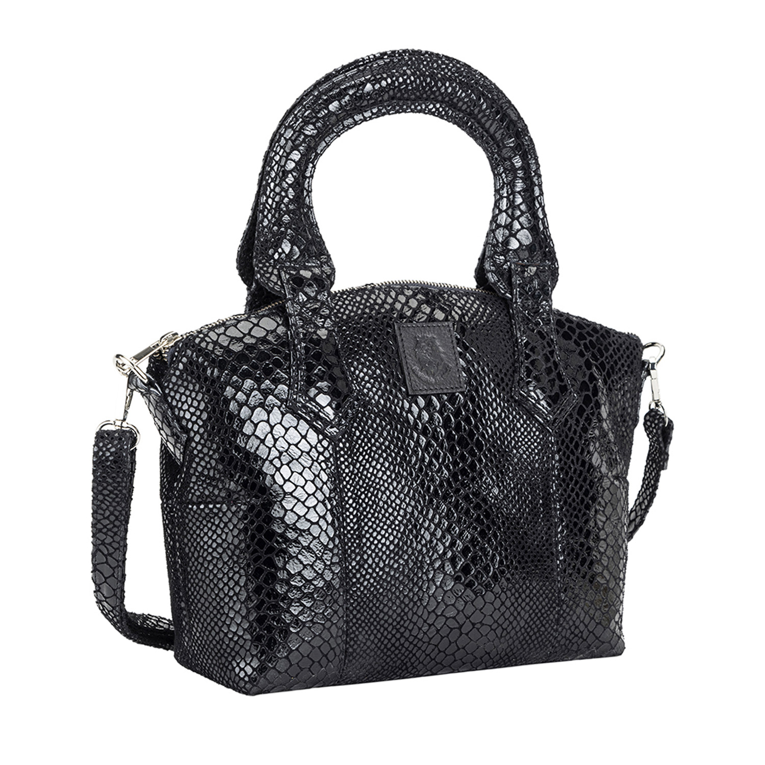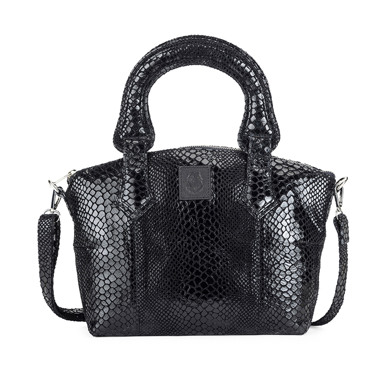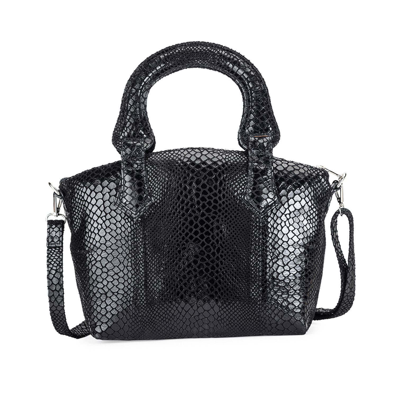 This beautiful bag is crafted from high-quality leather material. This black handbag has a zipper closure, snake print and two straps, adding convenience and style. Style it with a black dress and heels for a dressy evevning event.