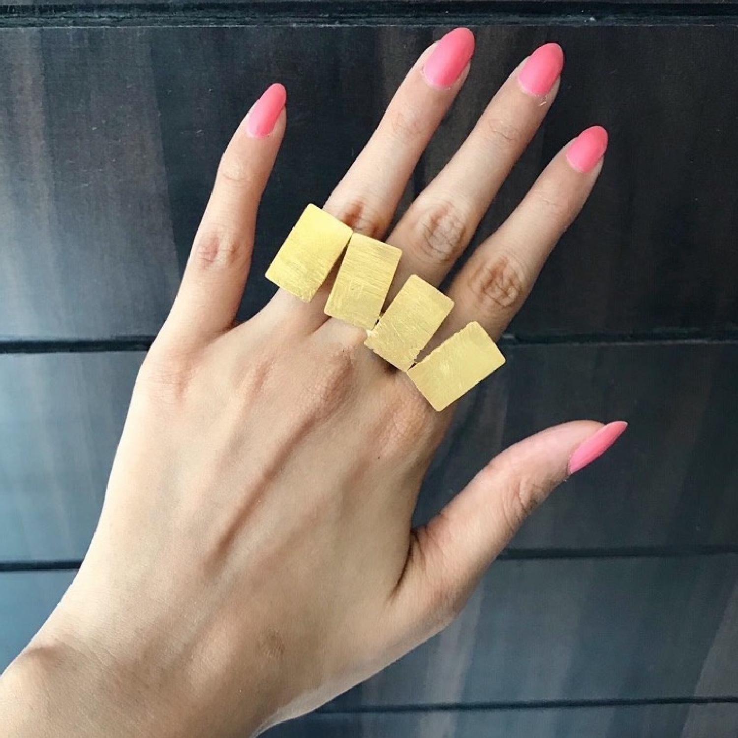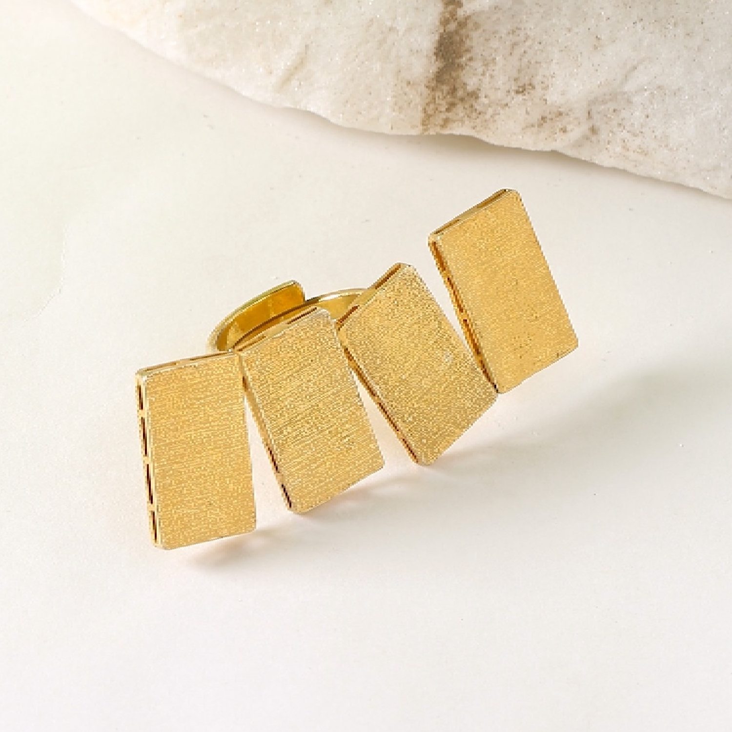 This contemporary gold-plated ring offers a modern and fashionable look. It is meticulously handcrafted with attention to detail, ensuring quality and uniqueness. Crafted from brass, it provides durability and a beautiful golden finish. The ring is adjustable, allowing for a customized fit, and it features a matte finish that adds sophistication to its overall design.