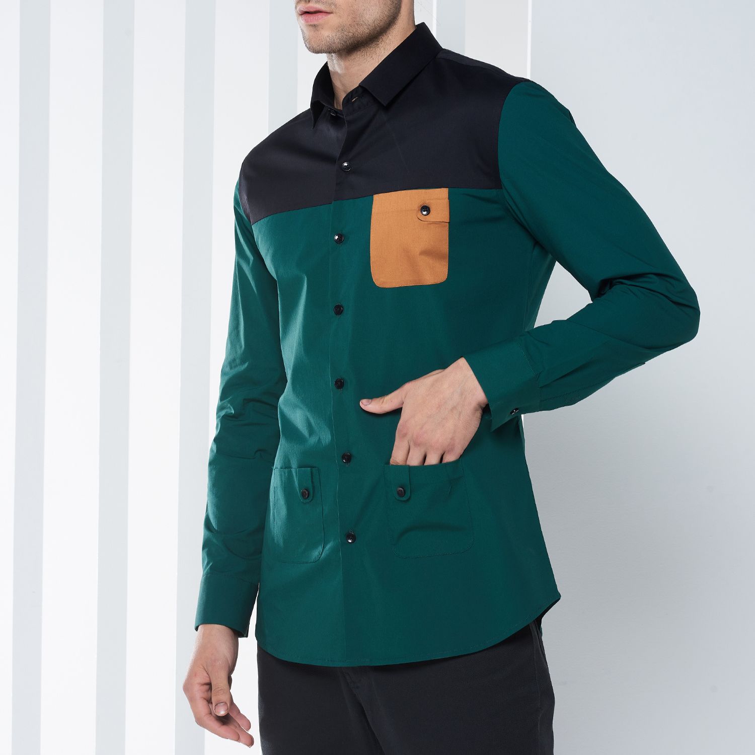 This stylish piece features a captivating shade of emerald green adding a touch of sophistication and elegance to your ensemble. Crafted from high-quality cotton fabric, it ensures comfort and breathability all day long. This piece is versatile and can be dressed up or down for various occasions, making it a must-have for any fashion-forward gentleman.