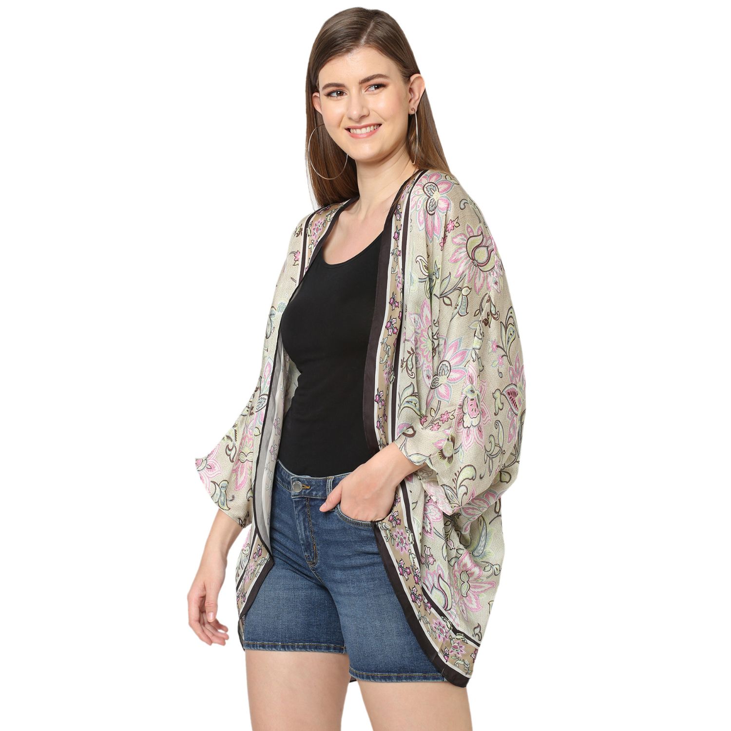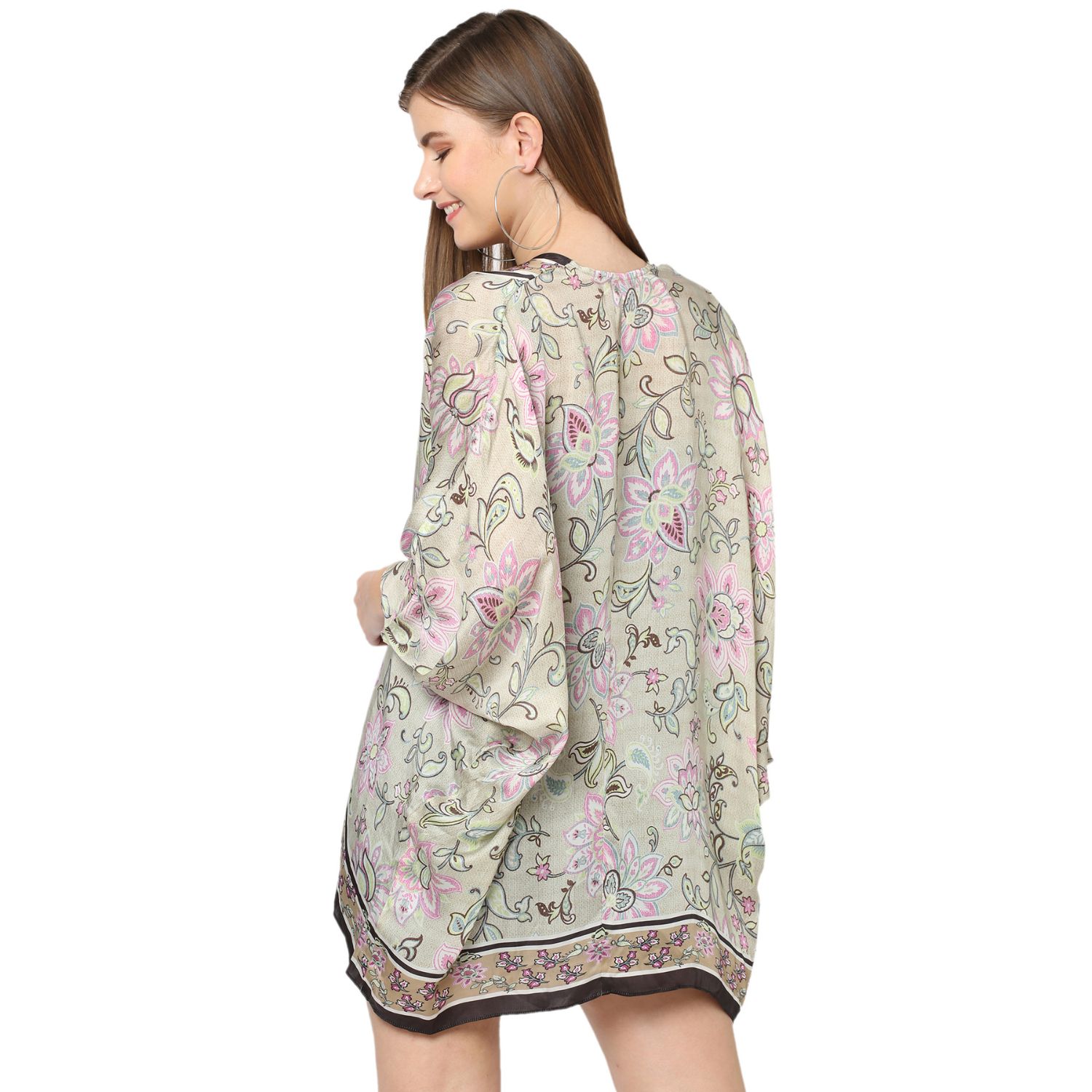 ₹ 3,200 (10% off)This gorgeous floral-printed cape is crafted in a soft and luxurious cupro viscose fabric. Multiway styling cape, which can be paired with almost anything in your wardrobe to give an elevated look. This dress is perfect for any special occasion or event.