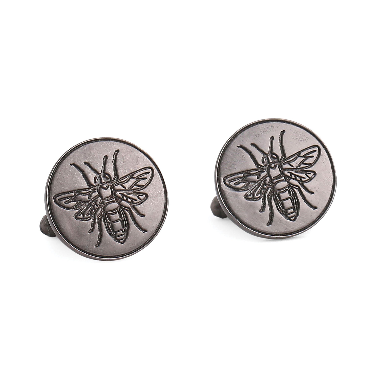 These beautiful cufflinks are crafted from high-quality brass material. They feature an intricate bee design, a matte finish, and an antique black shade. Style it with a blazer and minimal accessories for formal events.