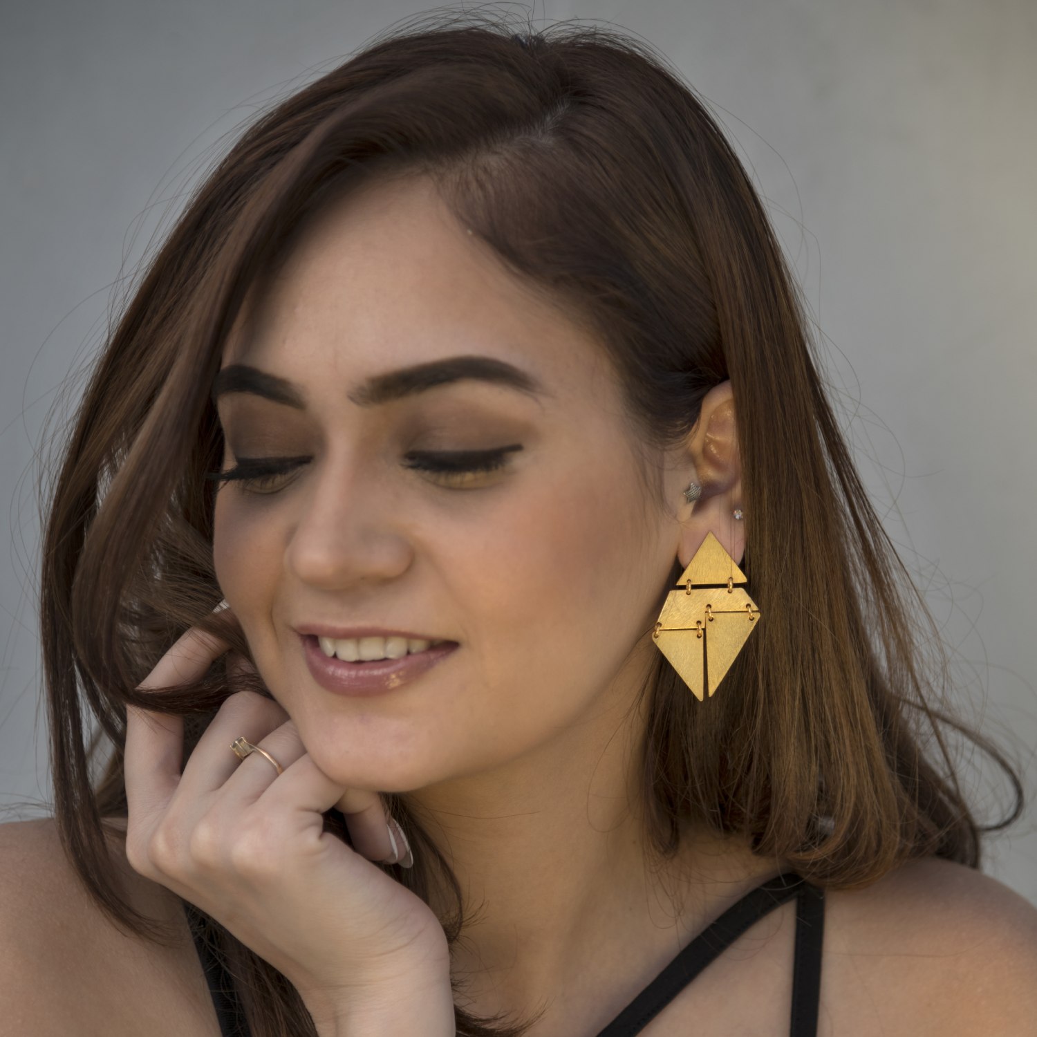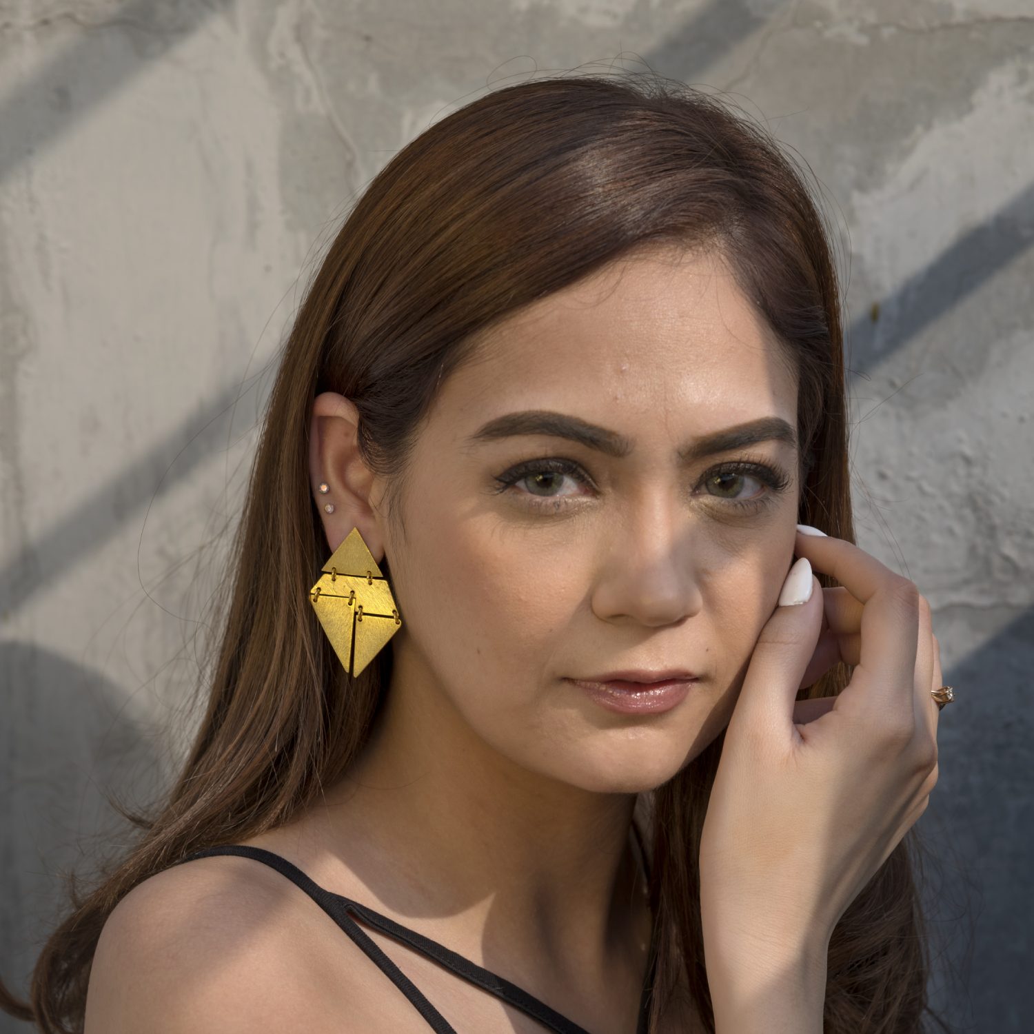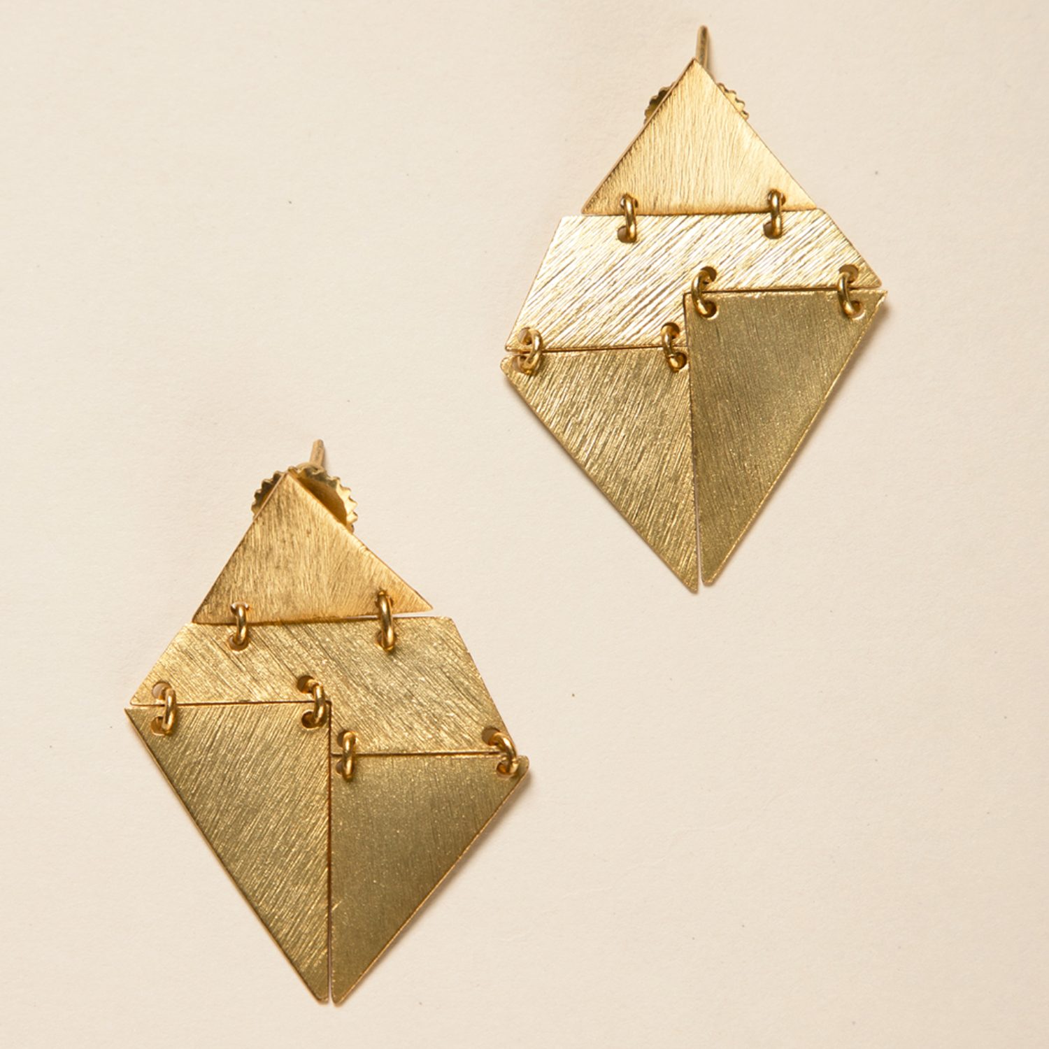 Elevate your elegance with these exquisite geometric rhombus gold plated earrings, combining sophisticated design and luxurious materials. Crafted with precision, these earrings showcase a stunning geometric pattern, capturing attention with their radiant gold finish. Embrace timeless style and make a statement with this glamorous accessory that complements any ensemble effortlessly.