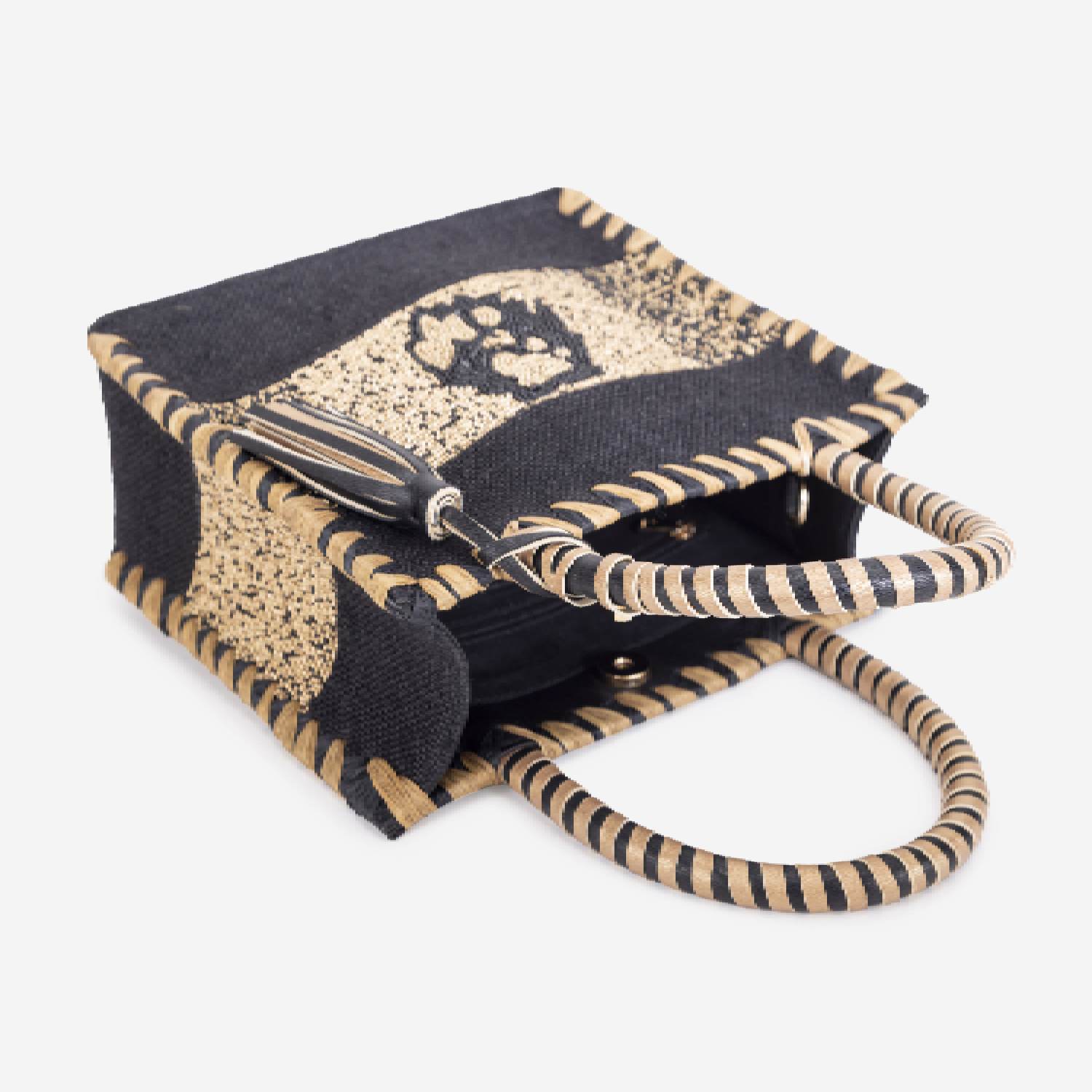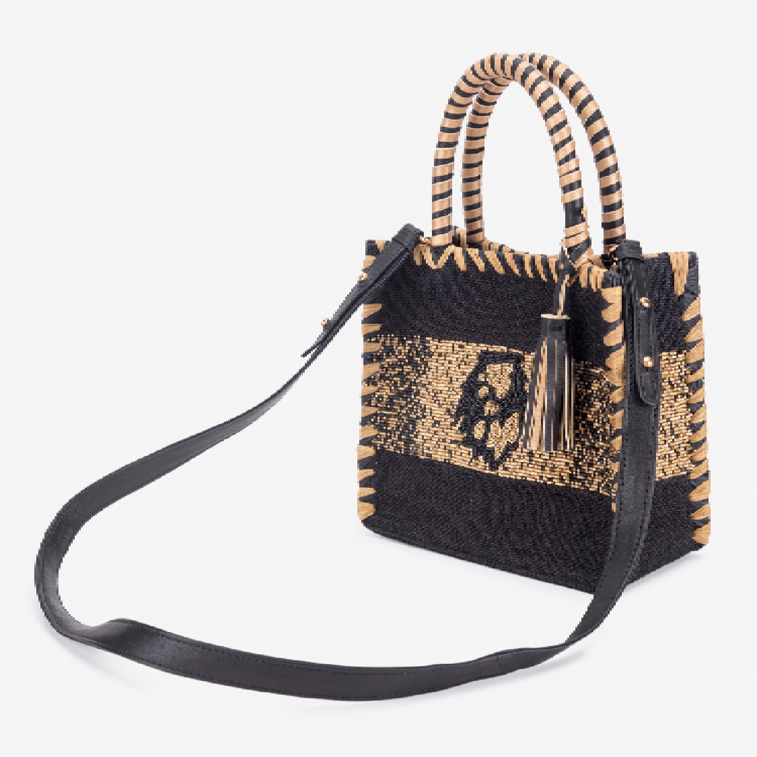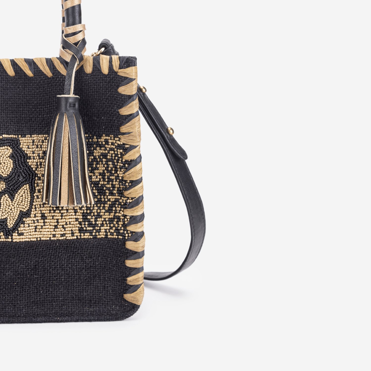 This beautiful handbag features a square shape, combining gold and black colors for an elegant look. It is crafted from a combination of leather and jute, offering a mix of textures and durability. The handbag is equipped with a magdot closure, ensuring the security of your belongings. It comes with one handle and one strap, allowing you to carry it as a handbag using the handle or wear it as a sling bag with the strap.