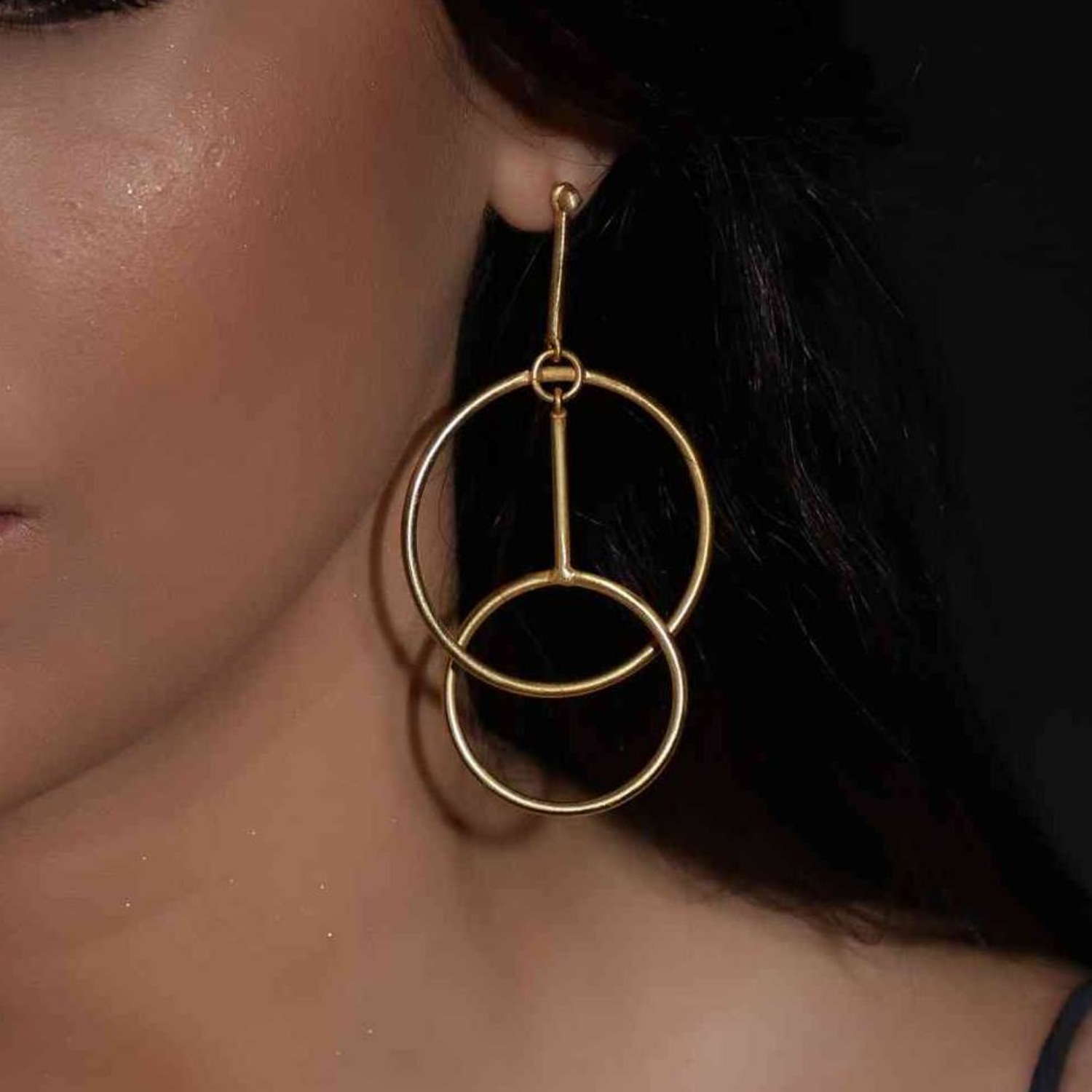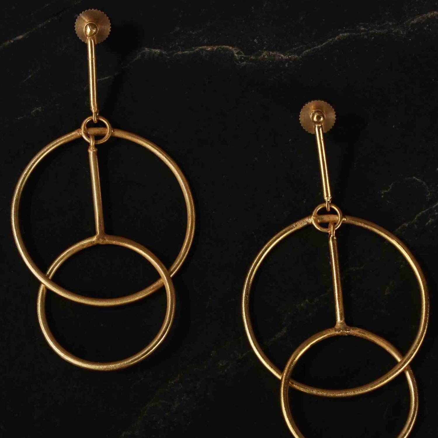Make a bold fashion statement with these gold plated coincentric circle danglers. Featuring a dynamic design of concentric circles, these earrings exude modern elegance. The luxurious gold plating adds a touch of sophistication, making them a striking accessory to elevate your style and command attention on any occasion.