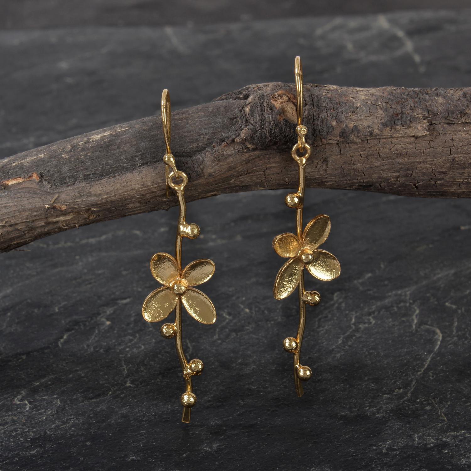 Indulge in the enchanting beauty of gold plated floral vine loops, where nature meets elegance. These earrings feature intricately designed loops adorned with floral and vine motifs, creating a captivating and timeless aesthetic. The luxurious gold plating adds a touch of opulence, making these loops a statement accessory for any stylish occasion.