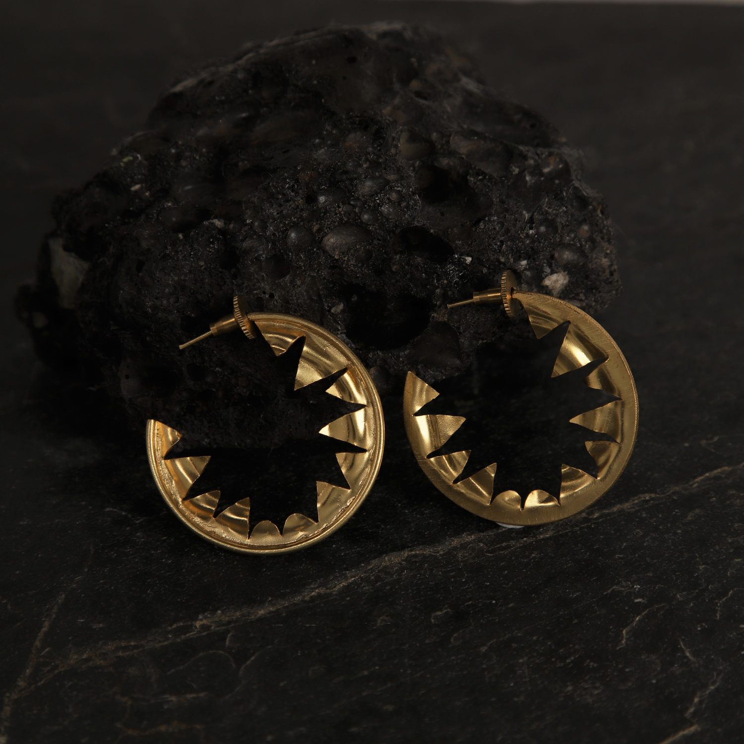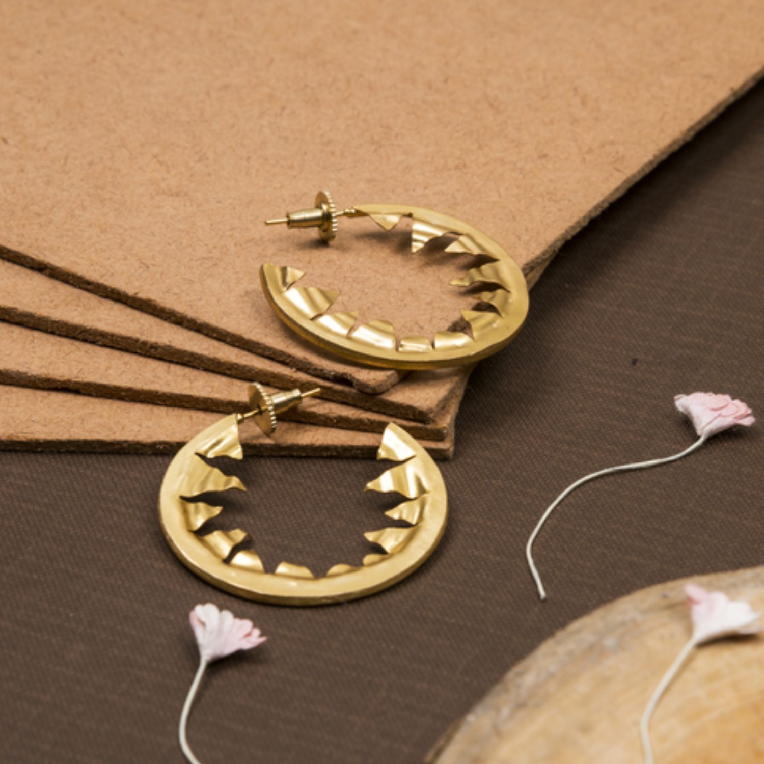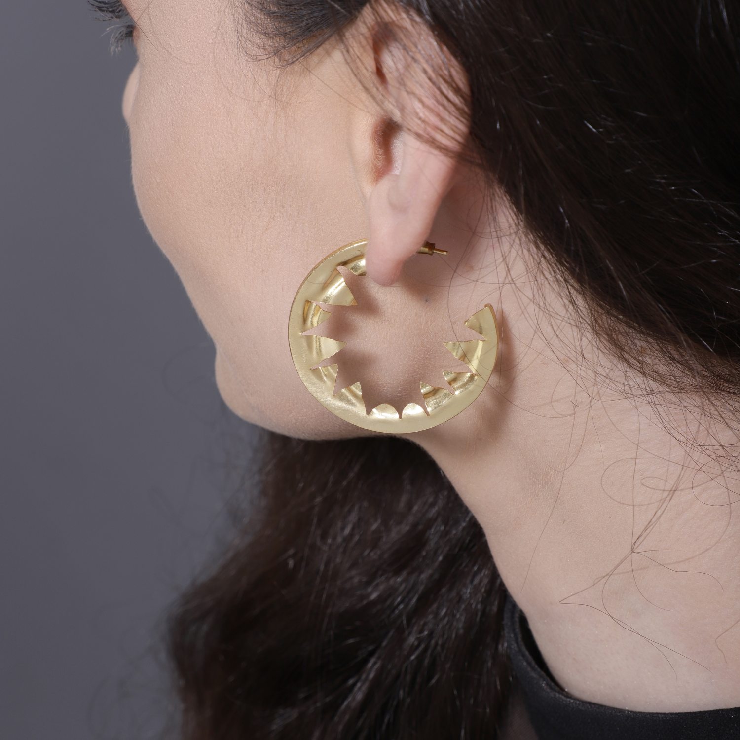 Elevate your style with the chic and contemporary appeal of triangle hoops. These earrings feature a unique design with triangular cut-outs, blending modern aesthetics with timeless elegance. The luxurious gold plating adds a touch of opulence, making these hoops a statement accessory for any fashion forward occasion.