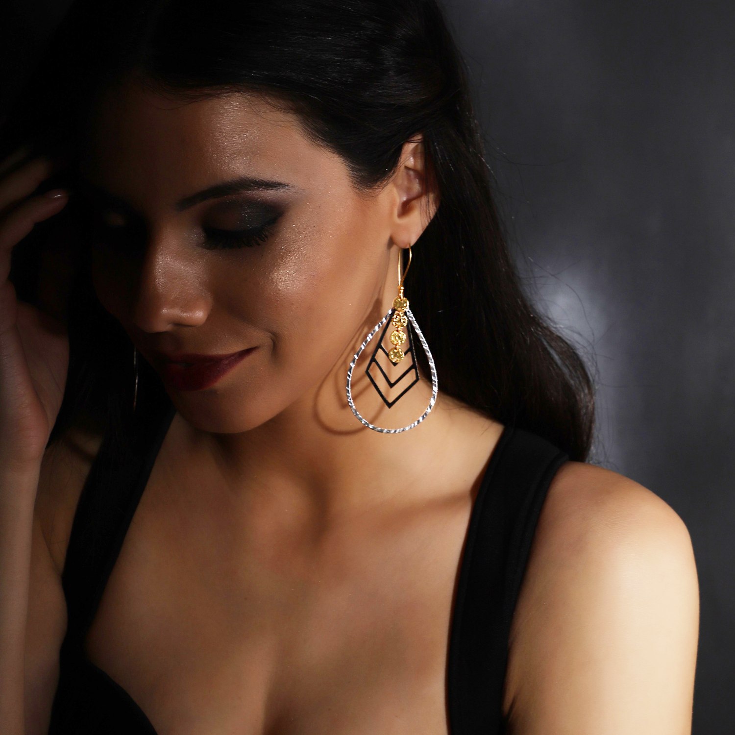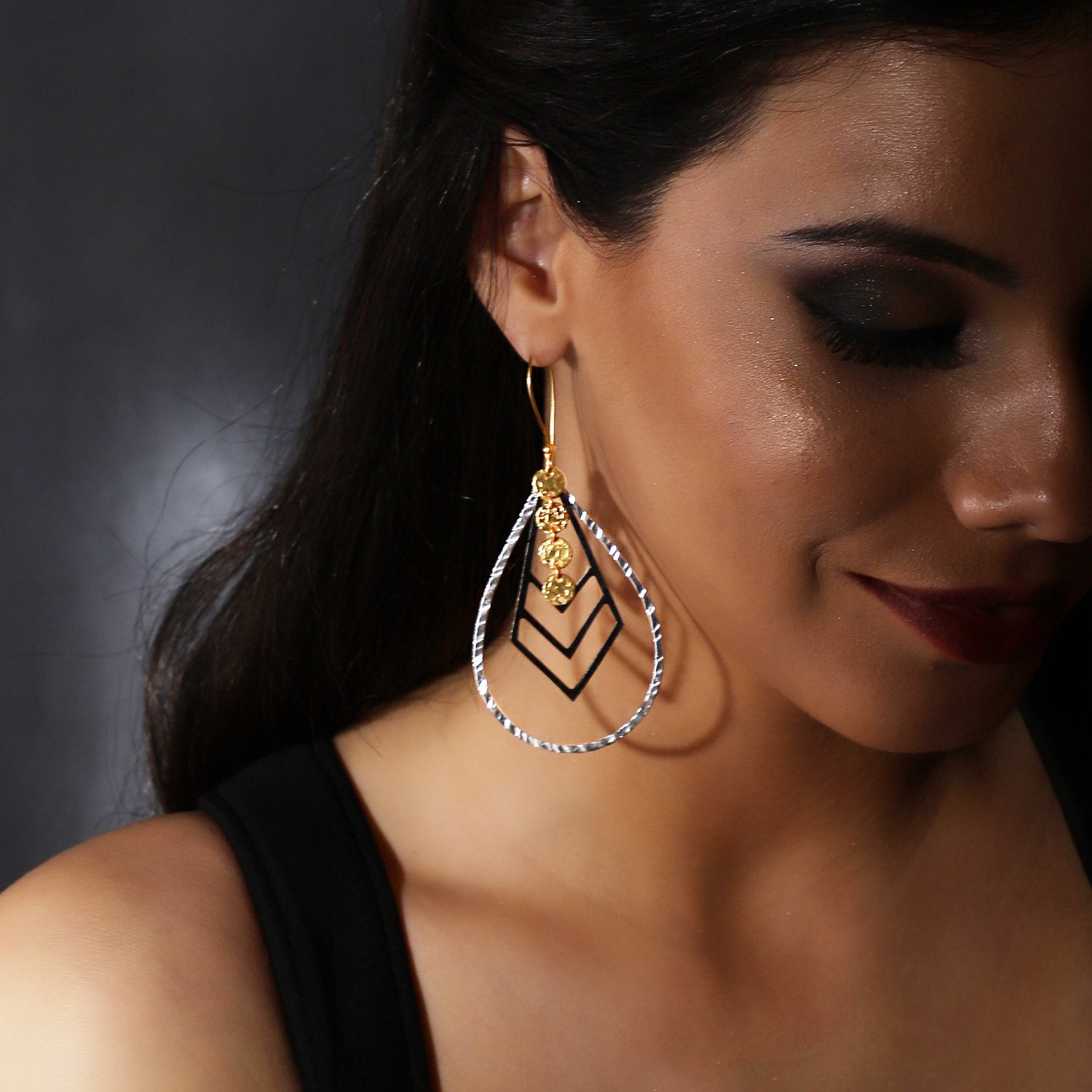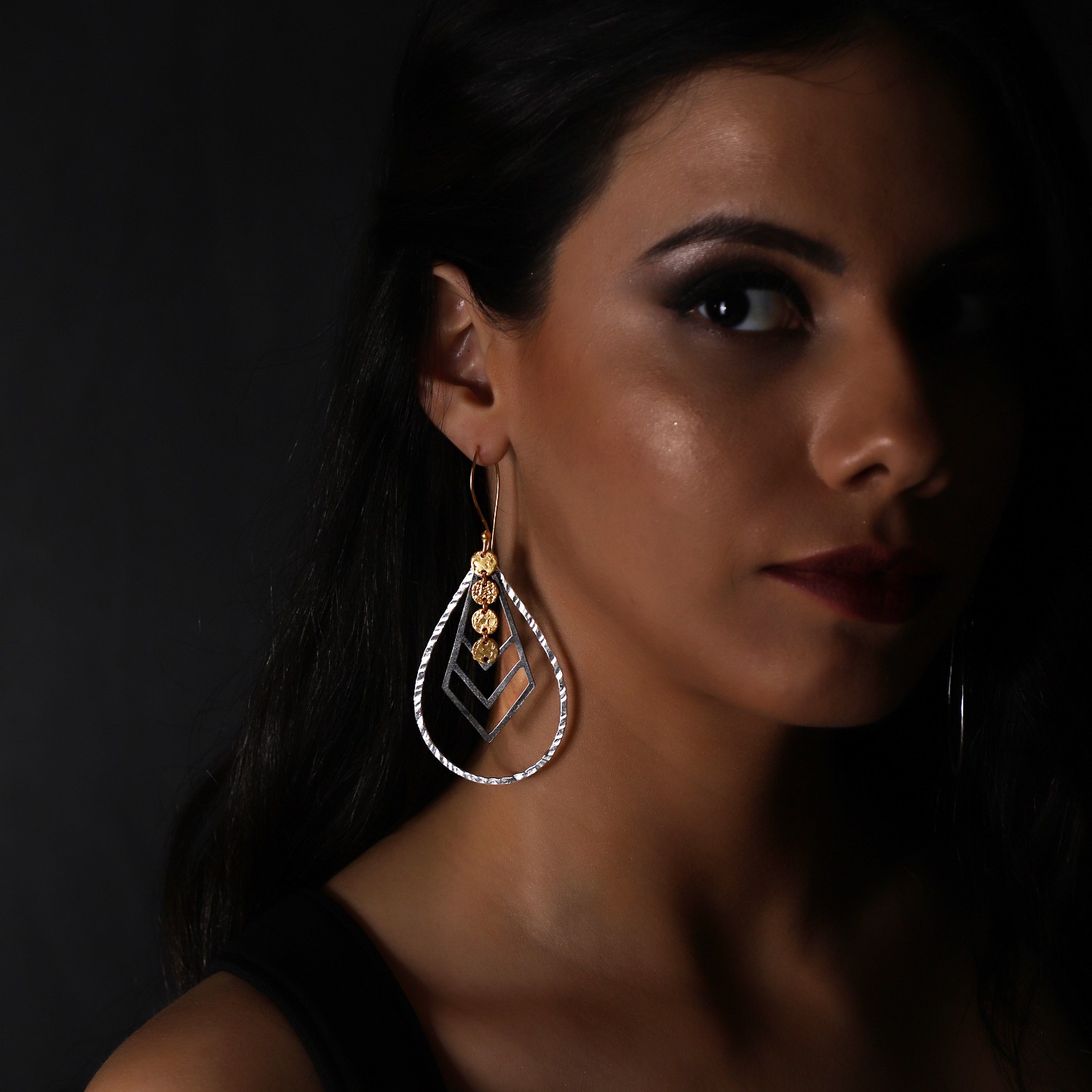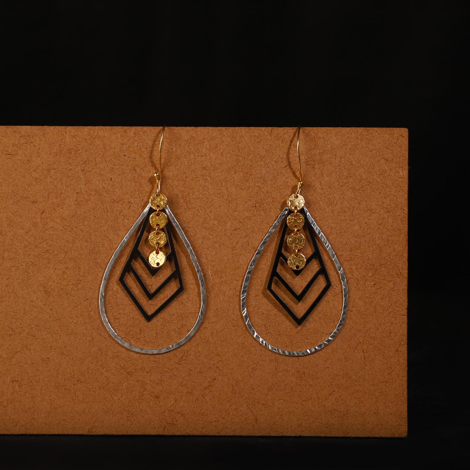 With these teardrop loops, embrace a harmonious fusion of elegance. The exquisitely crafted earrings include teardrop designs that combine silver and gold plating in a stylish way. These striking and adaptable loops will help you up your style game. They're great for making a statement and giving any outfit a refined touch.