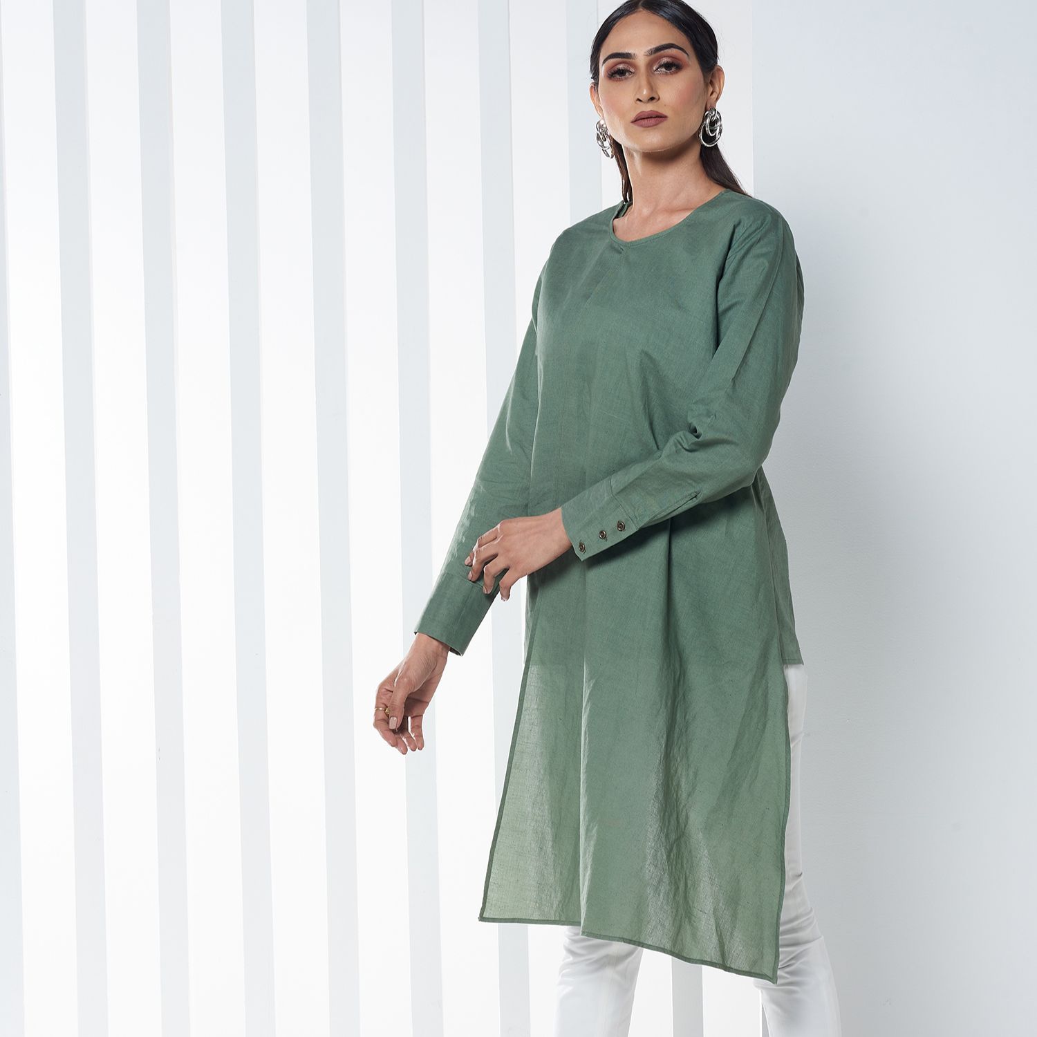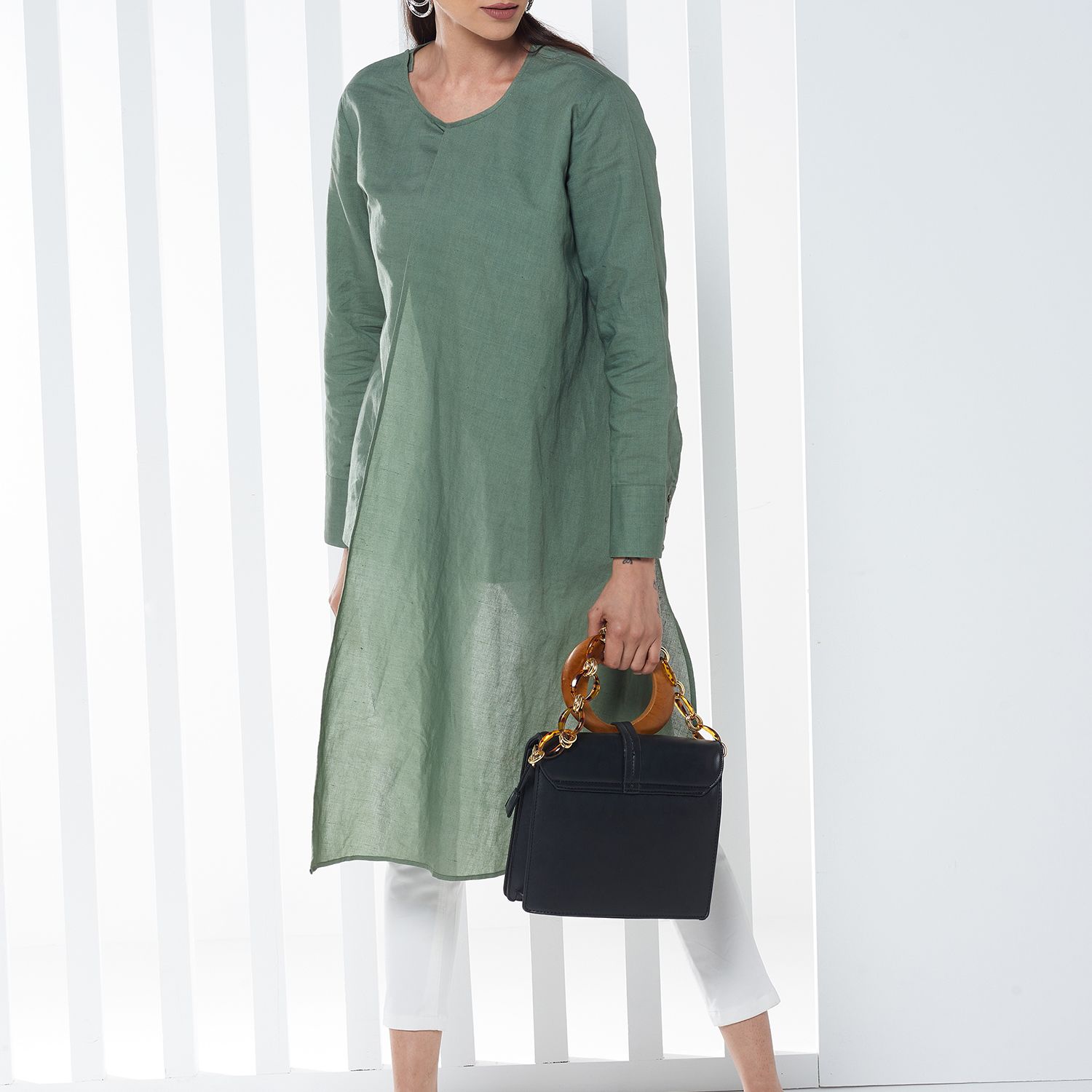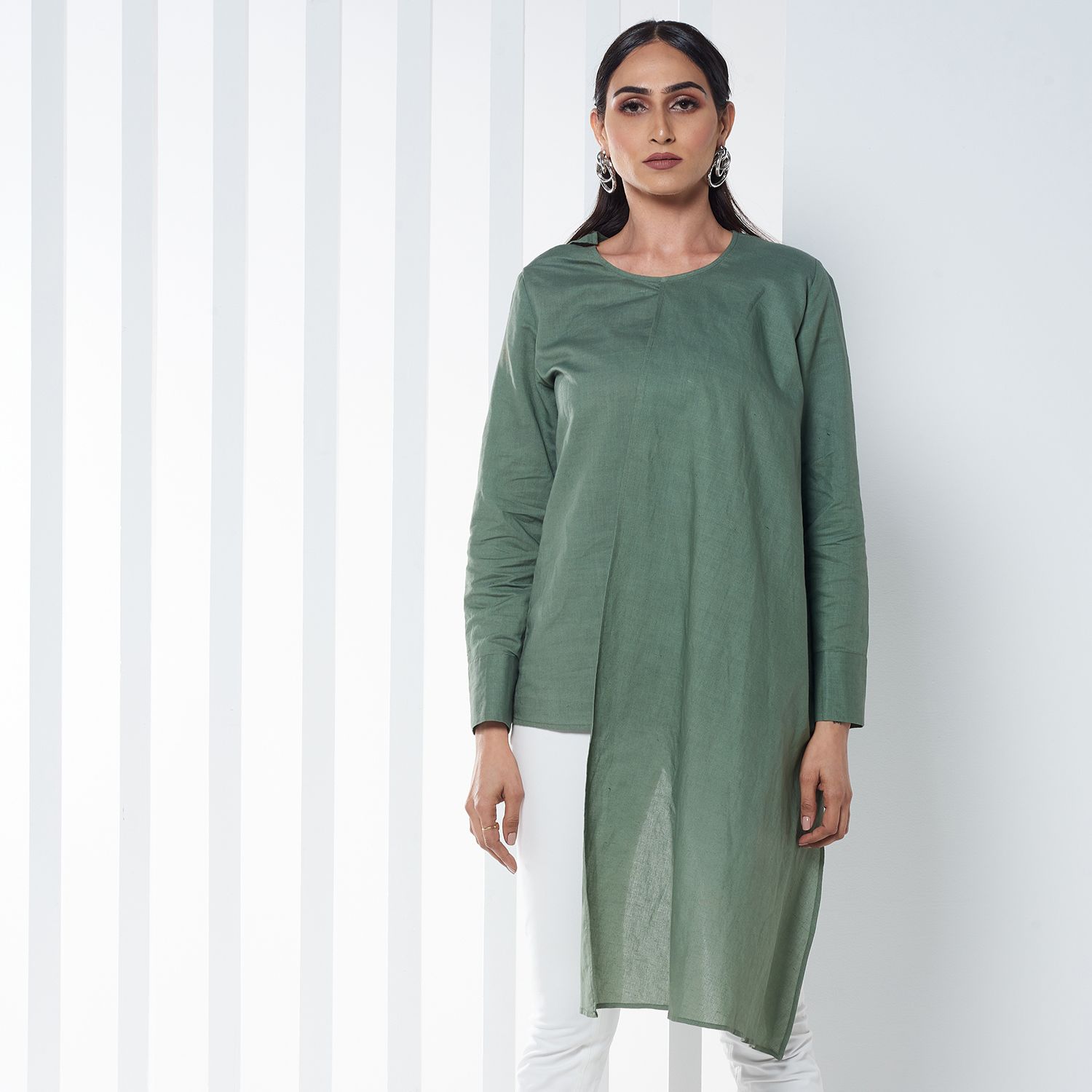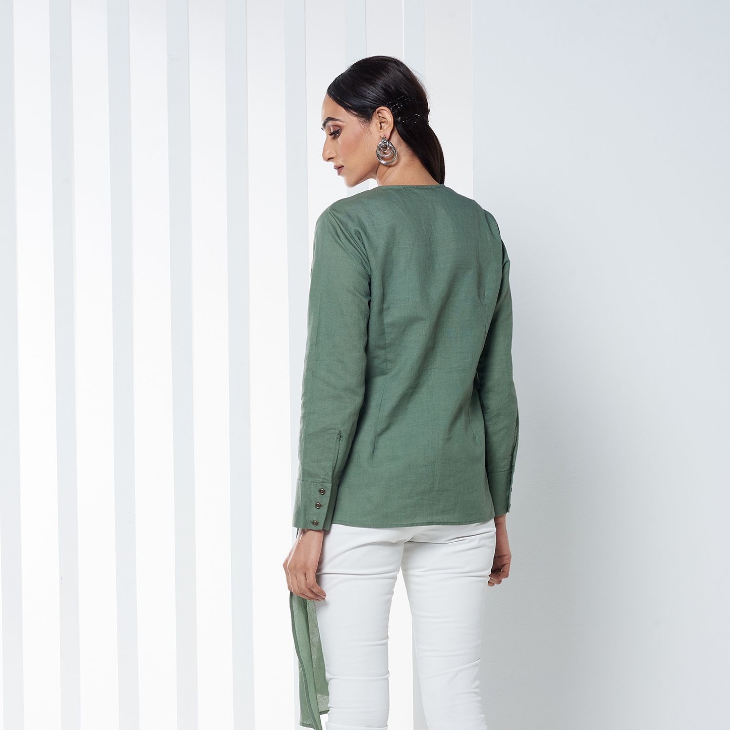 This top features a relaxed and flowy silhouette, providing both comfort and elegance. Crafted from a blend of cotton and linen, it offers a lightweight and breathable feel, perfect for warm weather. The refreshing green color adds a touch of nature-inspired charm to your ensemble, making it suitable for various occasions.