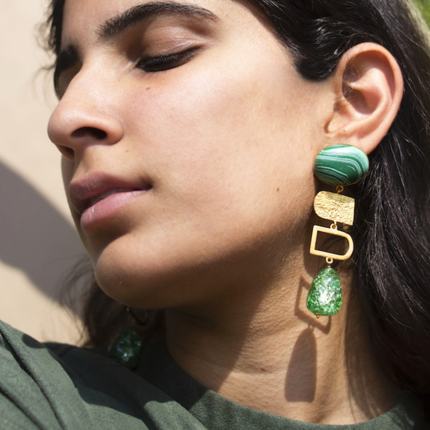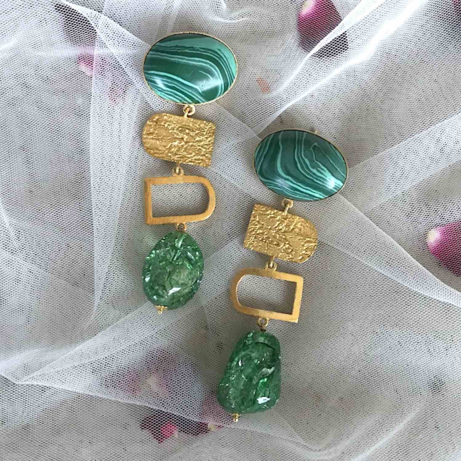 This gorgeous hawaii earrings unleash lush island vibes. Crafted from brass material with gold and lush green accents make these earrings sophisticated yet totally exclusive. Style it with flowy and lightweight dress for a dressy day soiree.