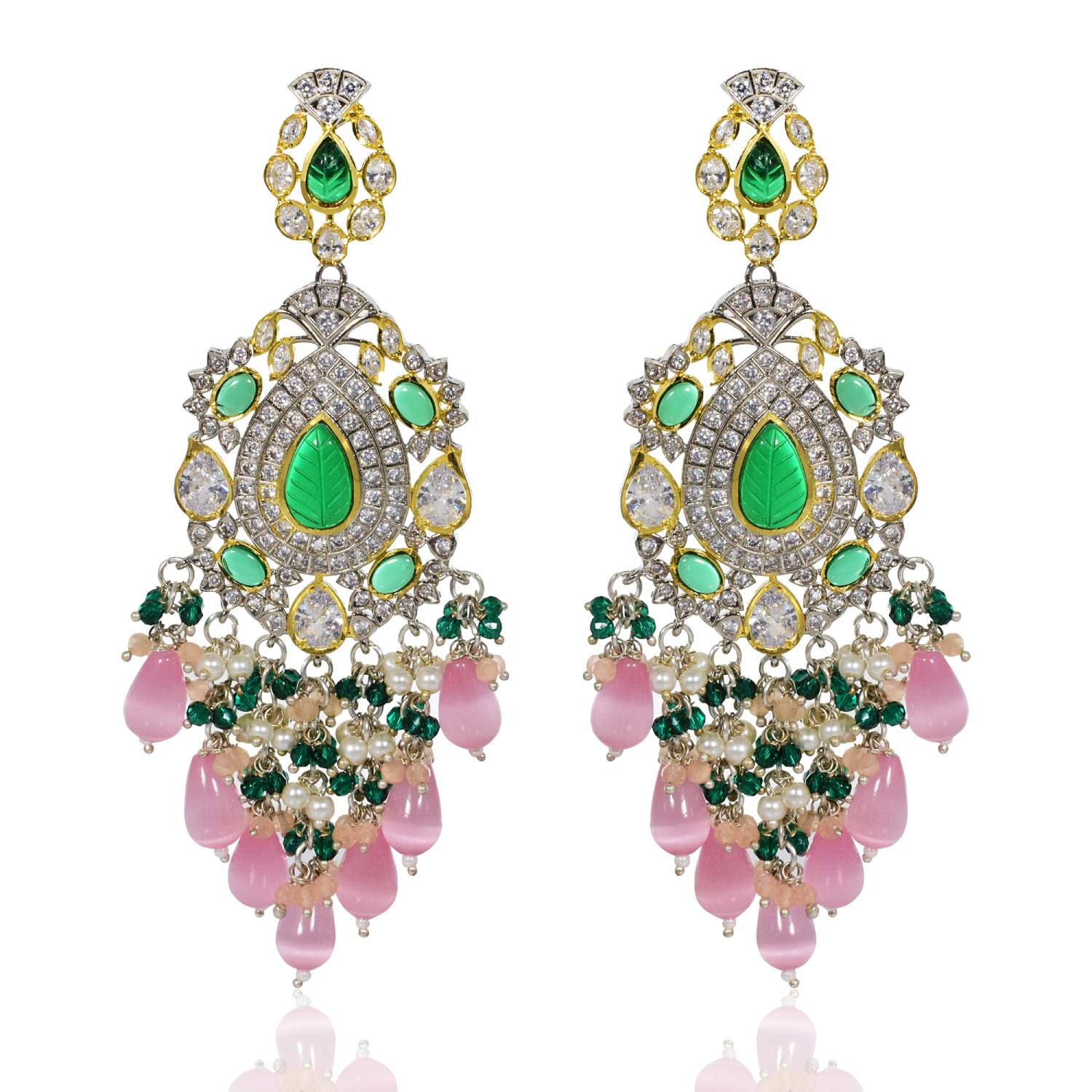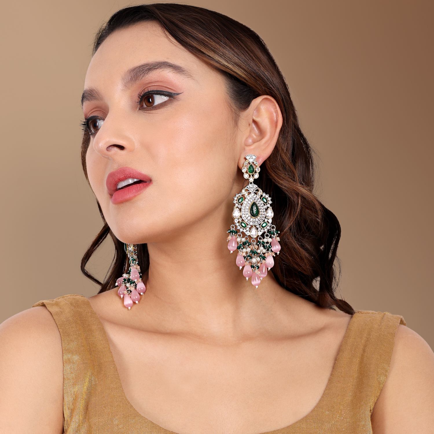 ₹ 9,550 (10% off)Radiating sheer beauty, Tizora's stunning earrings with pink drops and green colorstones, adorned with immaculately studded faux diamonds on a white rhodium mixed metal base, are a timeless piece you won't regret adding to your collection.