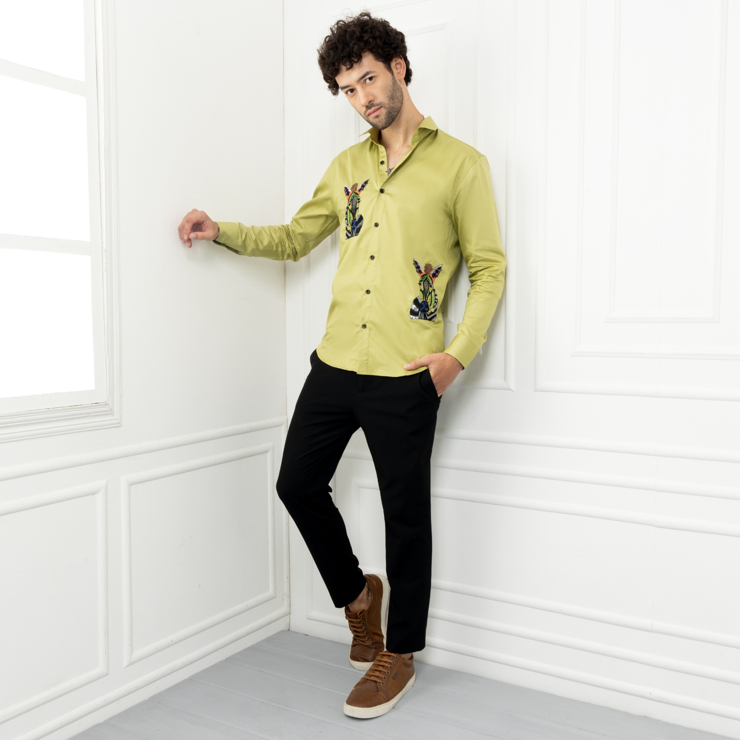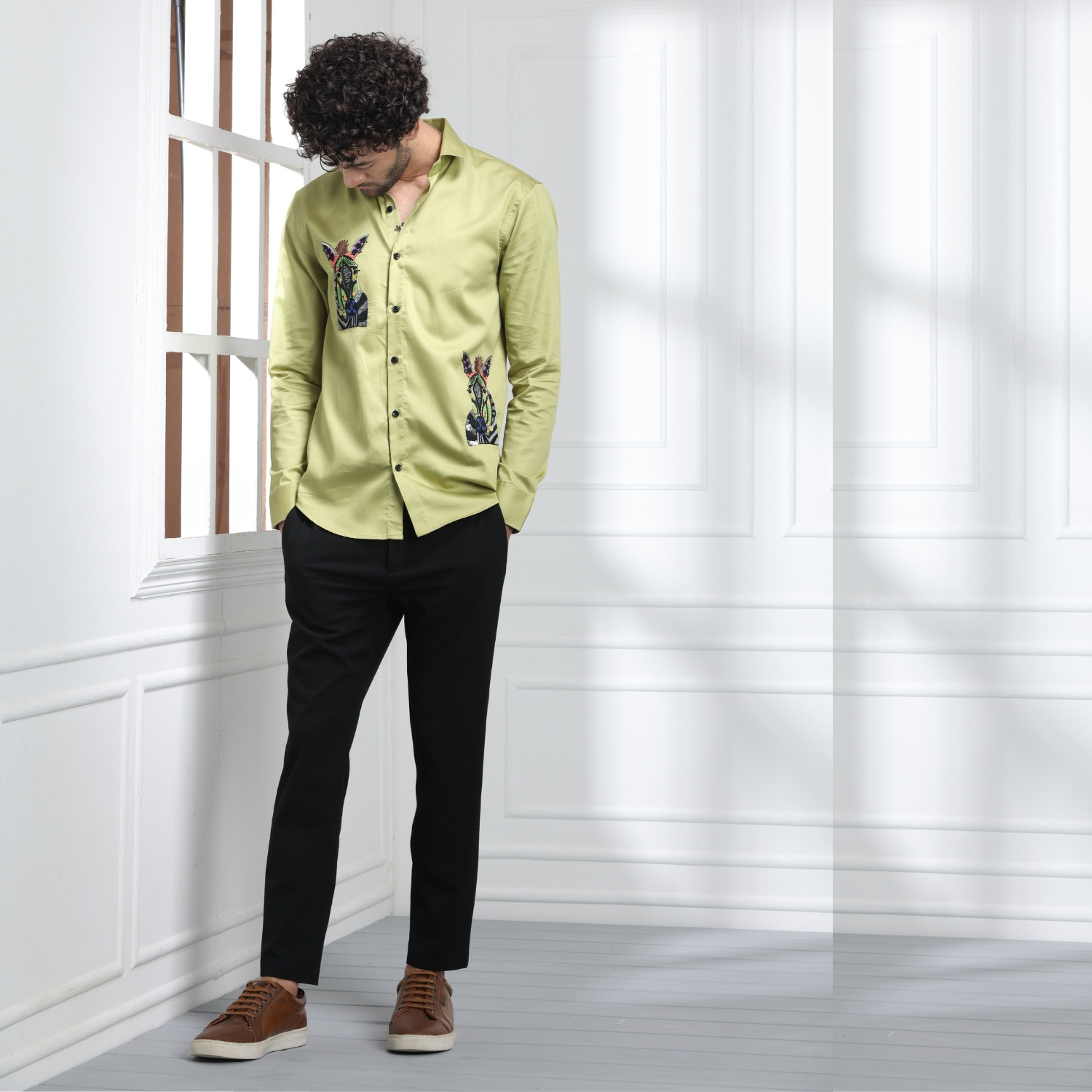 ₹ 8,000 (5% off)Experience the epitome of luxury and style with this green men's zebra embroidered shirt. This shirt is a true masterpiece, hand-embroidered with a striking zebra design near the chest on the right and at the bottom on the left side. It is made with 100% premium giza cotton and offers unparalleled comfort and quality. Elevate your wardrobe with this exquisite and meticulously crafted shirt, embracing sophistication and charm in every wear.