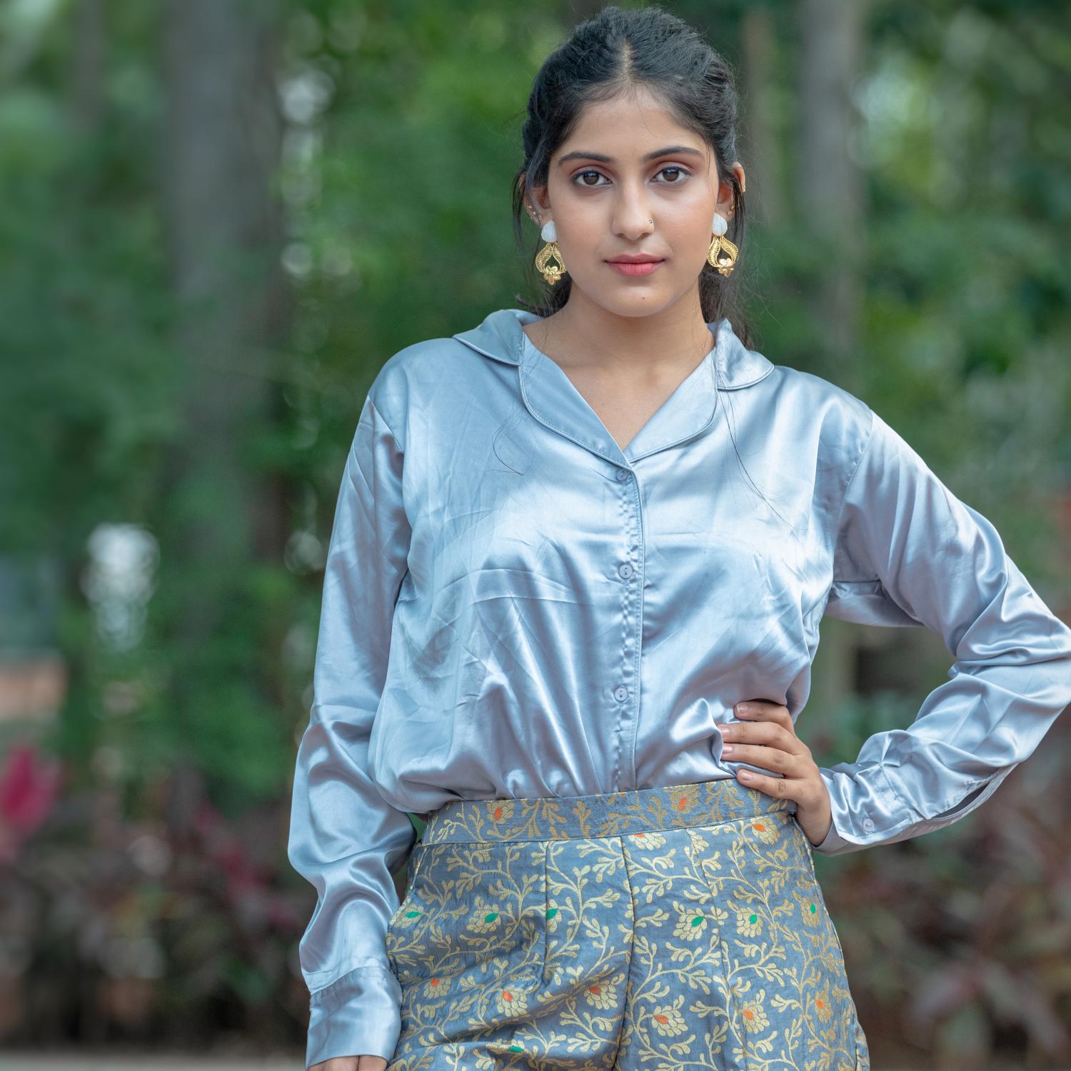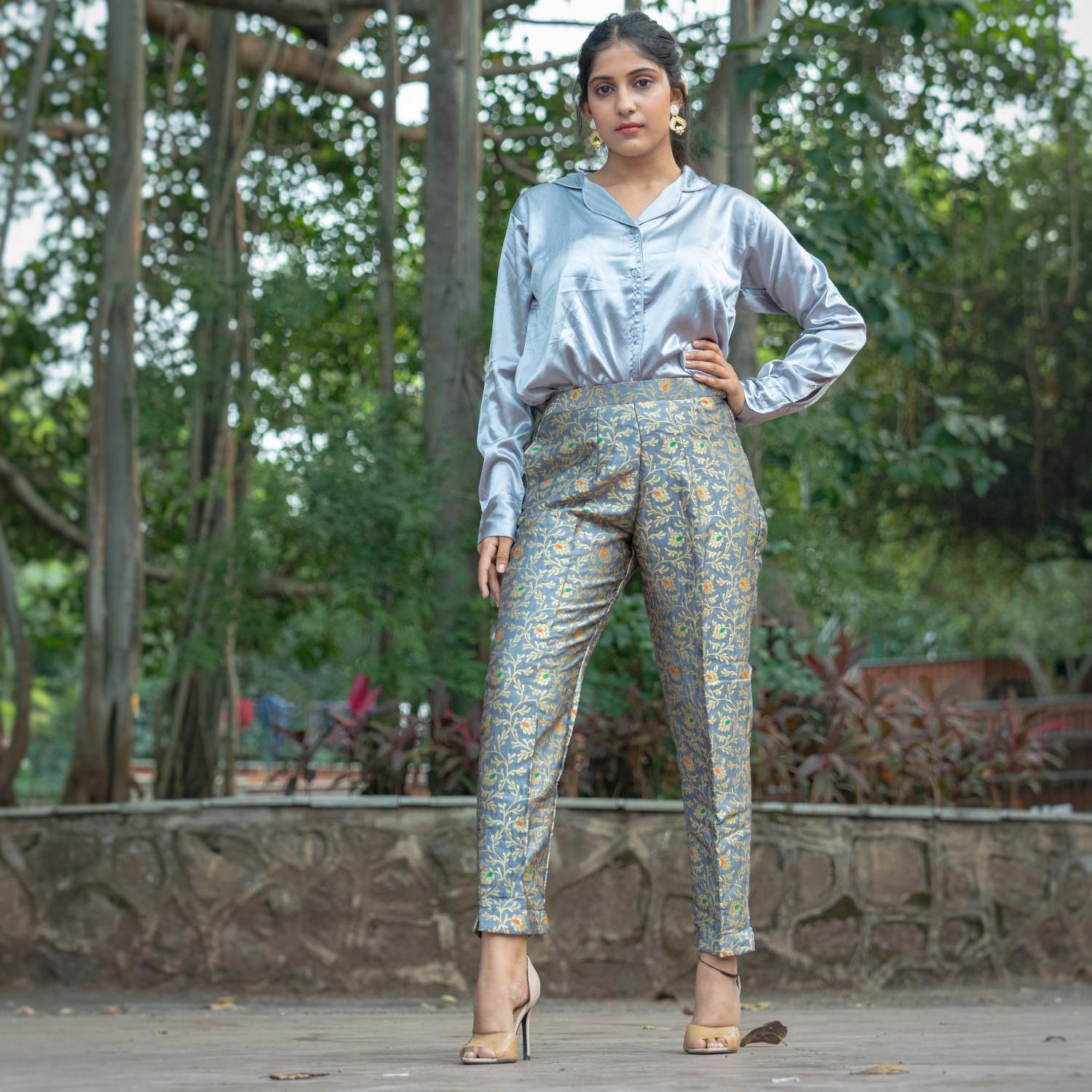 Revitalize your wardrobe with brocade grey floral print straight fit pants that effortlessly blend style and comfort. Elevate your fashion quotient with these stylish straight fit pants in brocade, adding a touch of sophistication to your ensemble. Embrace versatility and trendiness with these chic bottoms, perfect for various occasions.