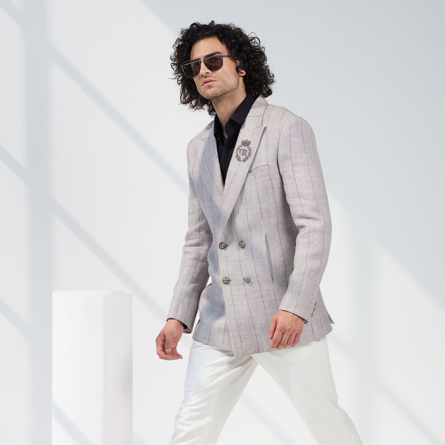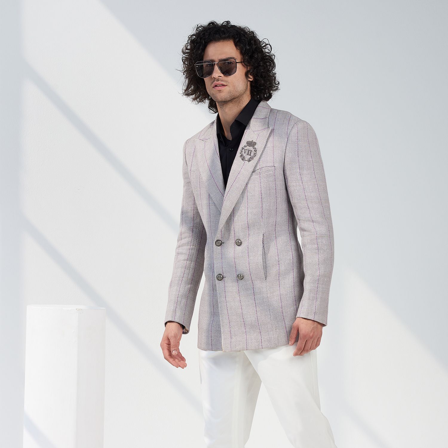 Crafted in a luxe woolen blend, this jacket offers warmth and comfort. The classic grey color adds a touch of elegance and versatility to your outfit. With its check pattern and crest detailing, this jacket exudes a refined and distinguished look.