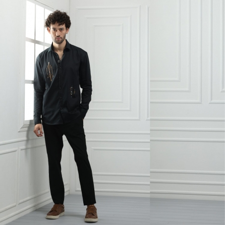 Introducing our grey printed shirt in multicolor cotton sateen! Made with the finest quality cotton, this shirt is breathable, light, and comfortable to wear all day long. With its vibrant, multi-colored print and palm tree motif, this shirt is perfect for those who love to stand out from the crowd.