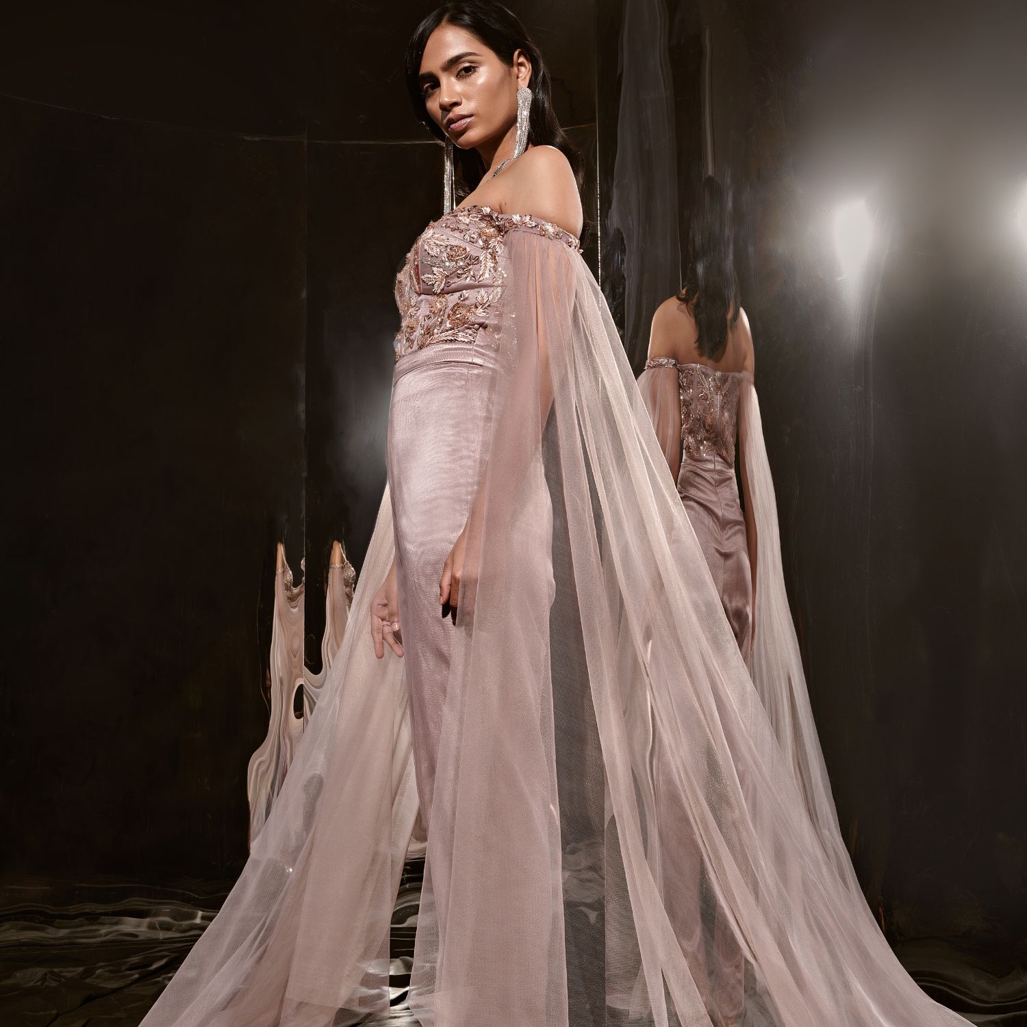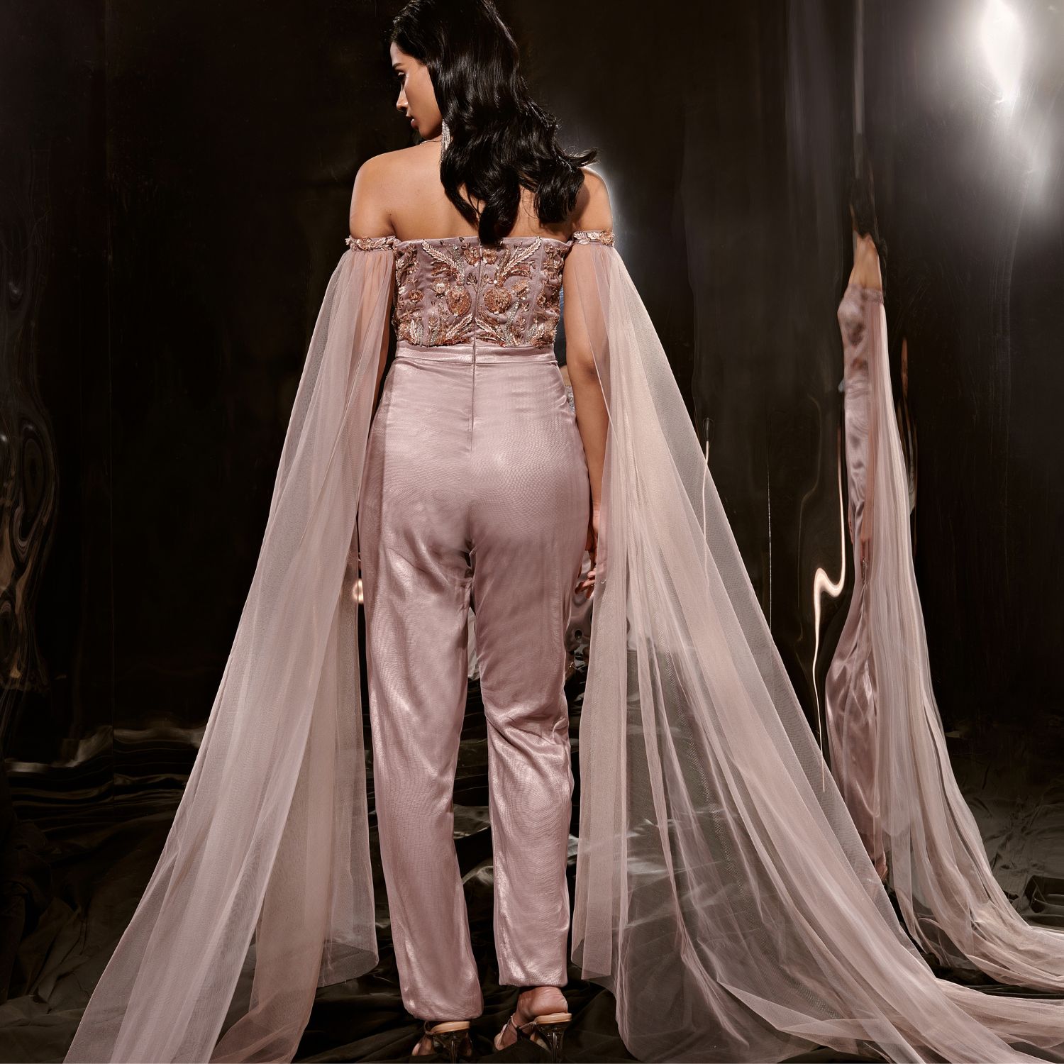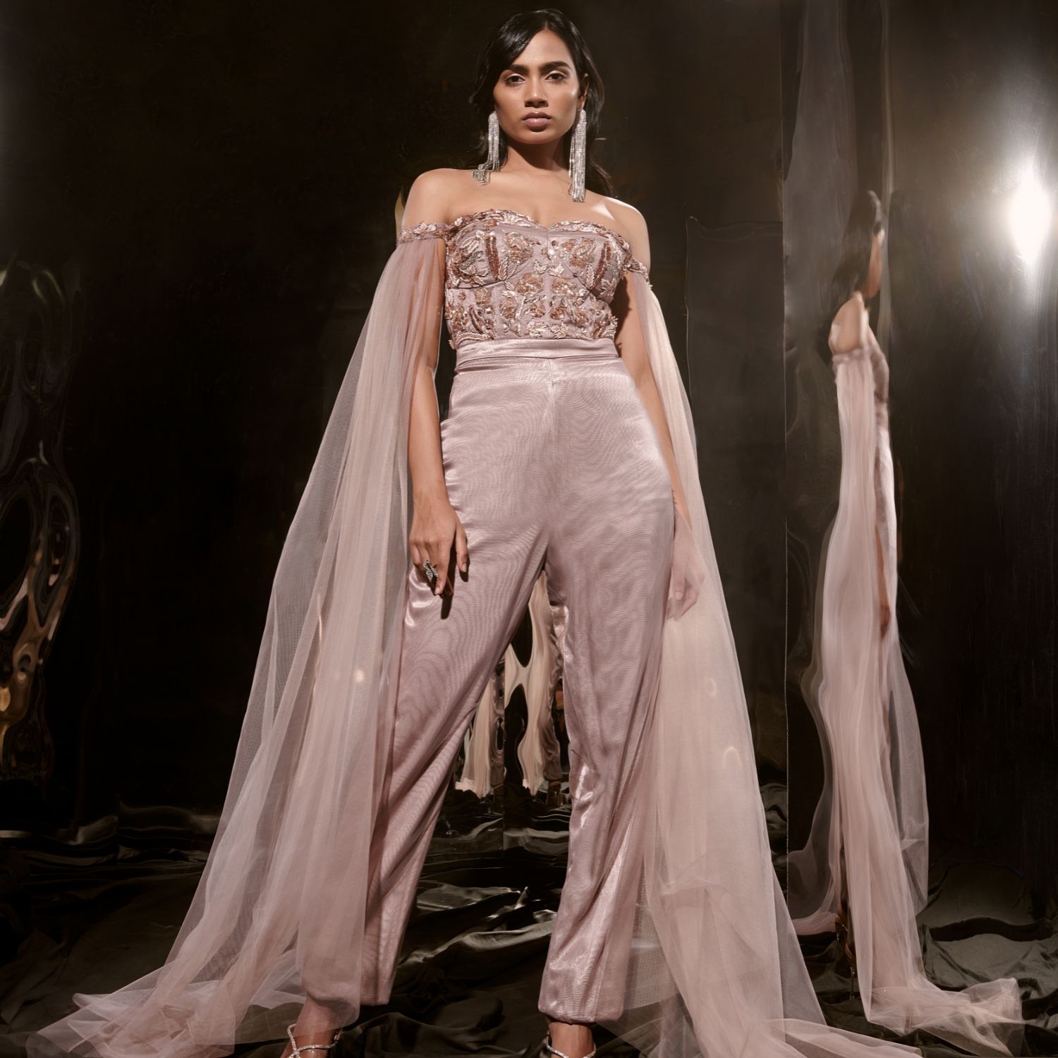 ₹ 32,000 (10% off)Unveiling this captivating brown embroidered jumpsuit, flawlessly crafted from a combination of net and mashroo fabric. This unique piece showcases intricate embroidery, while the addition of a net drape enhances its charm. Embrace contemporary elegance with this jumpsuit, designed to make a stylish statement for any special occasion.