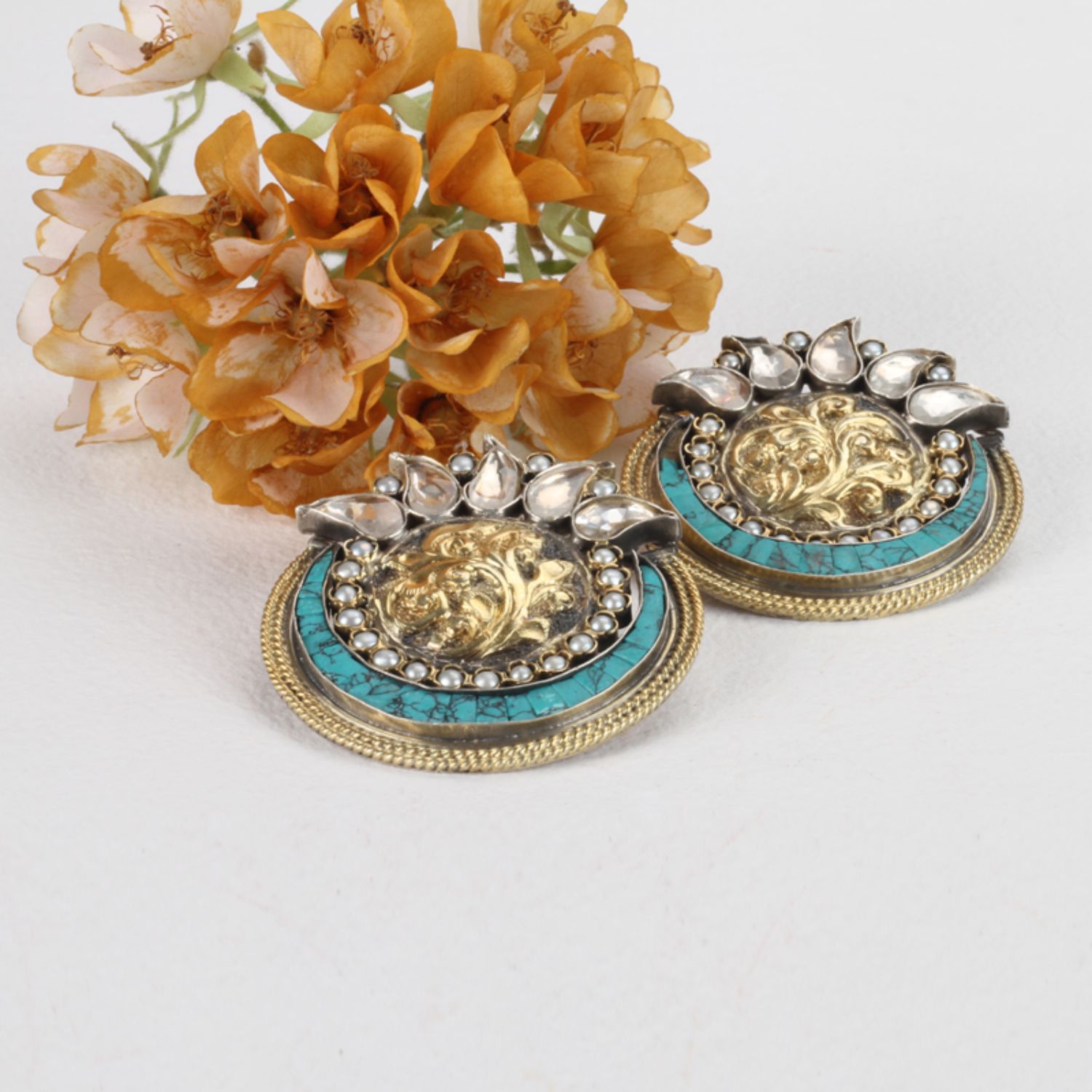 Enhance your jewelry collection with 24kt gold plated handmade earrings. Meticulously crafted from silver, these earrings radiate opulent sheen. Elevate your style with this exquisite pair with a testament to luxury and craftsmanship.