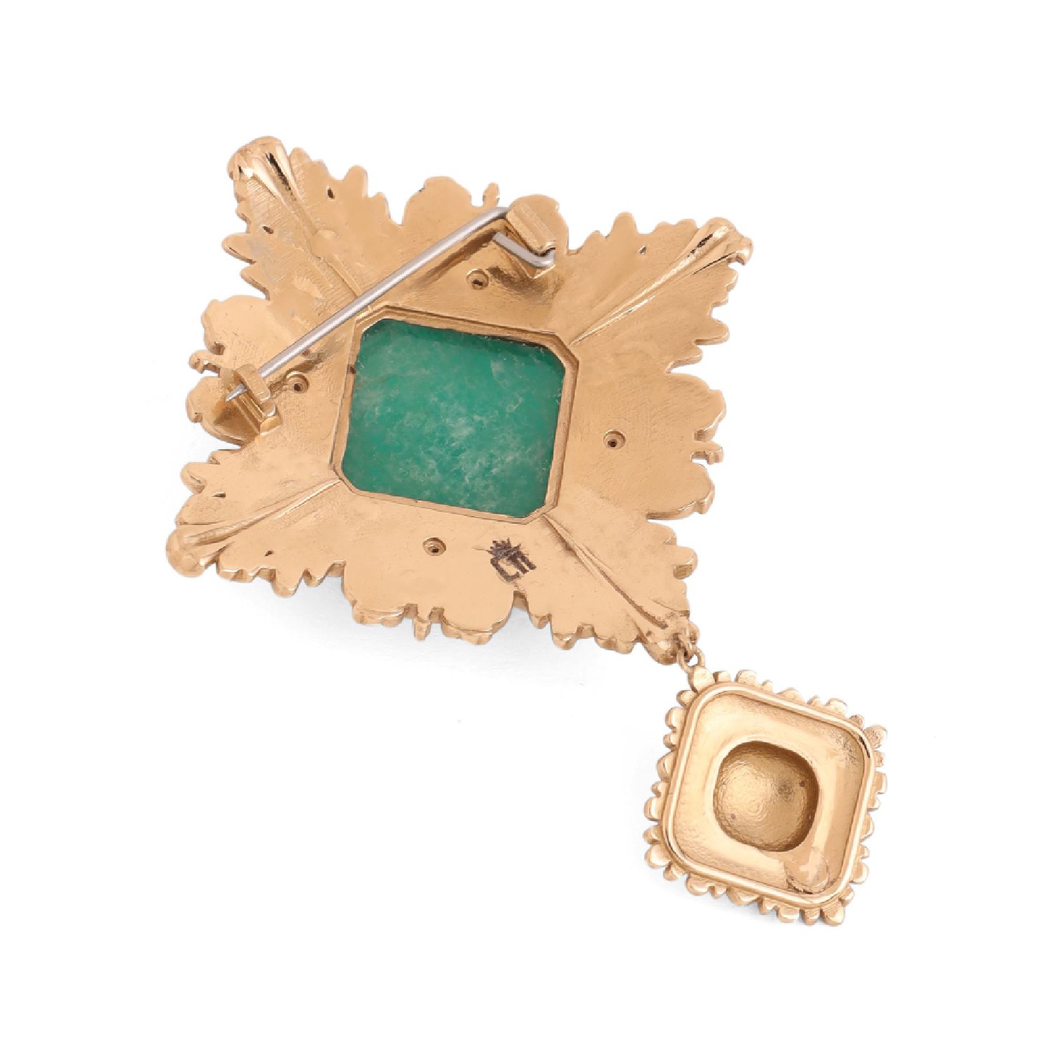 ₹ 5,500 (5% off)This sleek accessory features a singular green glass stone and a minimalist design with a gold finish. This brooch adds a touch of understated sophistication to your outfit. Pair it with a black blazer and black shoes for a dressy evening glam.