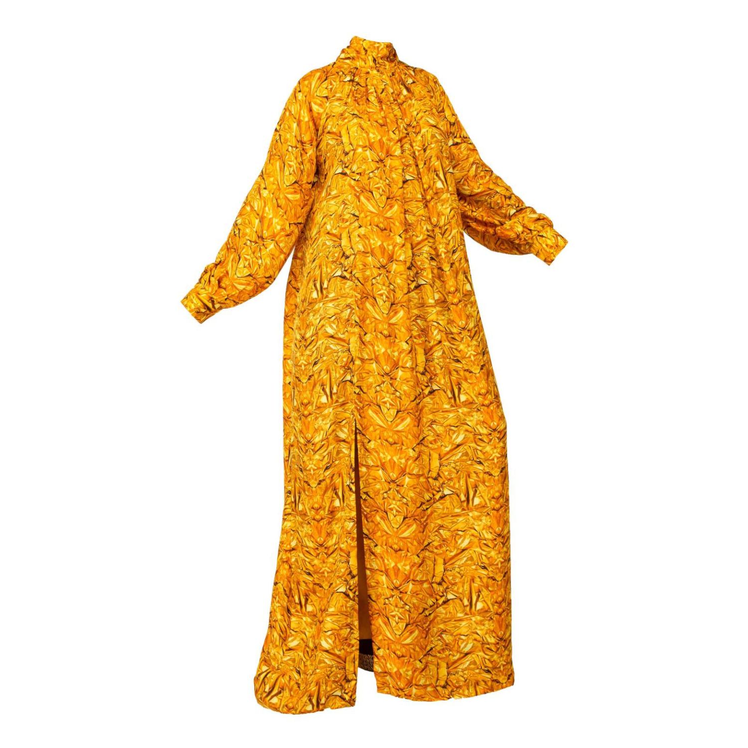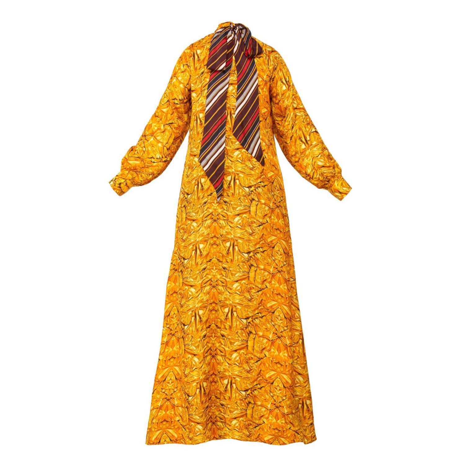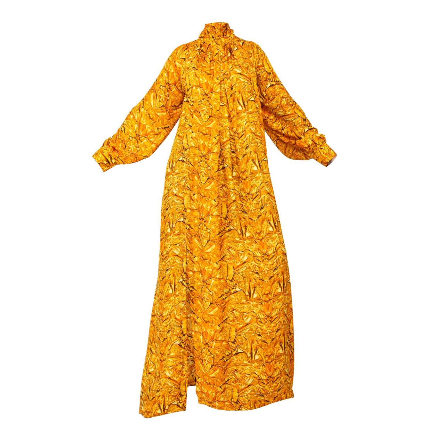 It's time to modernize your festive wear with this printed orange high-neck kaftan gown cut in pure viscose fabric and fashioned with a side slit and a back bow.