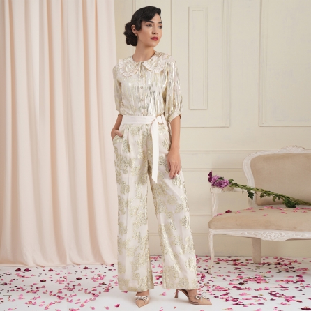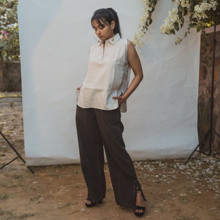 ₹ 10,995 (5% off)This hot pink set features a half-cup ruffled bustier and a high-waisted front zip straight pants with pockets for convenience. Crafted from crepe fabric, the set offers comfort and a sleek look. Style it with delicate accessories and heels for a dressy evening soiree.