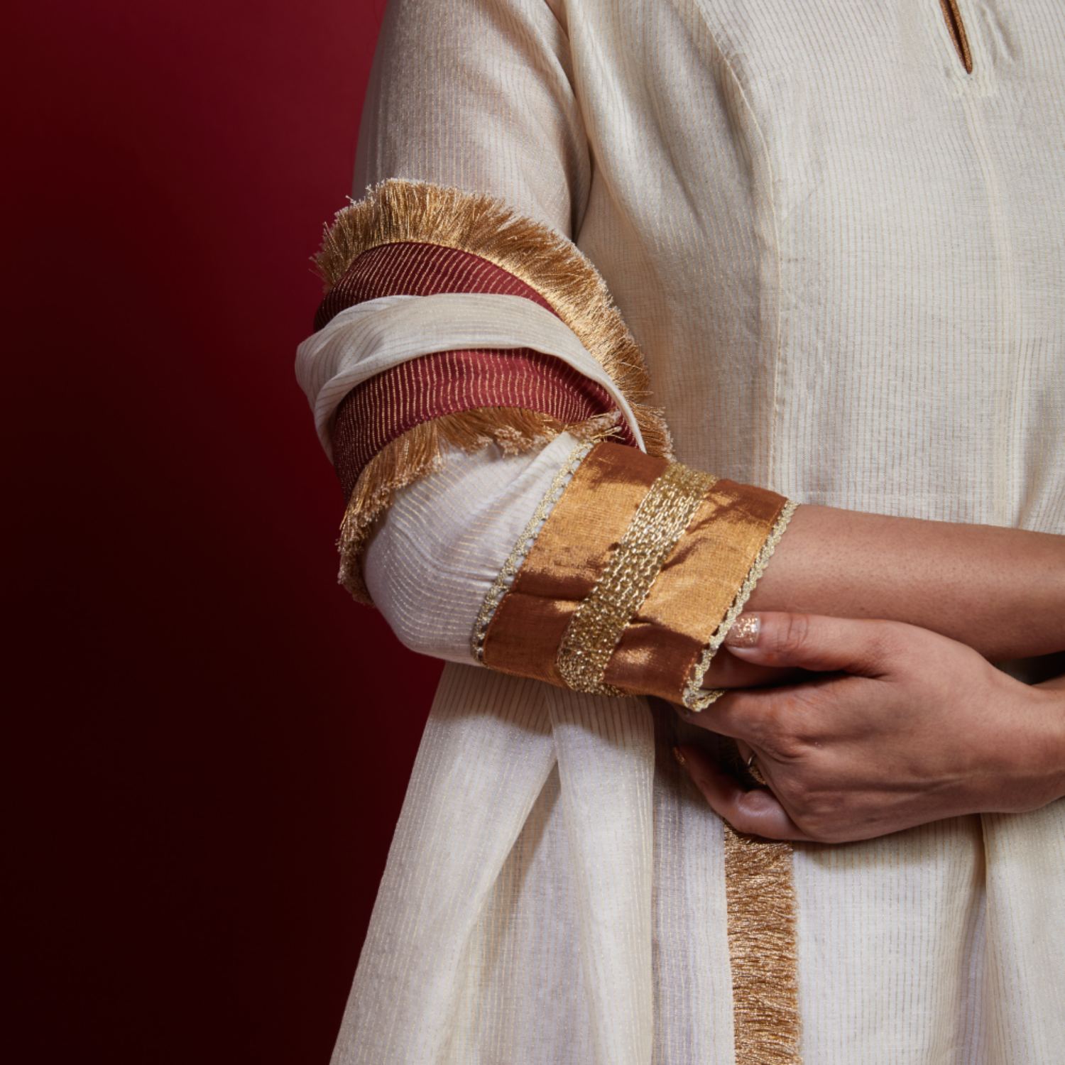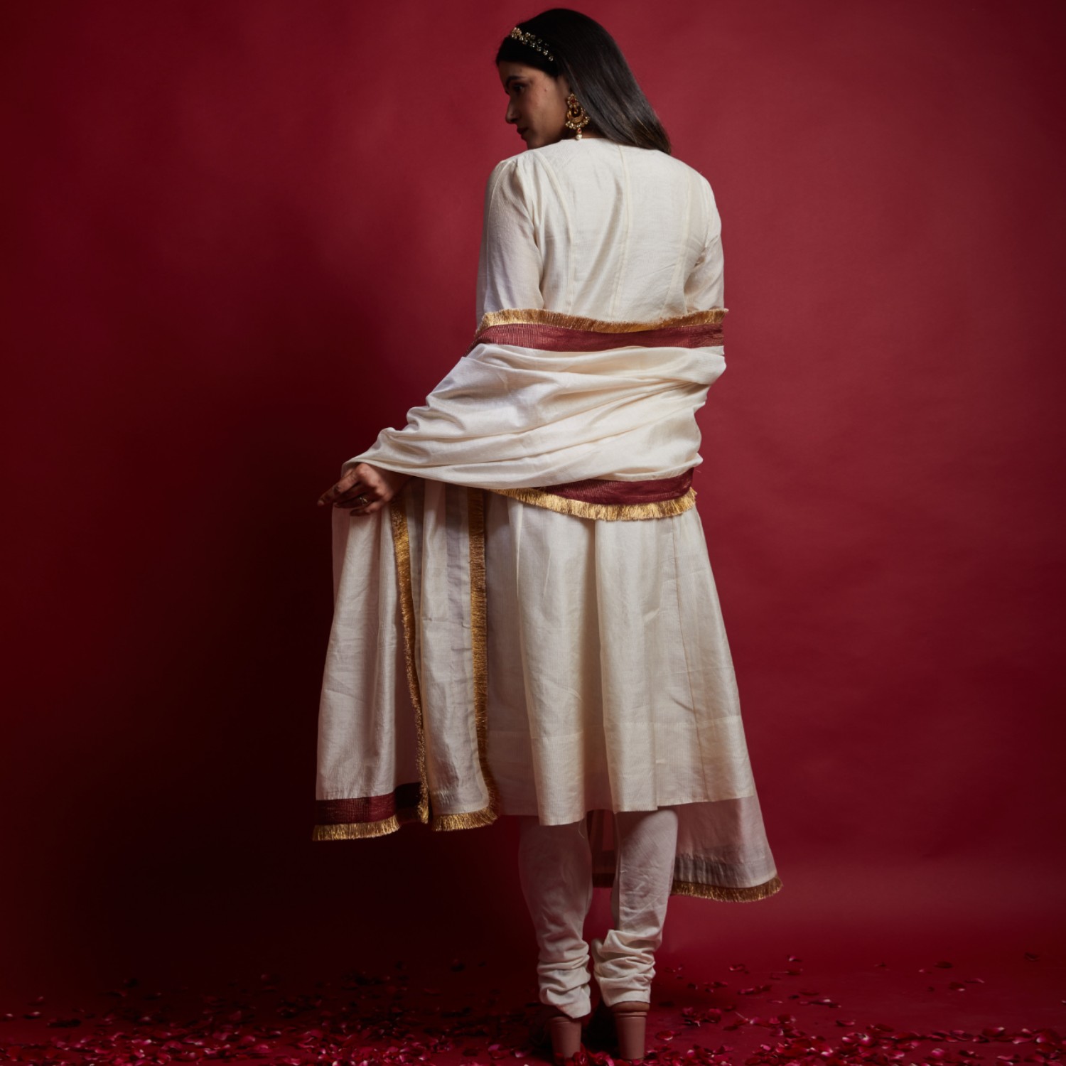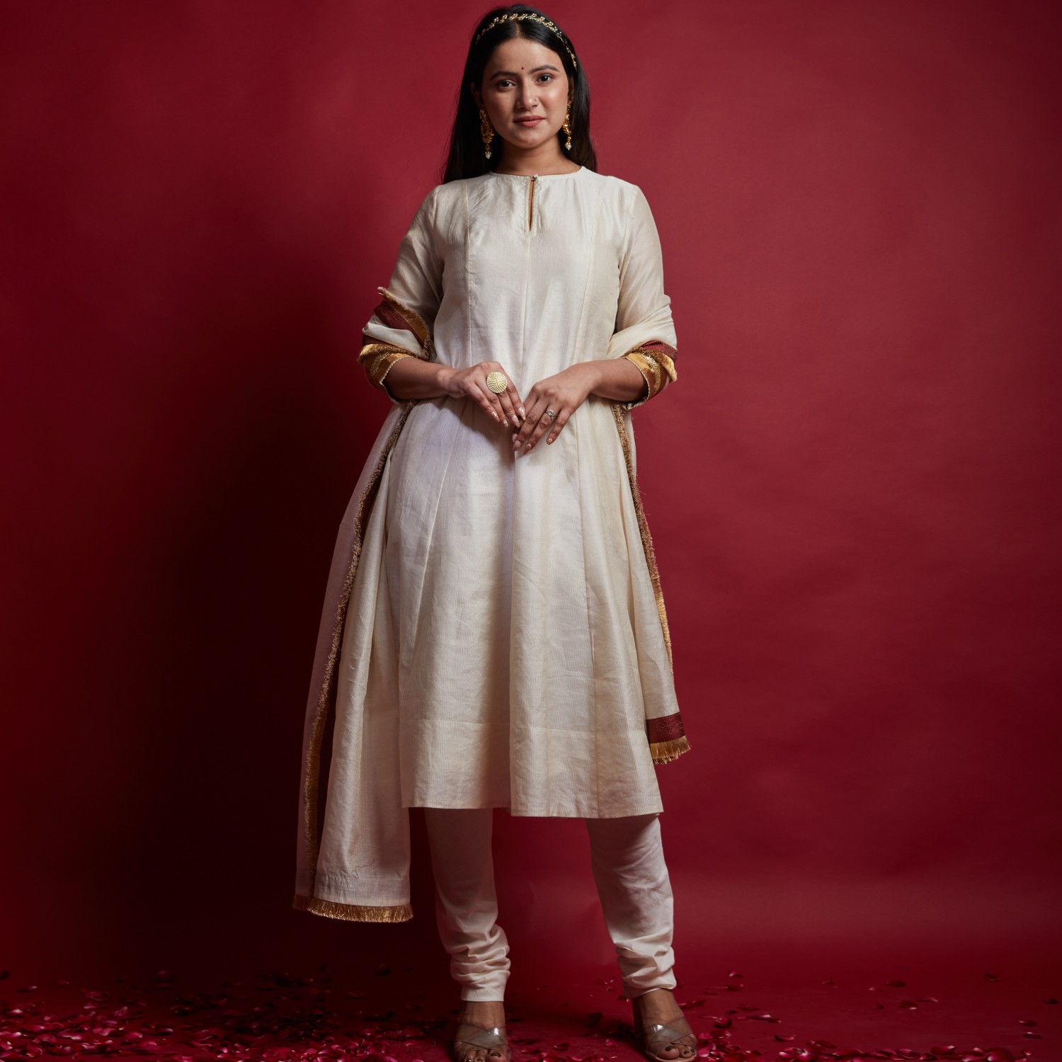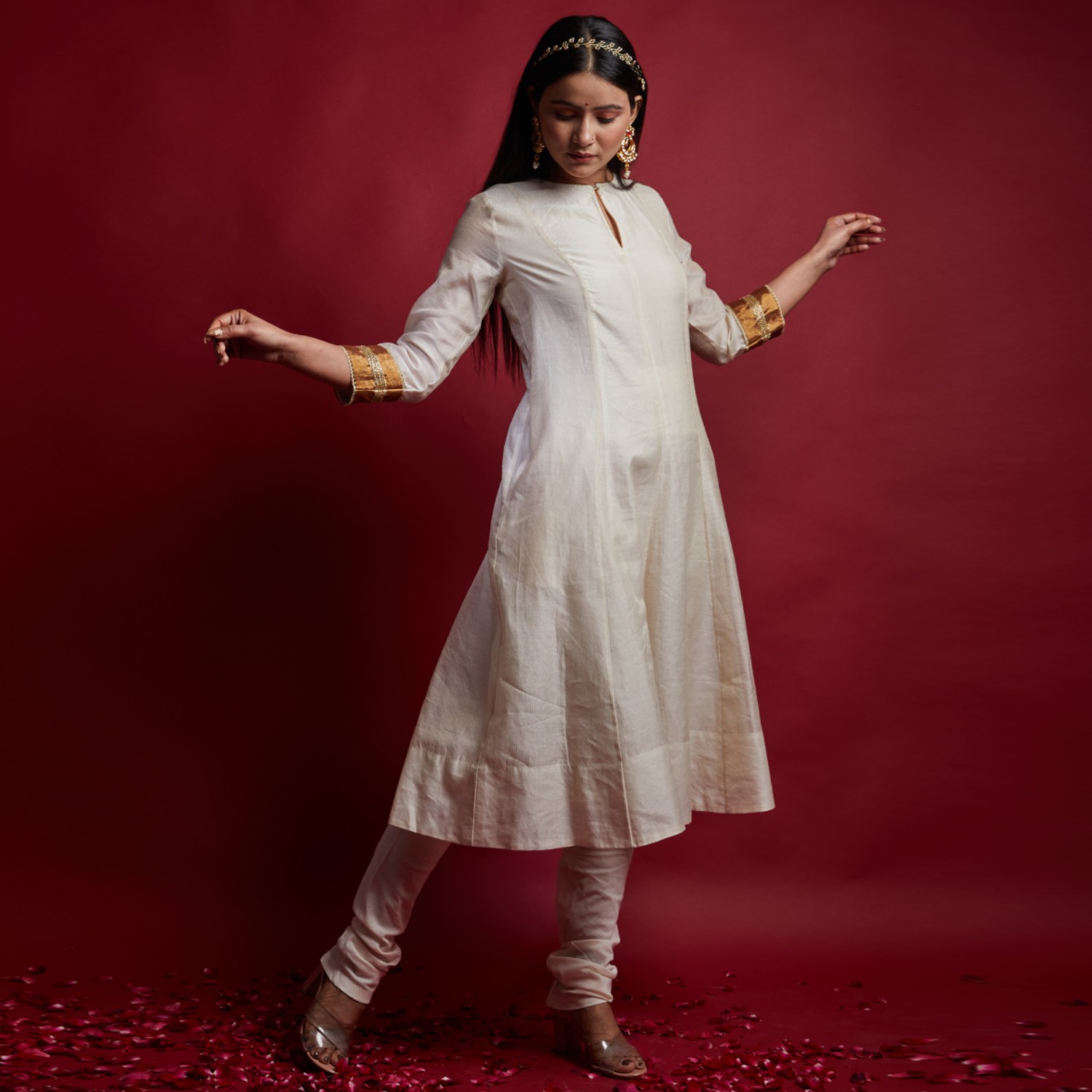 ₹ 11,999 (10% off)Presenting an ivory princess line anarkali kurta, embellished with cutdana embroidered lace, featuring a front slit opening fastened with a single button, paired with a churidar. The lined kurta gives off a flawless appearance that makes you stand out in the vivid throng of hues for any occasion.