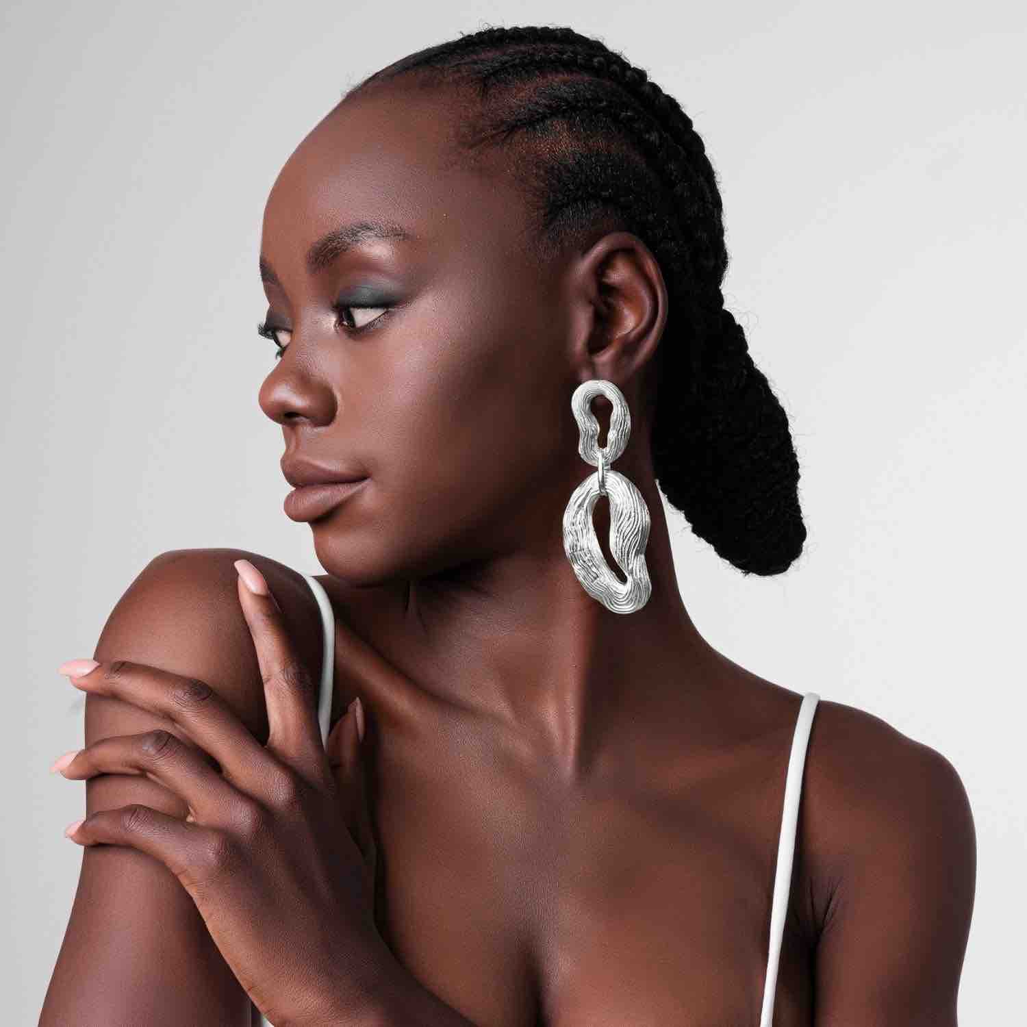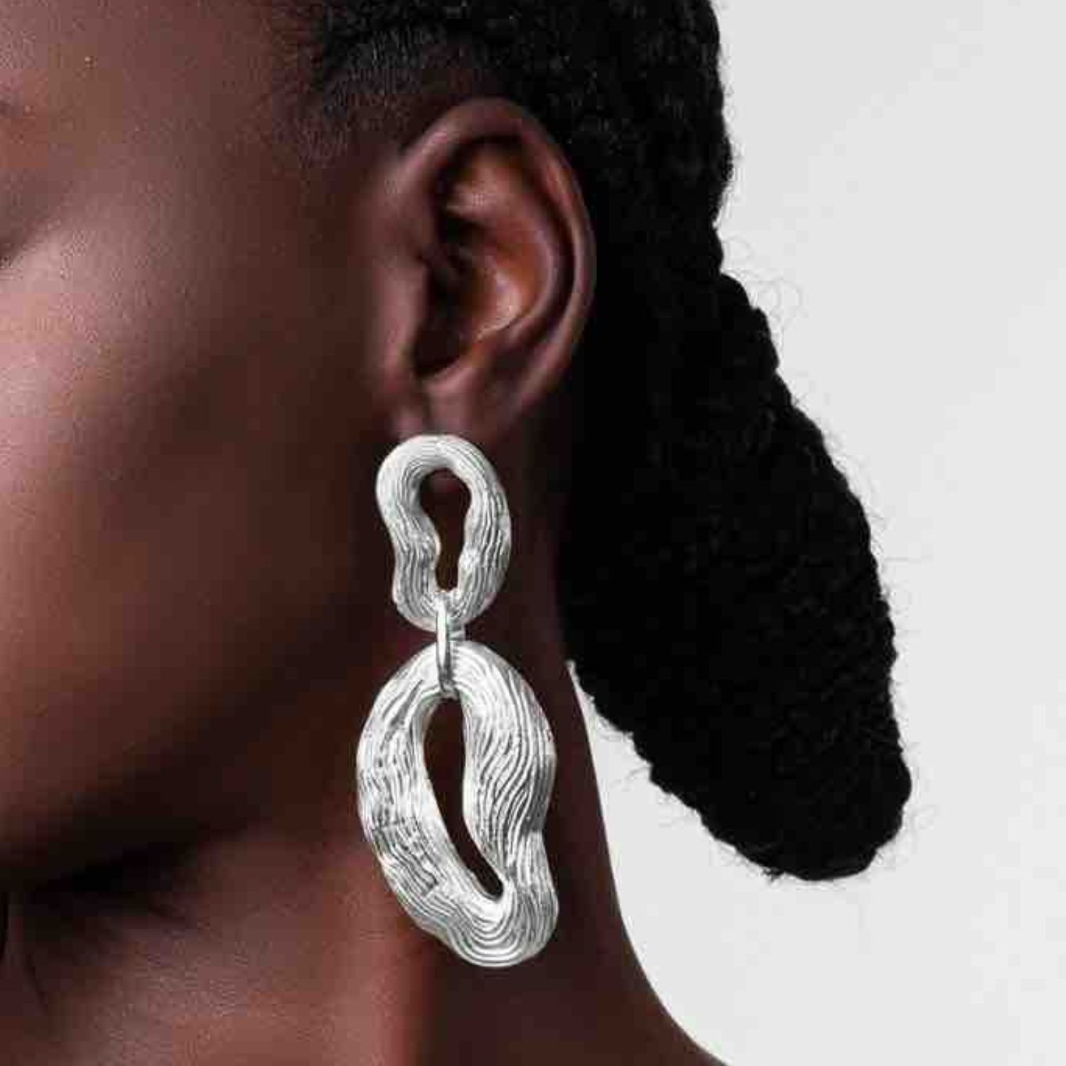 Embrace boldness with this maximal link earrings, inspired by the gnarly forms and textures of knotty pine trees. These earrings are a sensational addition to any outfit, exuding a captivating charm. The imperfect yet ornamented texture, enclosed in link forms, draws inspiration from the rustic knots and holes found on the bark of aged trees. Elevate your style with these unique and striking earrings that celebrate the beauty of nature.