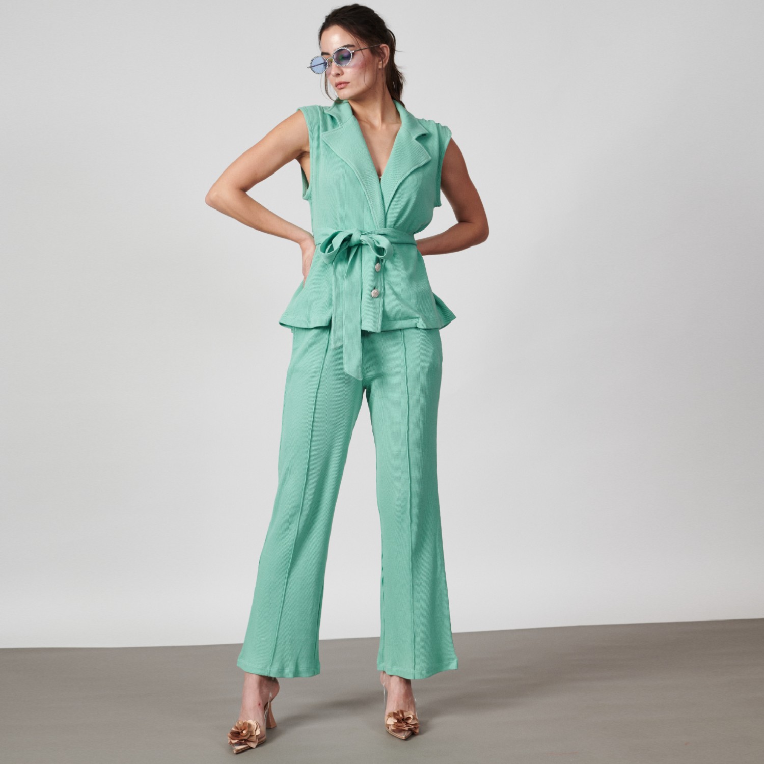 Crafted from a comfortable and light cotton fabric, this set comes in a blue shade. The top features a high hem and voluminous sleeves, adding drama to the look. The light-blue joggers, tailored to a wide-leg silhouette and subtly tapered with side paneling, offer comfort and a modern aesthetic.