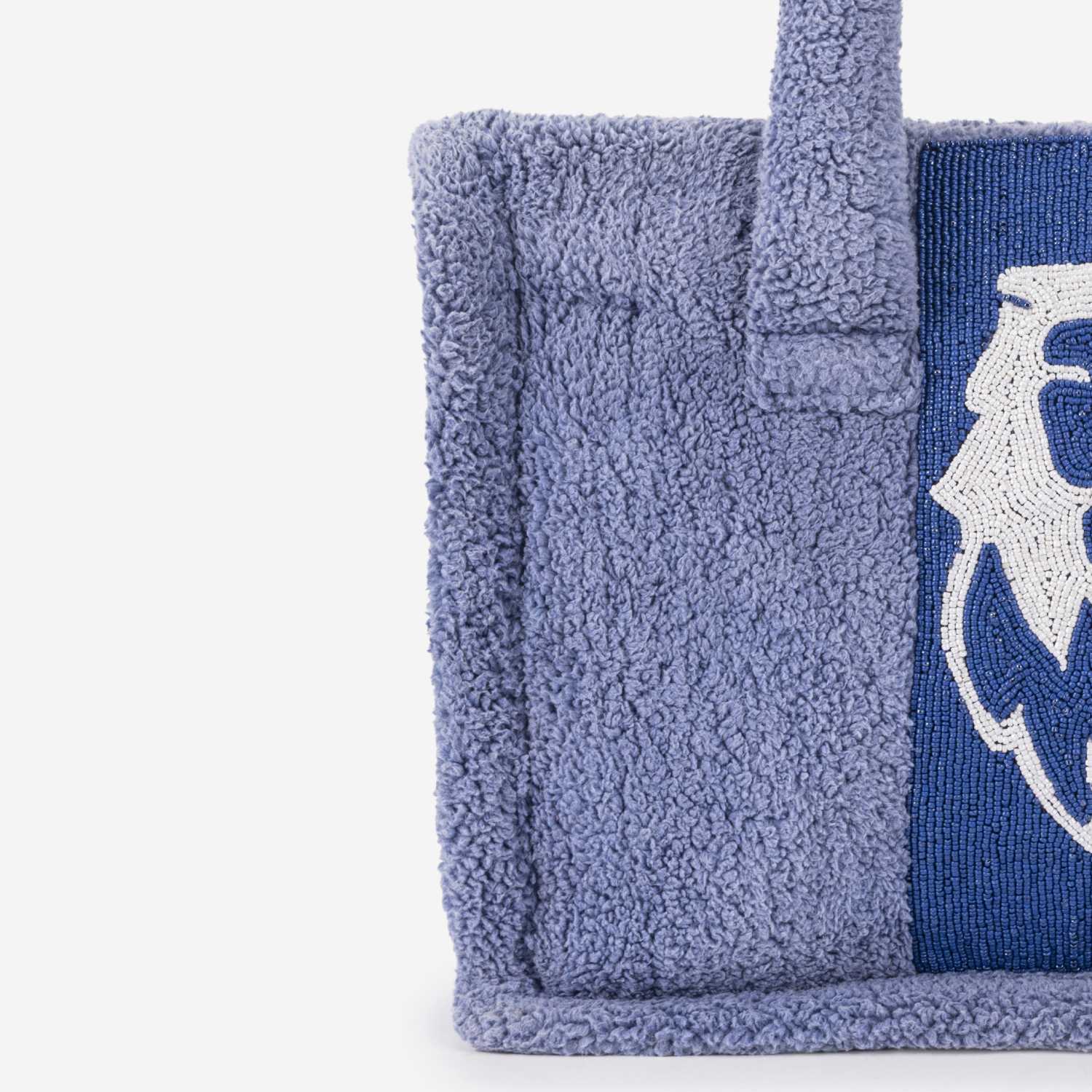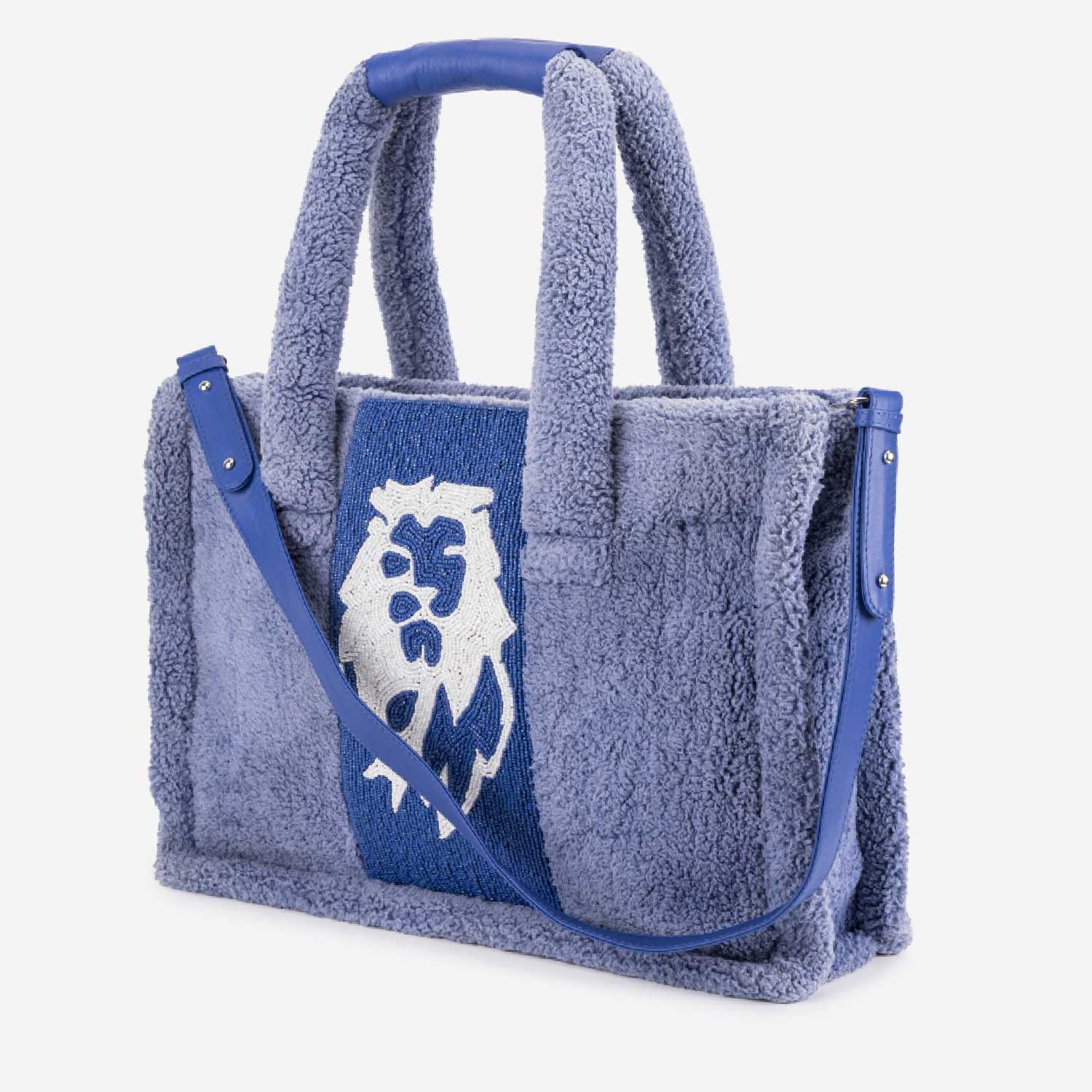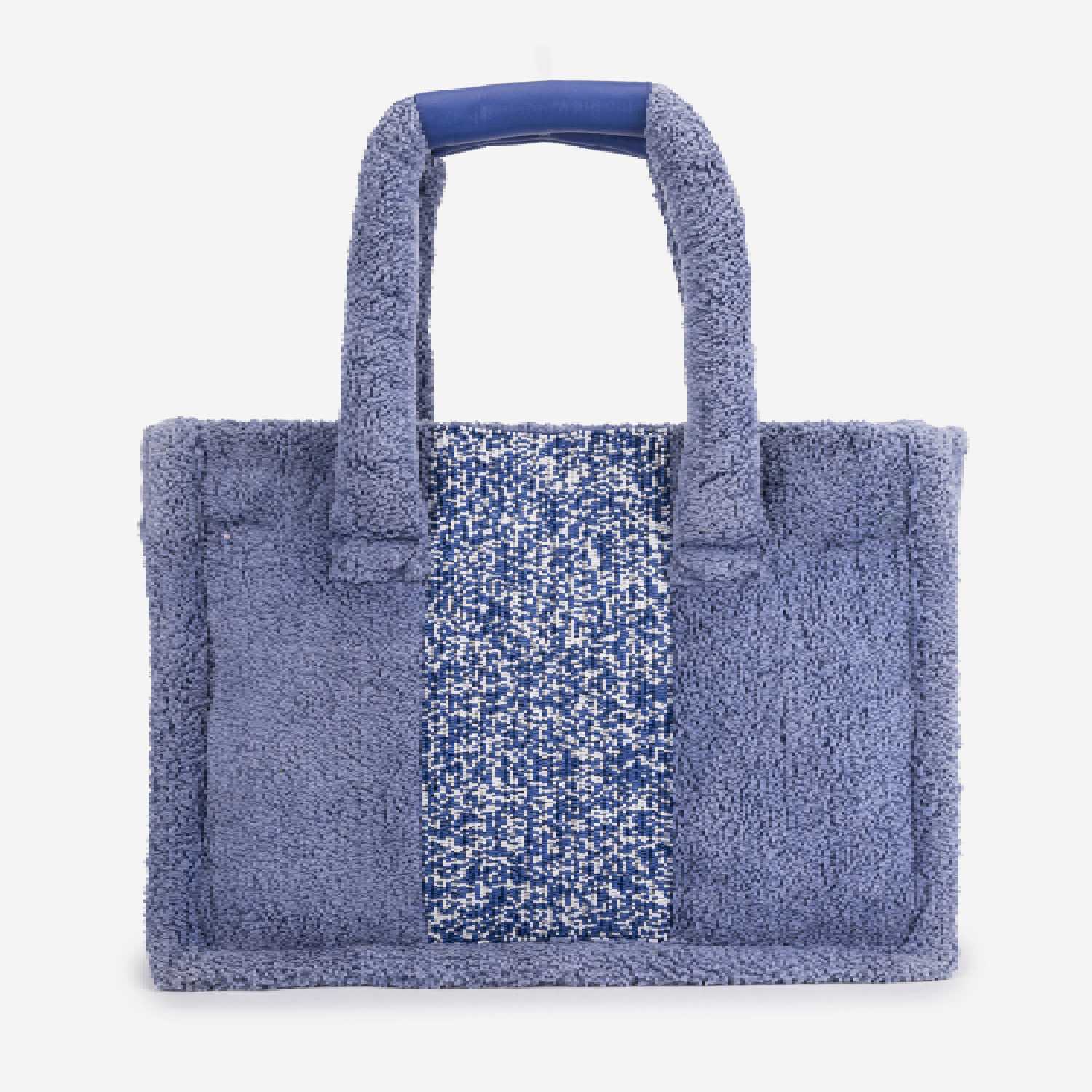 This chic bag features high-quality blue leather base. The bag is equipped with a zipper closure, ensuring the security of your belongings. This is a small tote that can be used as a shoulder bag, making it versatile for various occasions and daily use.