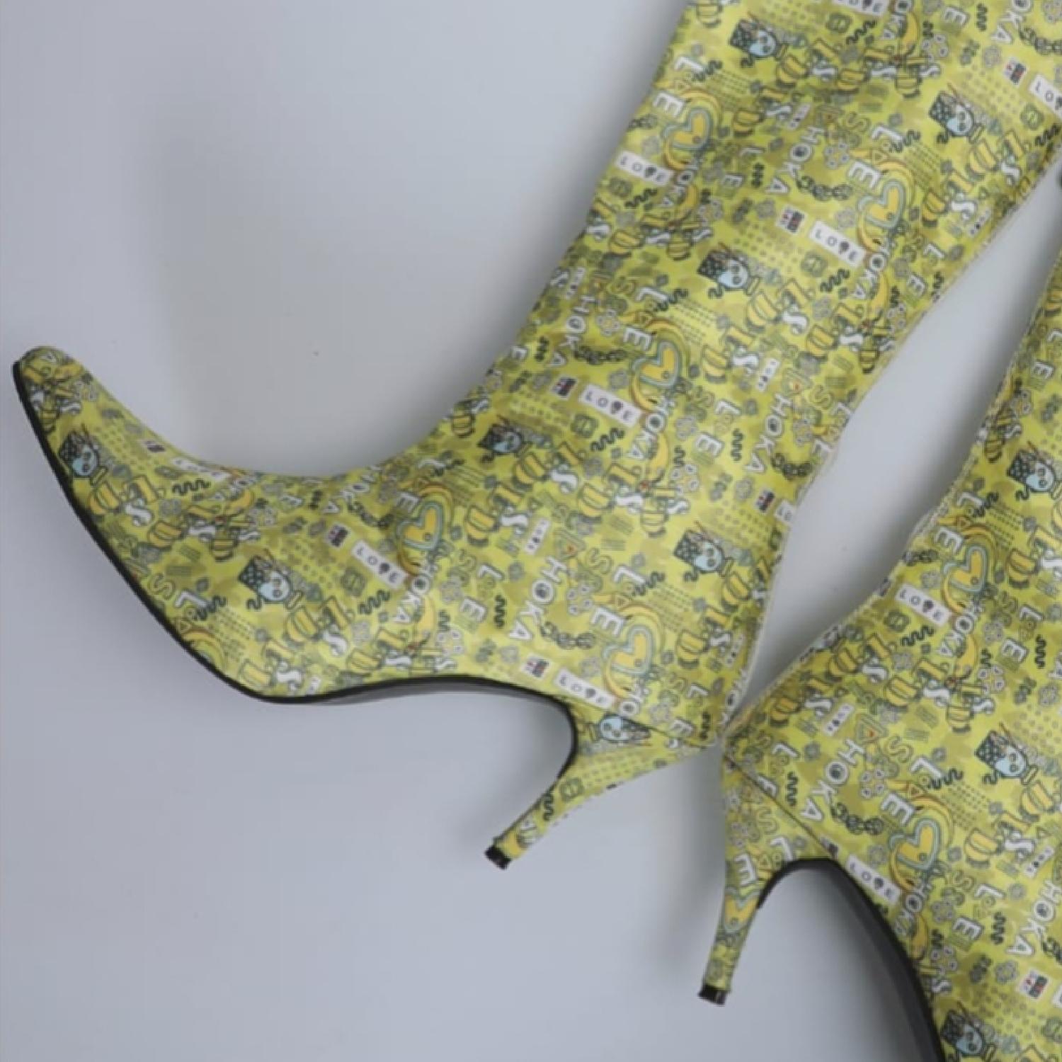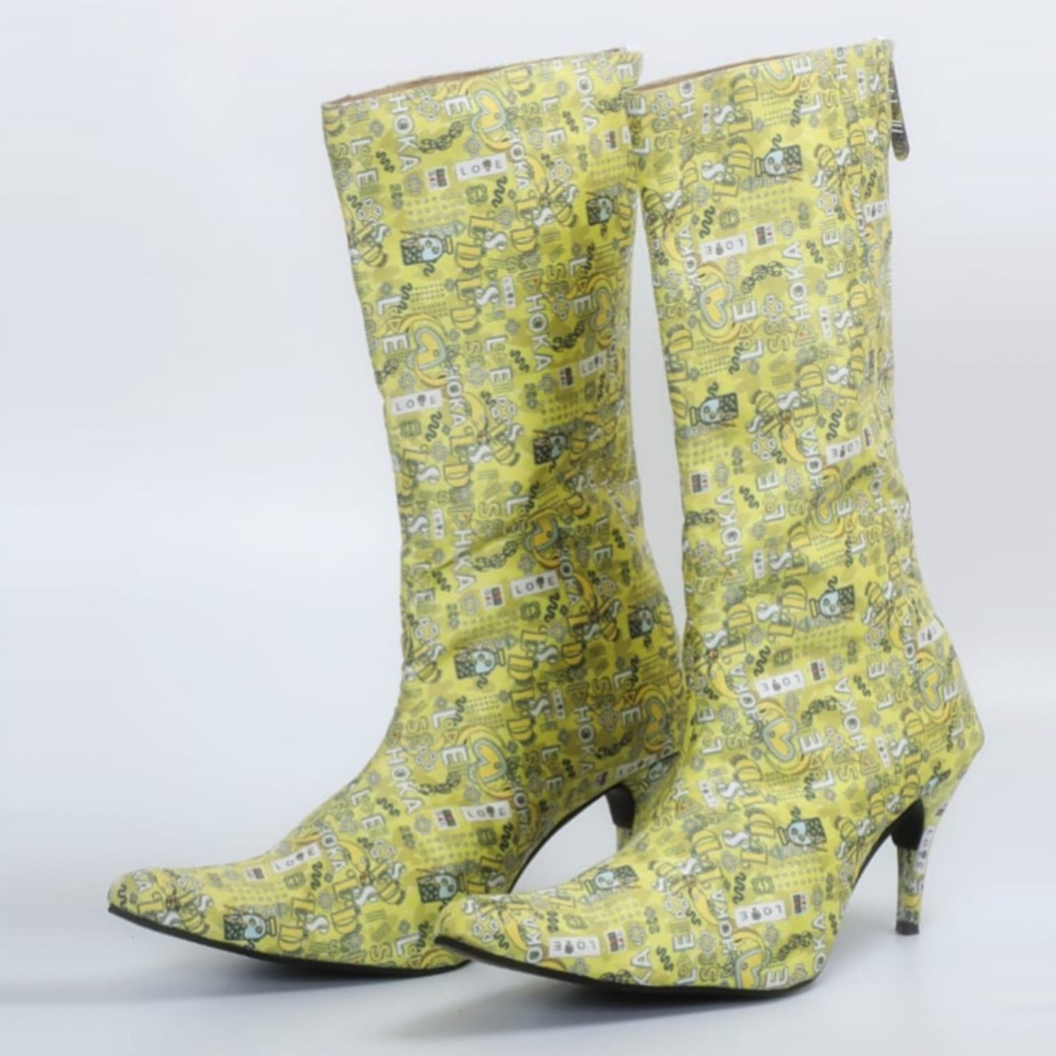 ₹ 6,017 (25% off)These eclectic boots feature an LSD pattern infused with a subtle hint of yellow, creating an otherworldly visual experience. They feature a classic calf-length design and are crafted with a PU upper. Style them with a solid dress and statement jewellery for an evening party.