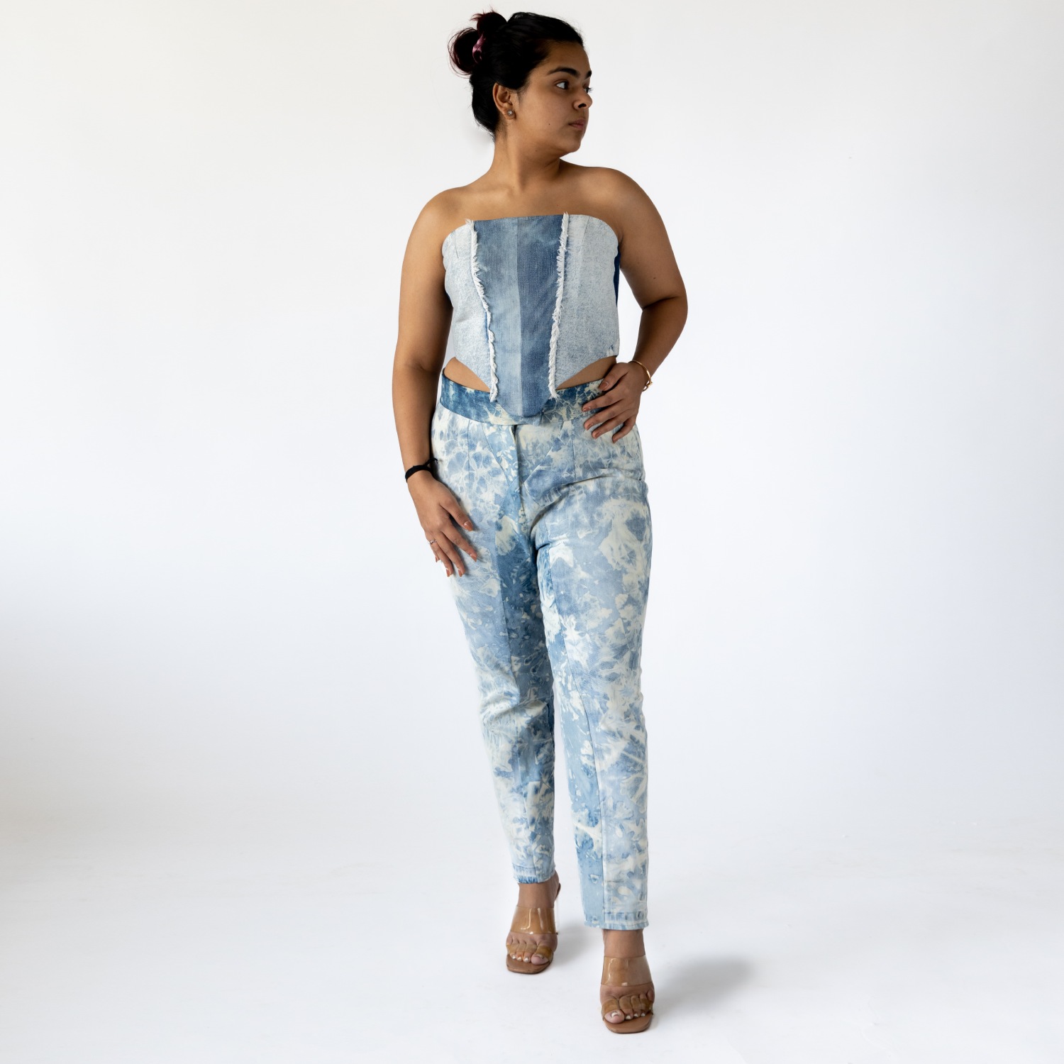₹ 8,500 (10% off)Elevate your style with these chic fitted denims, crafted from upcycled remnants of three distinct pairs. Perfect for an artsy and eclectic vibe, this trendy piece adds a unique layer to your ensemble, showcasing sustainable fashion with a touch of creativity.