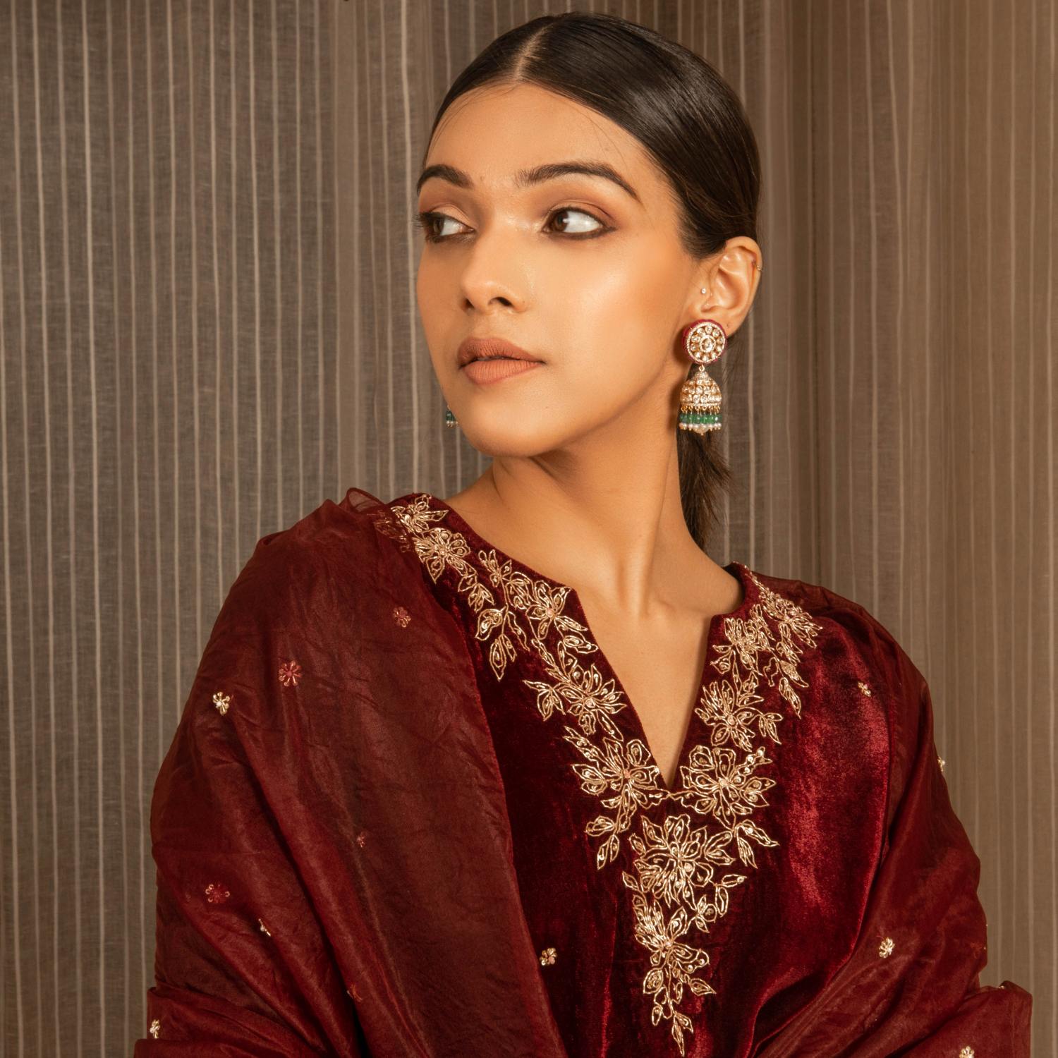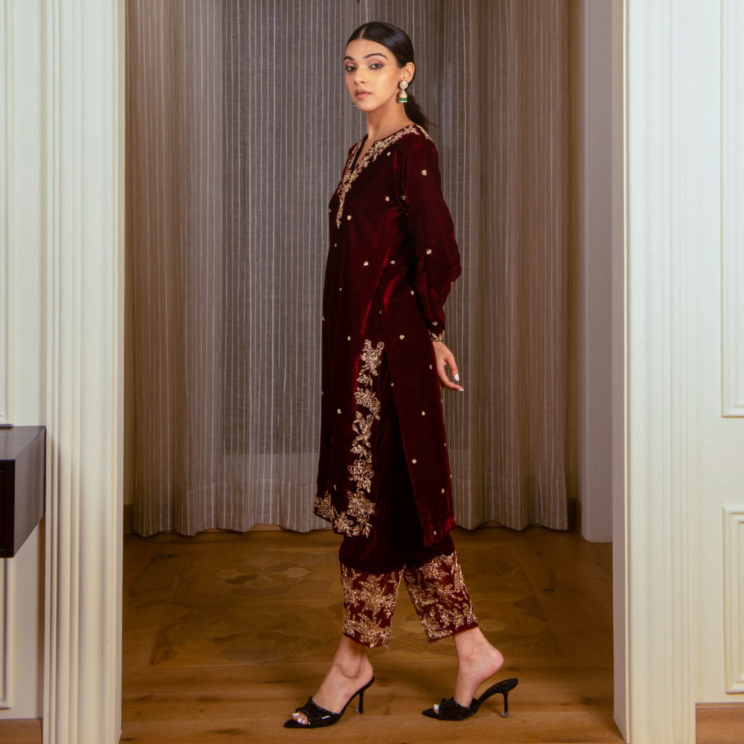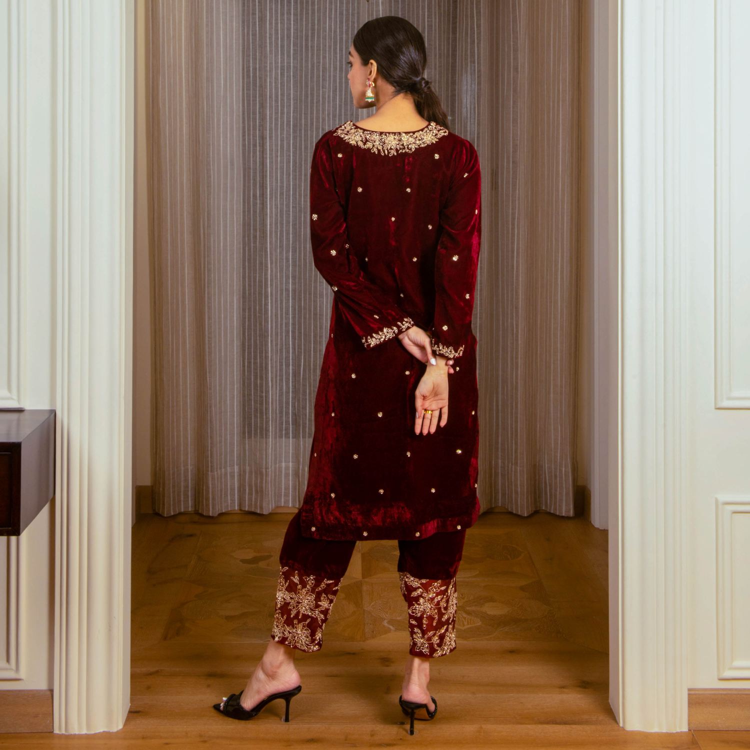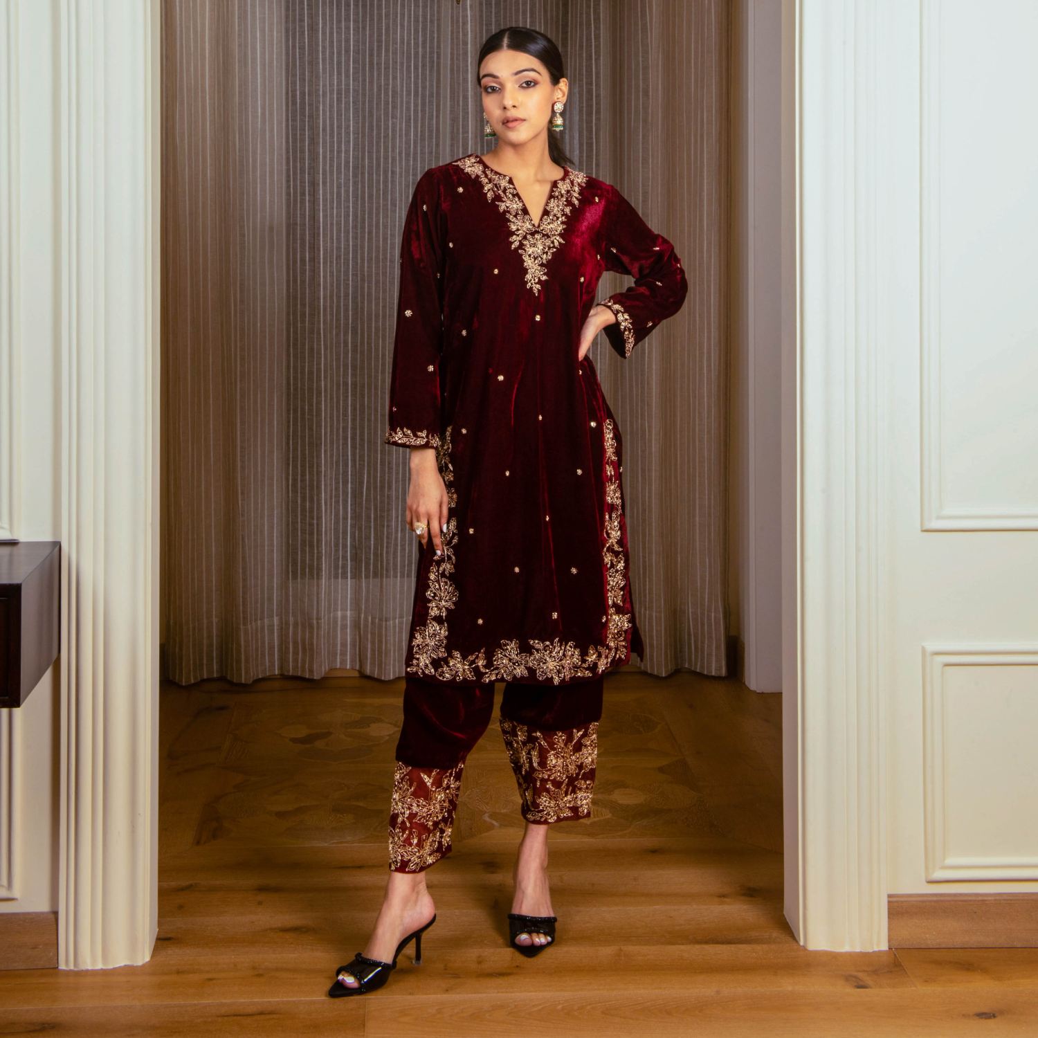 ₹ 35,000 (5% off)This beautiful tunic features detailed embroidery on the neck and sleeves, with slight hand embroidery on the back for a touch of elegance. Paired with matching straight mid-waist pants, featuring a hand-embroidered organza panel and fully-elasticated waist, this set offers both style and comfort. The organza dupatta completes the look with a prominent motif and intricate detailing.