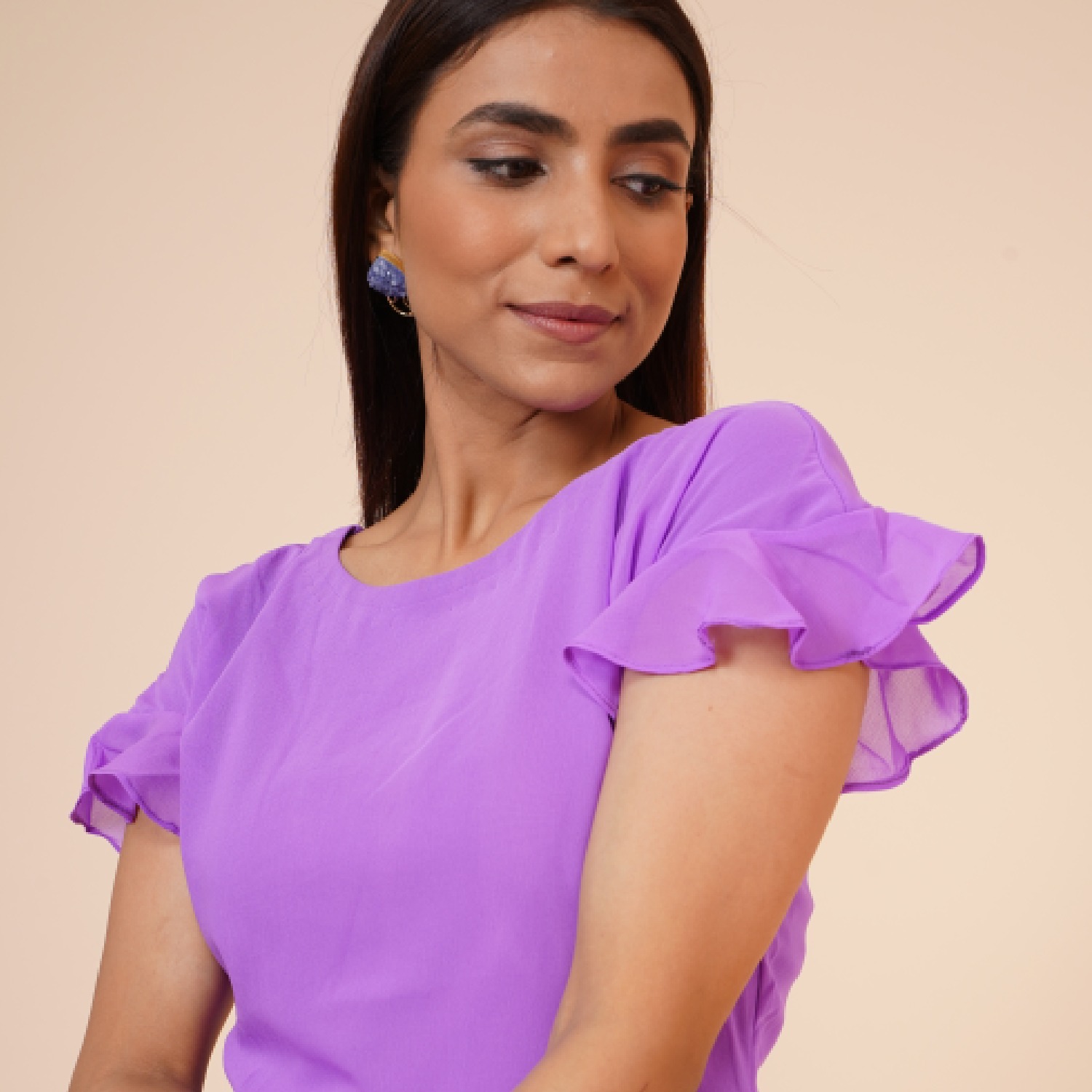 ₹ 900 (20% off)Crafted from high-quality georgette fabric, this beautiful dress offers a luxurious, flowy texture. It features a soft mauve shade, half sleeves, a stylish draped design, and a knee-length hem, offering elegance to the look. Style it with delicate earrings and a cuff bracelet for a dressy evening event.