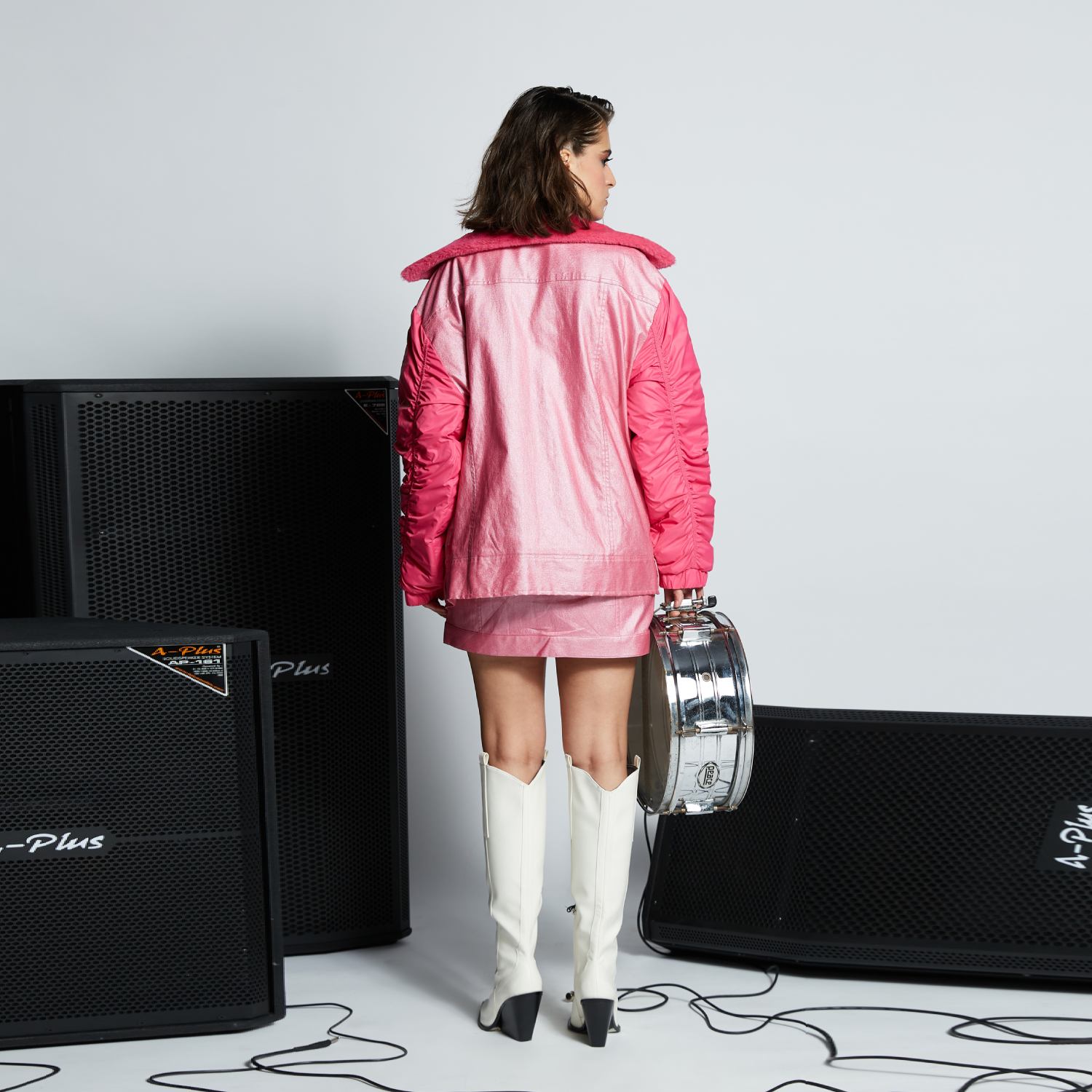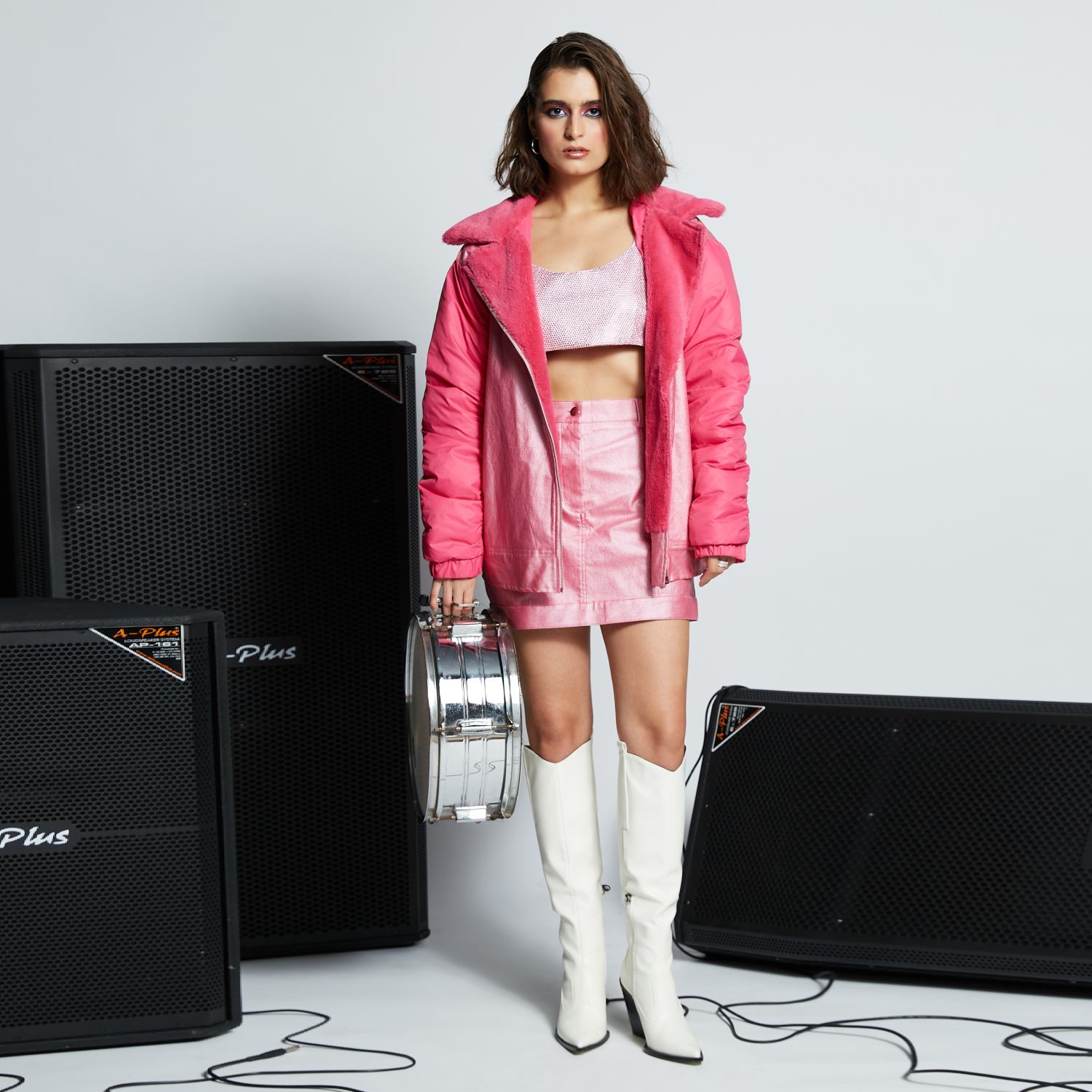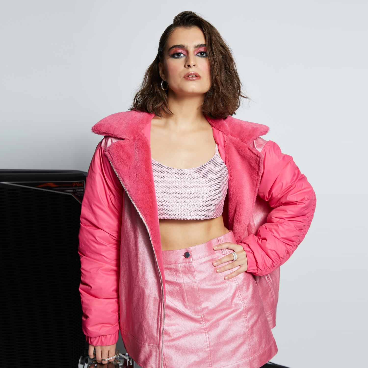 Discover the perfect blend of sophistication and versatility with our high-waist mini skirt. Crafted with precision, it showcases two front pockets for added convenience. The front zip fly and metal hook fastening provide a seamless closure, making it a must-have addition to your wardrobe.