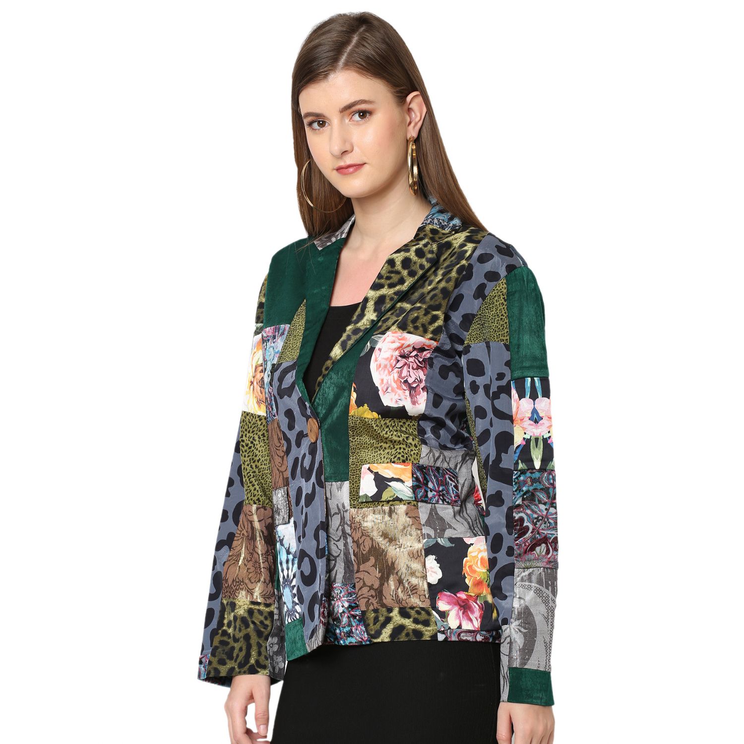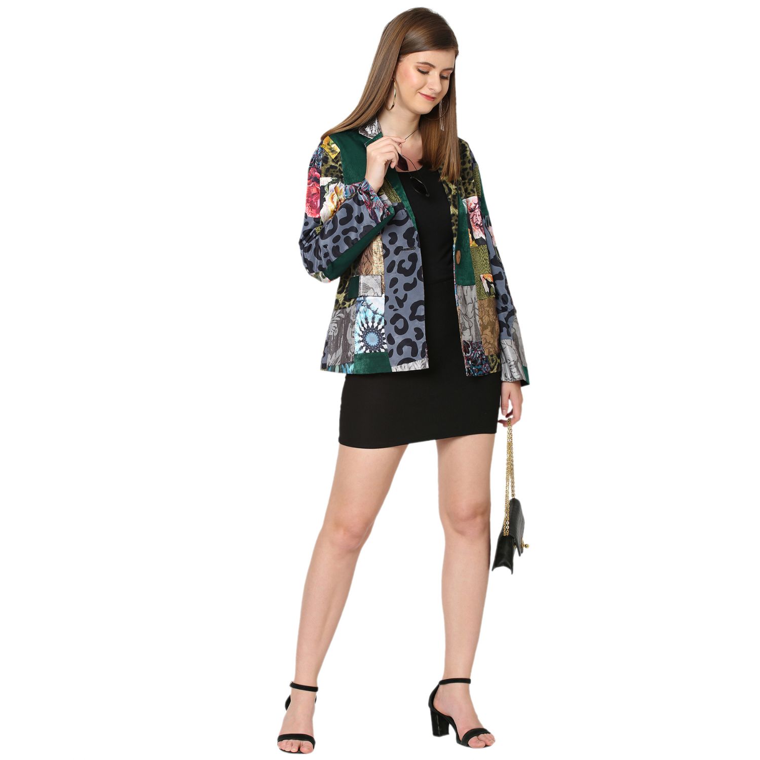 This artsy patchwork multicolor jacket is stylish & comfortable to wear. This statement piece is the perfect spring layer and can be styled with a dress or a co ord set.