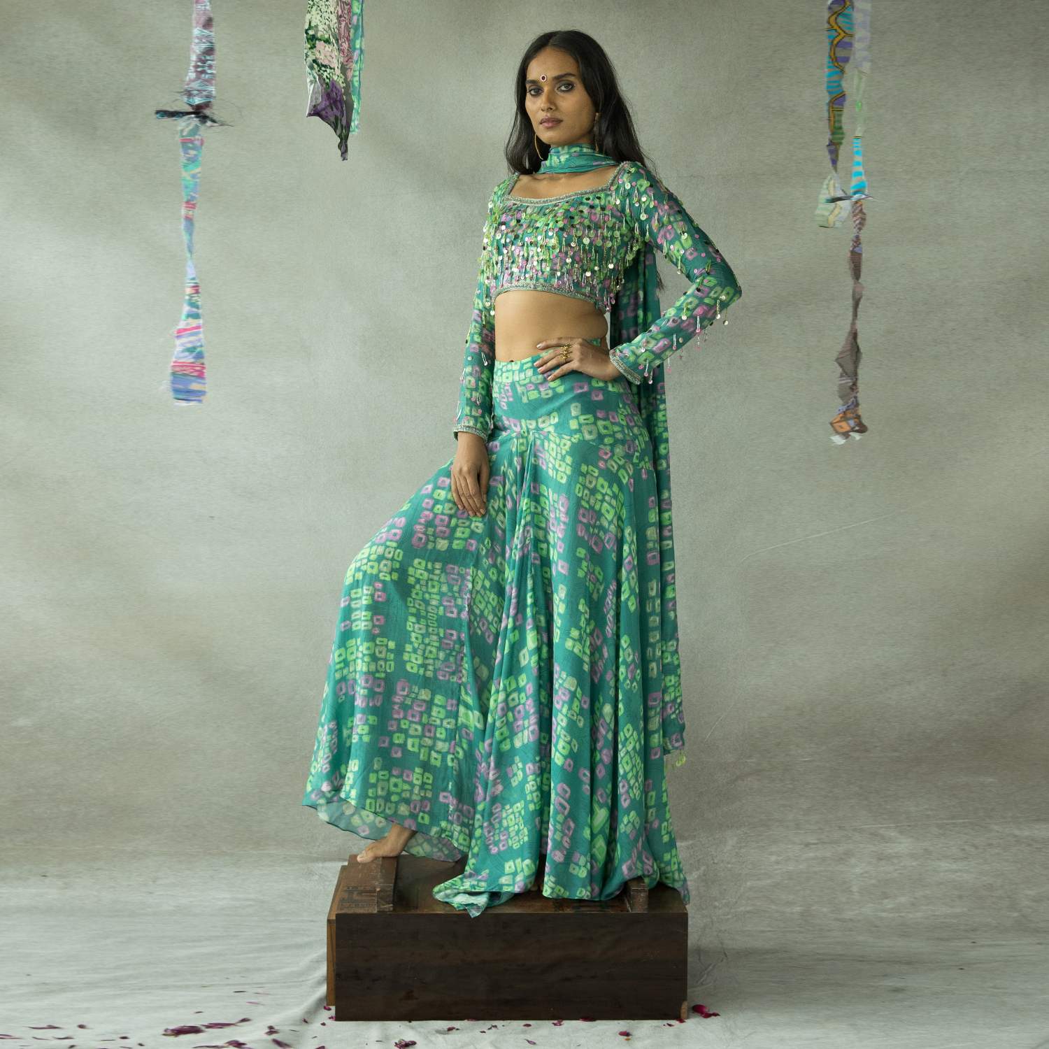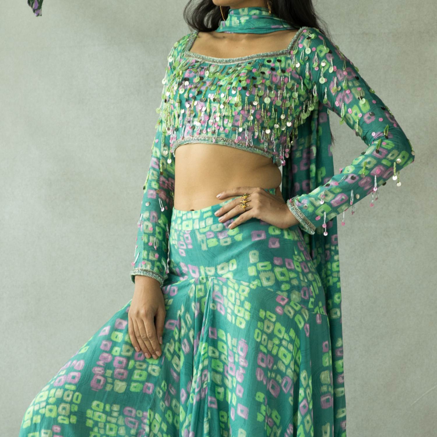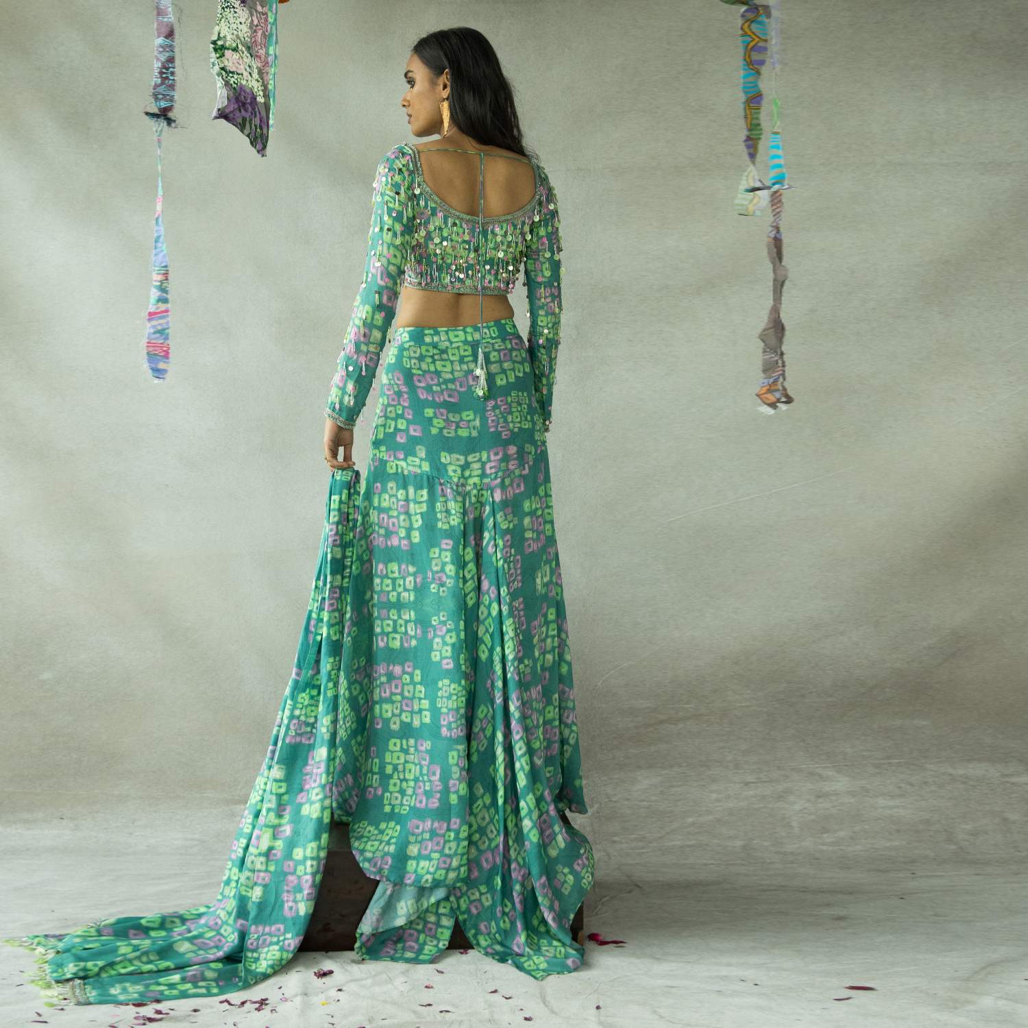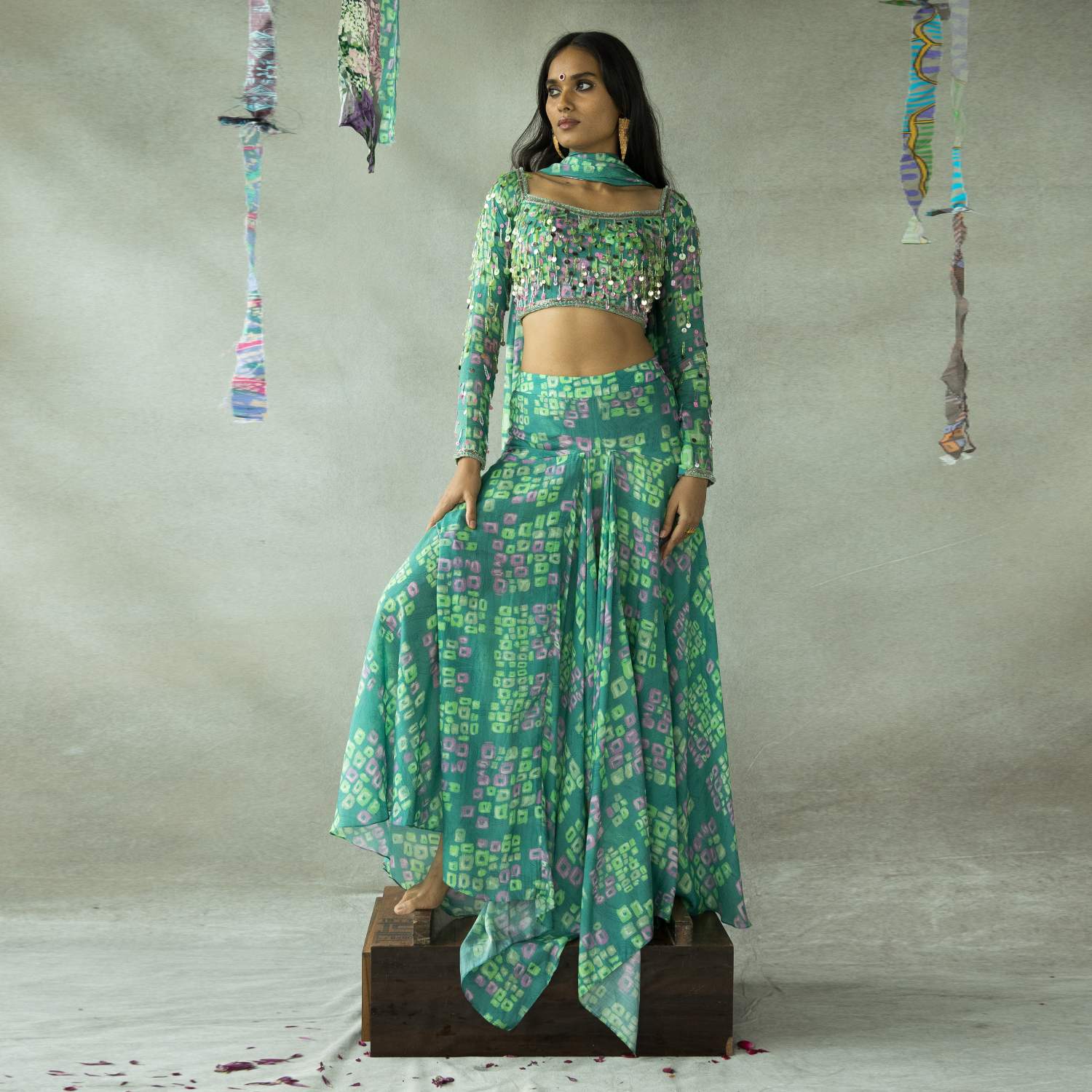 Discover the allure of the munni lehenga set, a masterpiece in hand embroidery. Immerse yourself in its beauty, featuring a full-sleeve blouse artfully handcrafted with intricate details. Paired with an asymmetrical maxi skirt, this set exudes grace and elegance. With a side closure and concealed zip for convenience, accompanied by a mesmerising embroidered dupatta.
